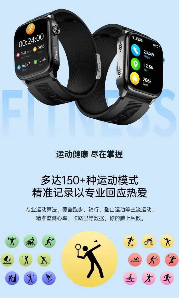 QIYEAHY19奇越运动手表智能女款蓝牙接打电话心率血氧睡眠生理期健康监测消息提醒离线支付防水跑步手环 黑色