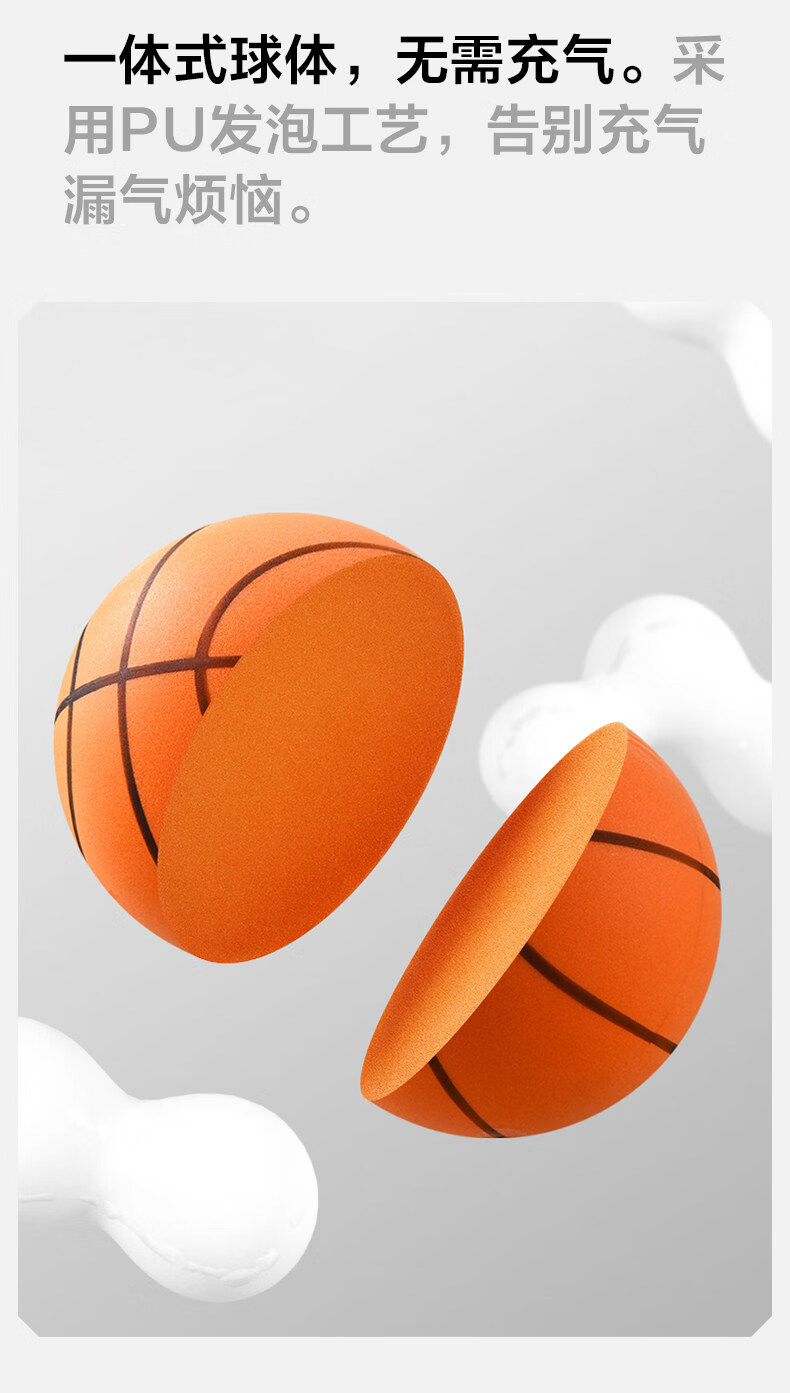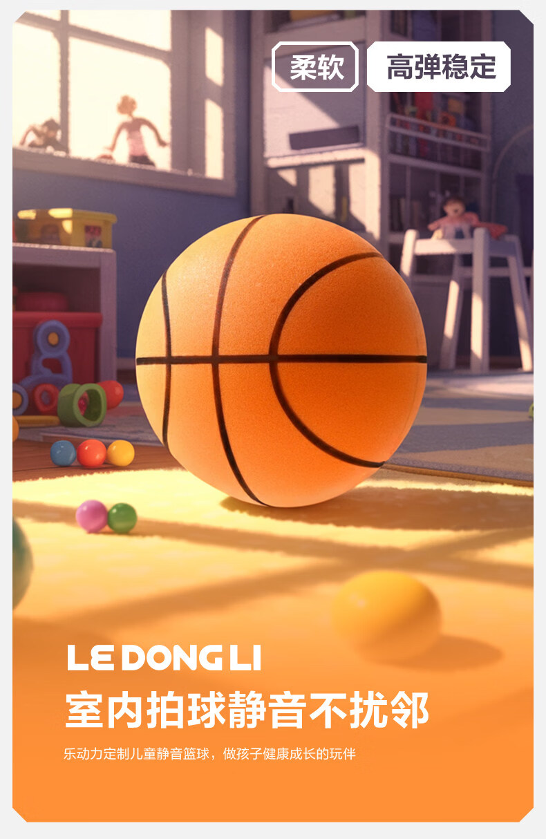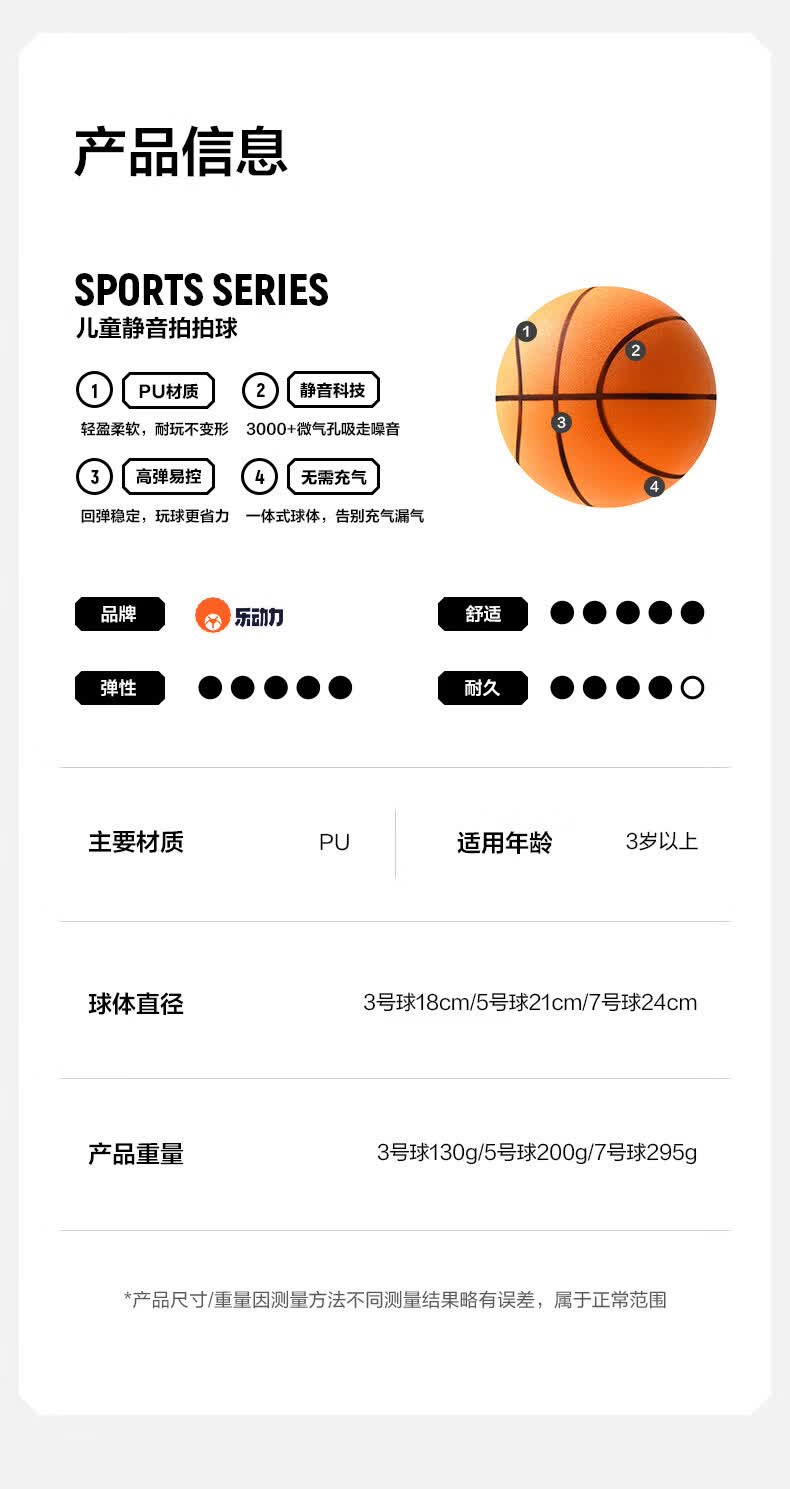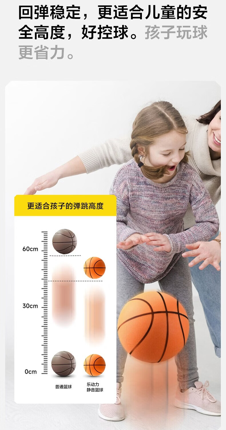 乐动力静音篮球专业室内无声高弹力不掉渣训练儿童专用拍拍小皮球7号5号 5号静音球+球框【超弹力】