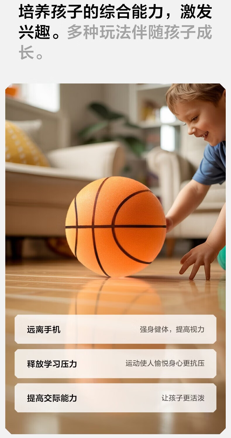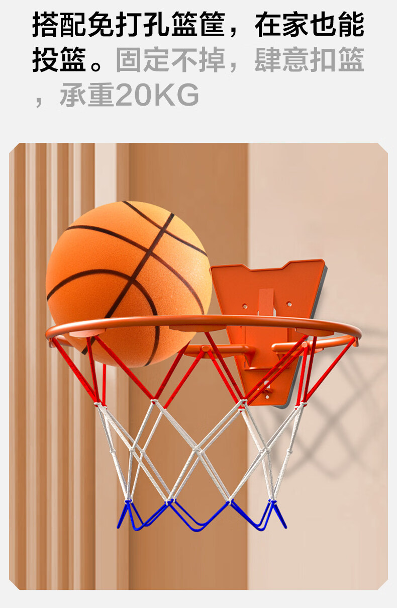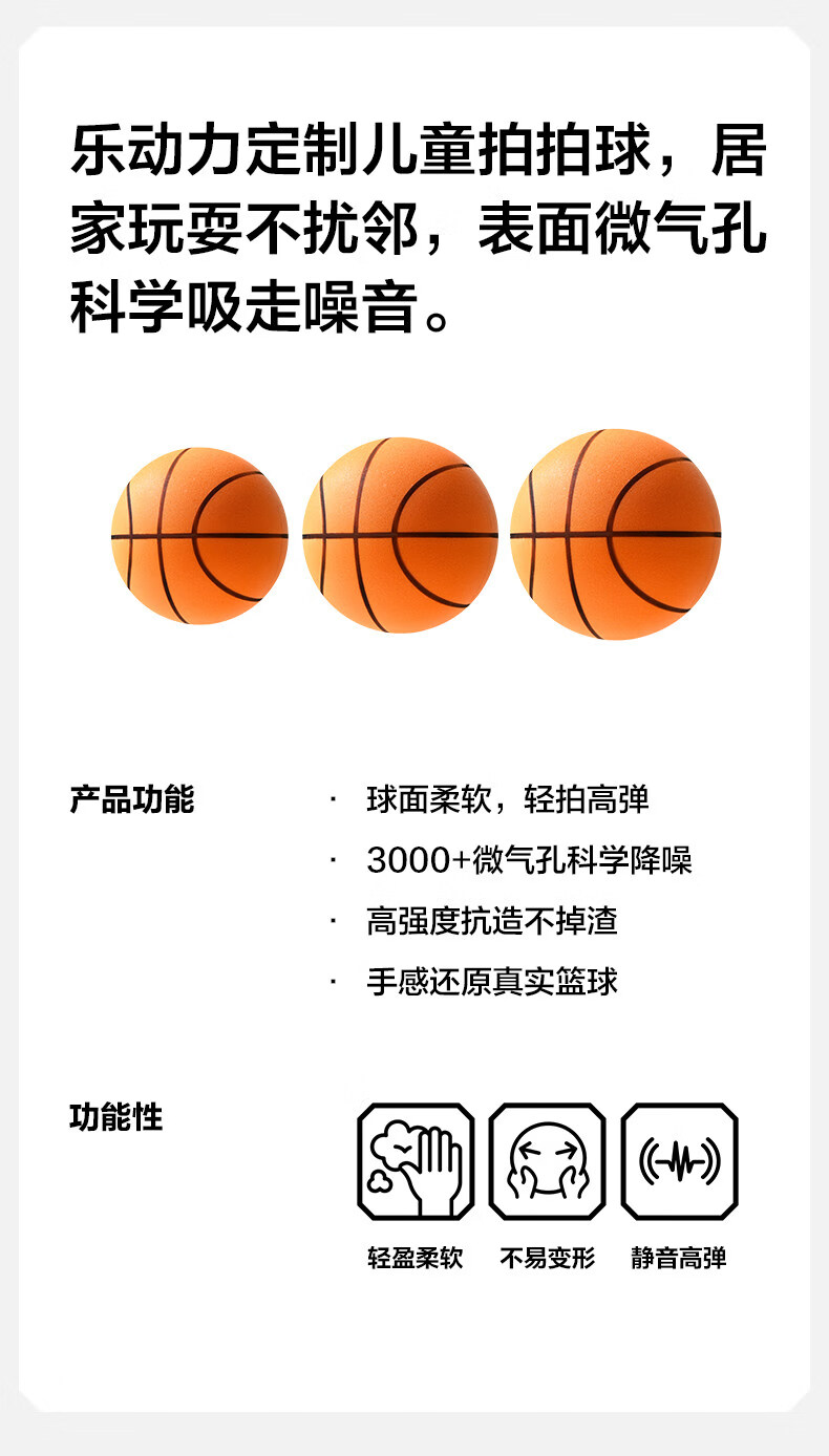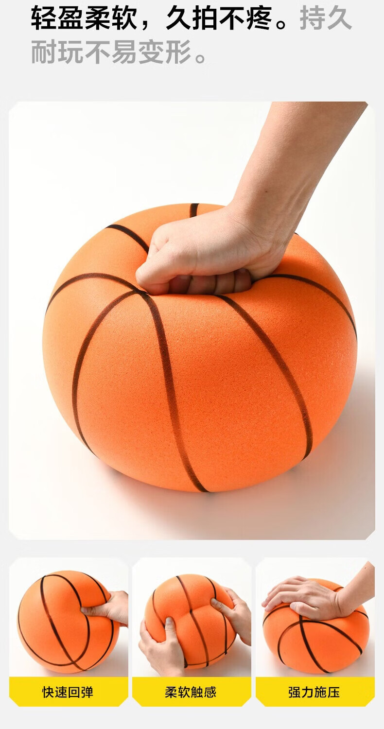 乐动力静音篮球专业室内无声高弹力不掉渣训练儿童专用拍拍小皮球7号5号 5号静音球+球框【超弹力】