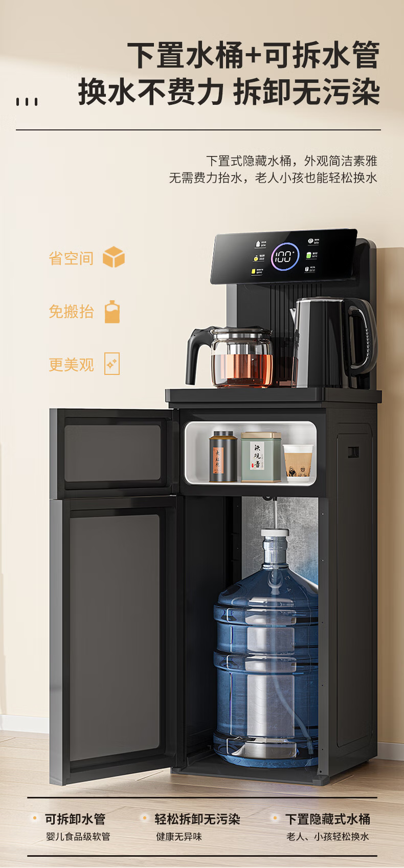 美的多采茶吧机饮水机制冰制热一体家用高端客厅用2026年新款茶吧机烧水壶一体自动上水 【单壶】 制热型 保温壶+无茶吧机