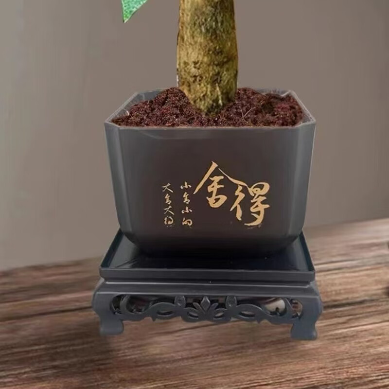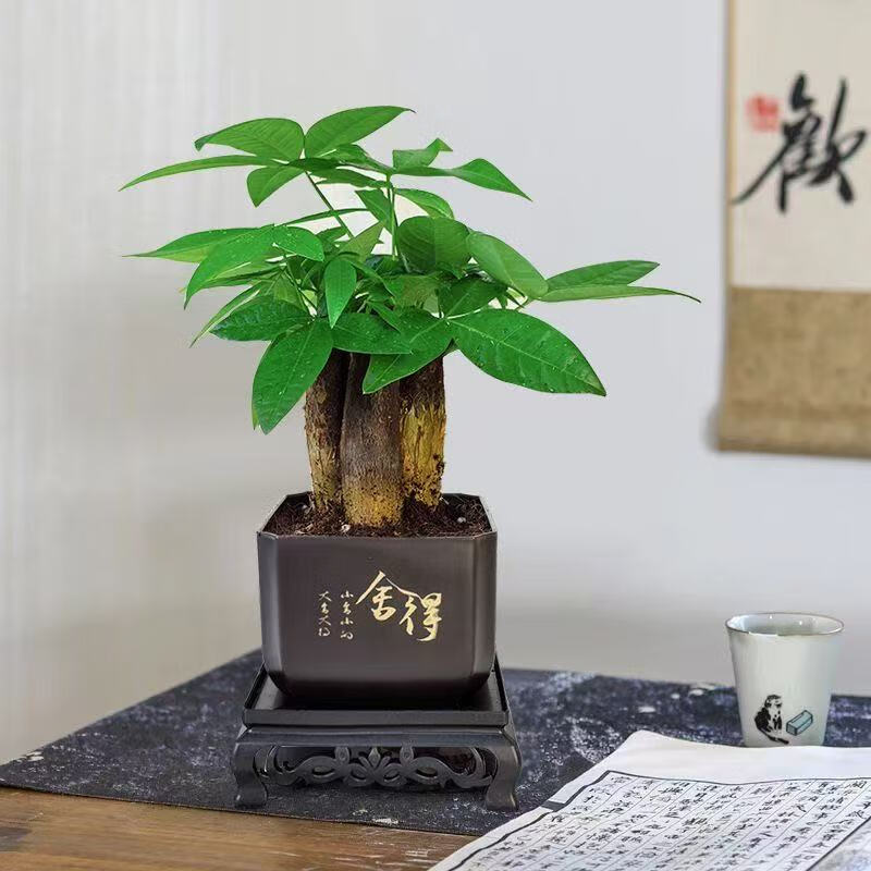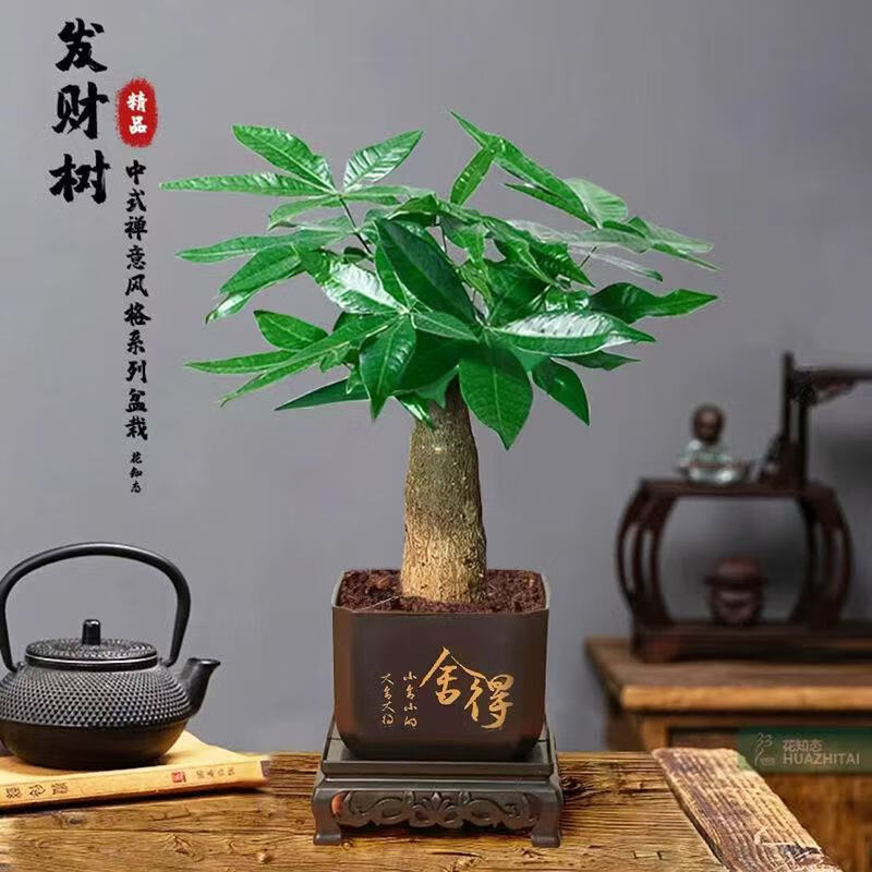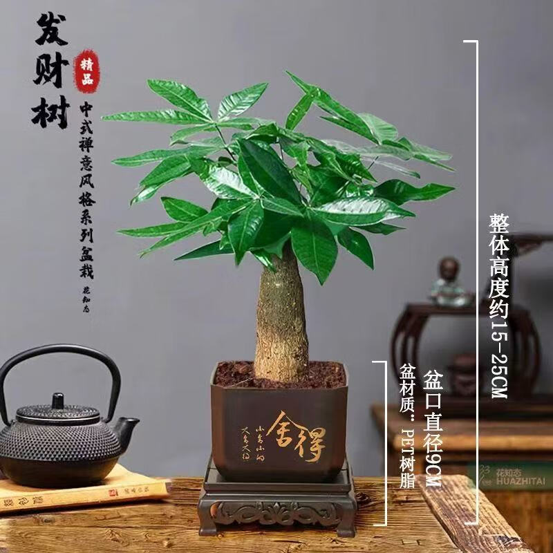 【带盆高度约15-25cm】发财树盆栽室内植物客厅办公室吸甲醛好养 单杆发财树+塑料四方舍得盆+小方底座 花盆直径约8cm