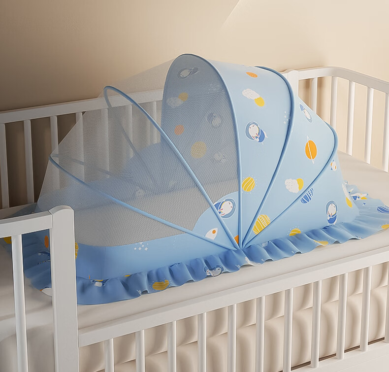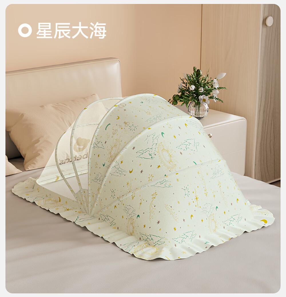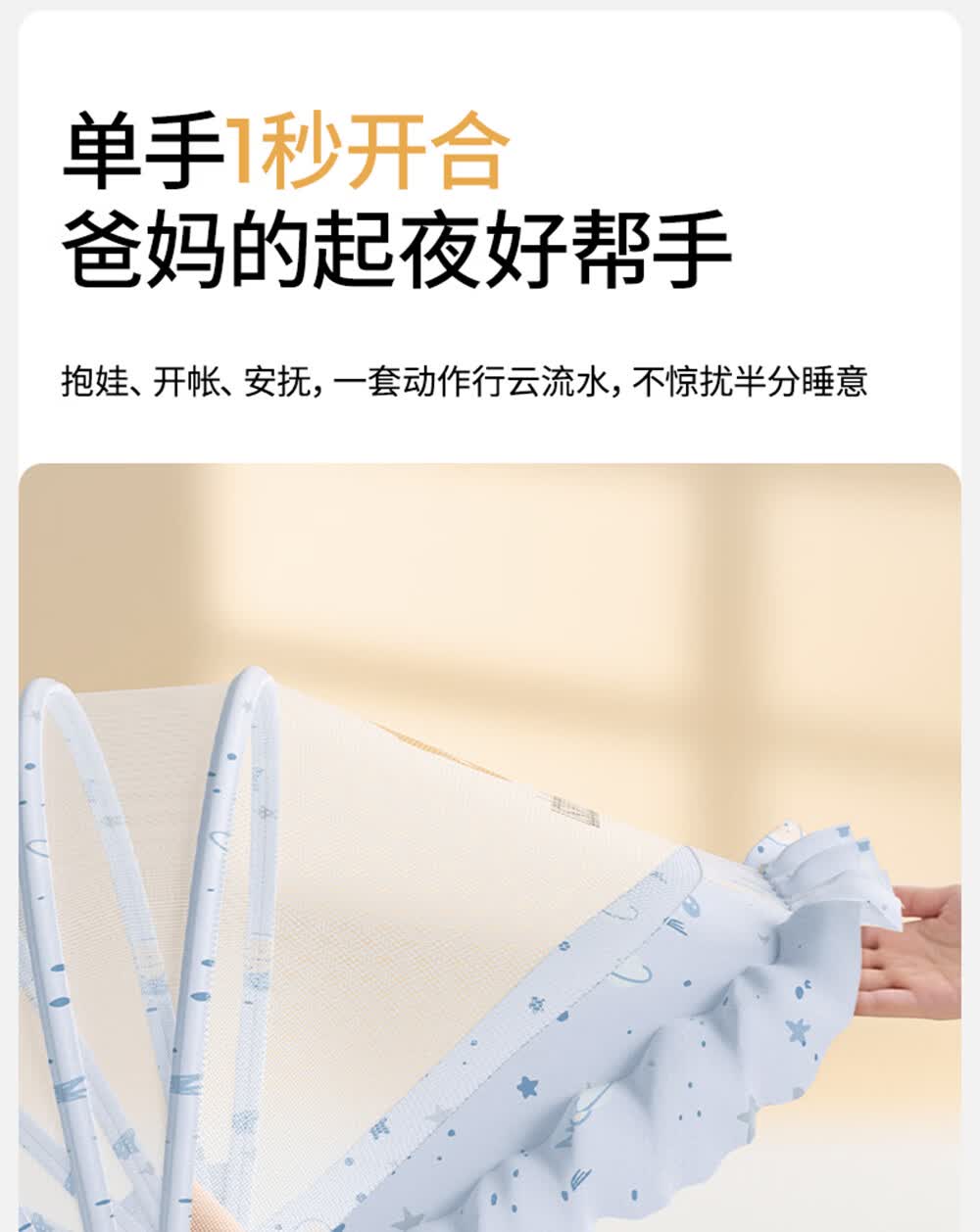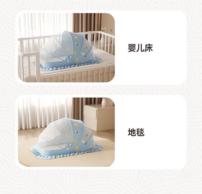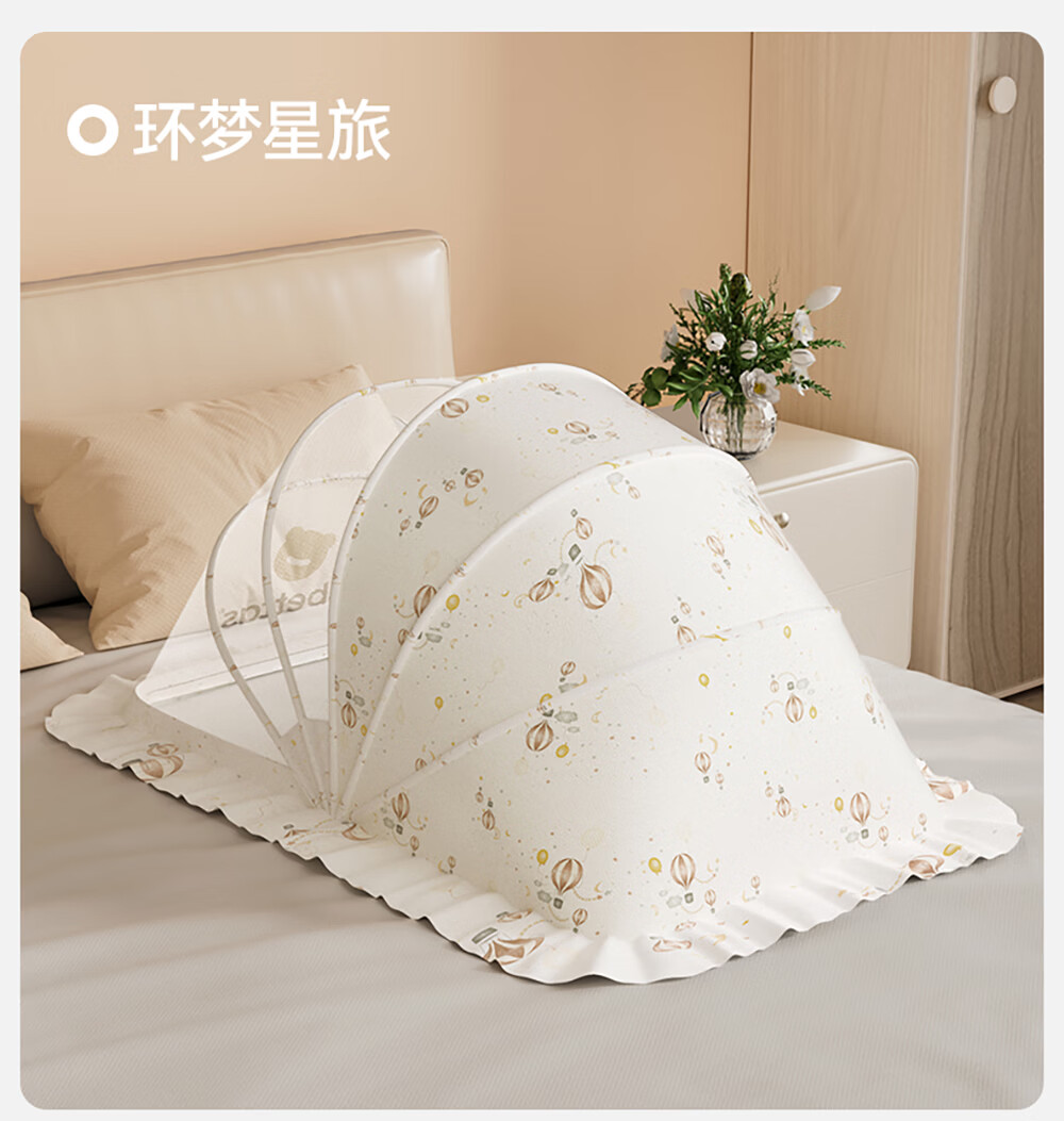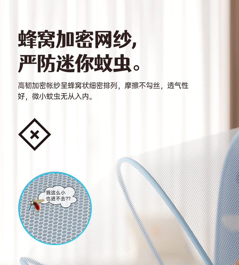 贝肽斯婴儿蚊帐罩床上宝宝蚊帐免安装可折叠儿童床婴儿车全罩式防蚊罩 冰川灰-网面款 小号-建议0-1.5岁