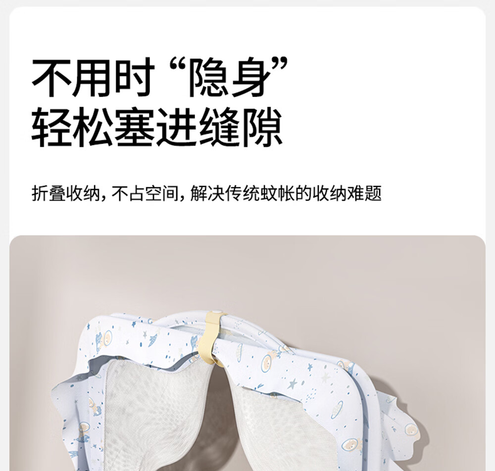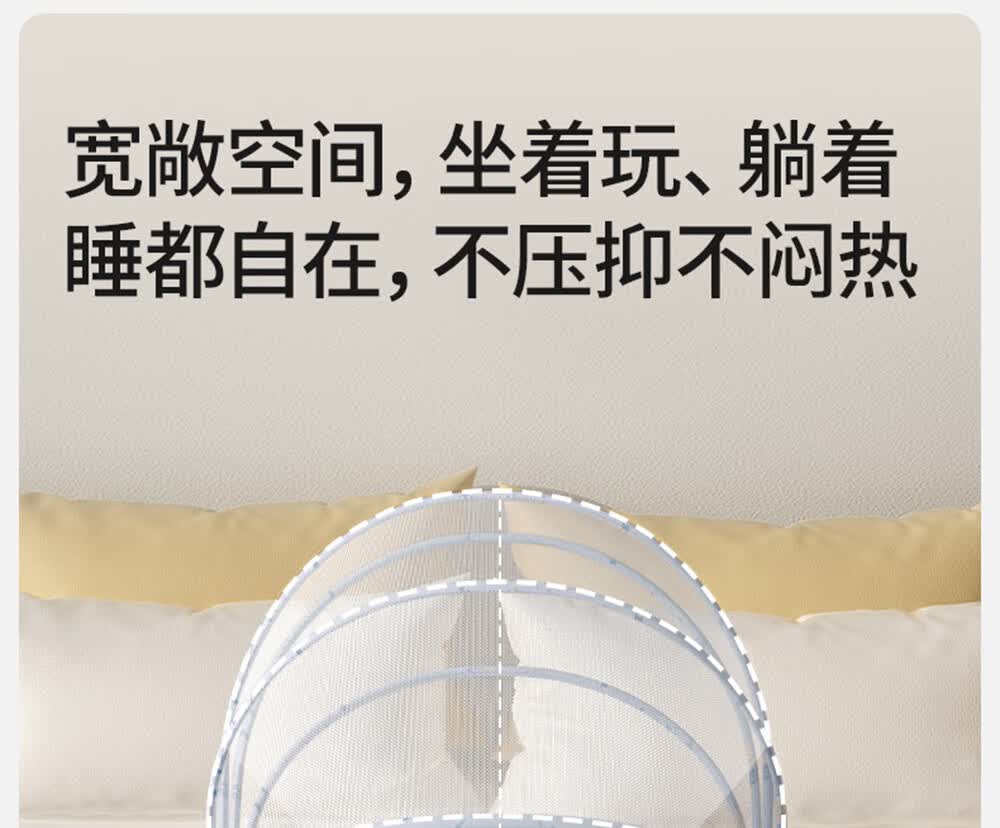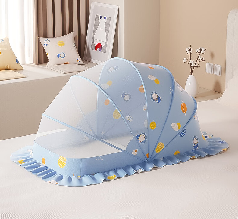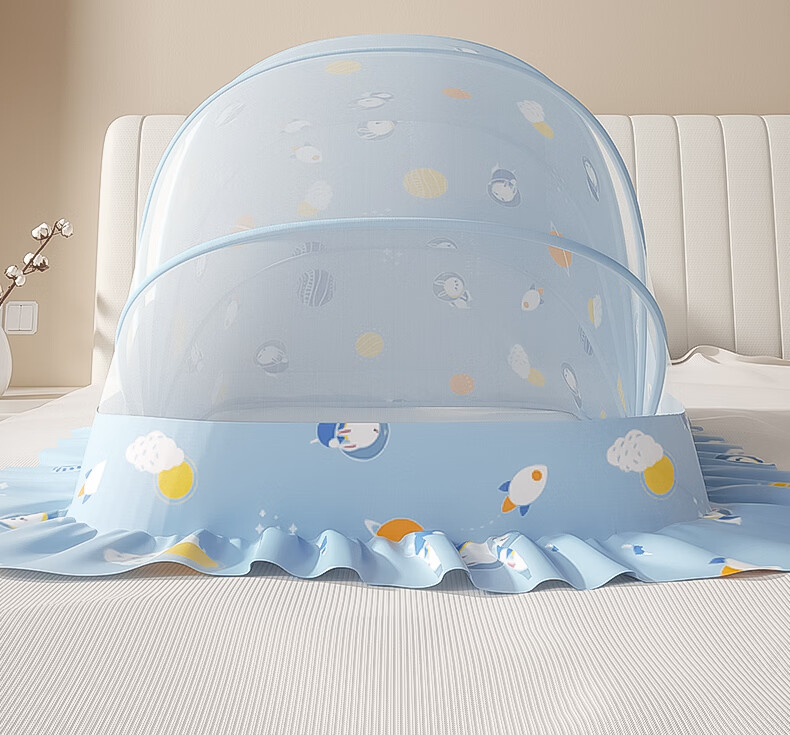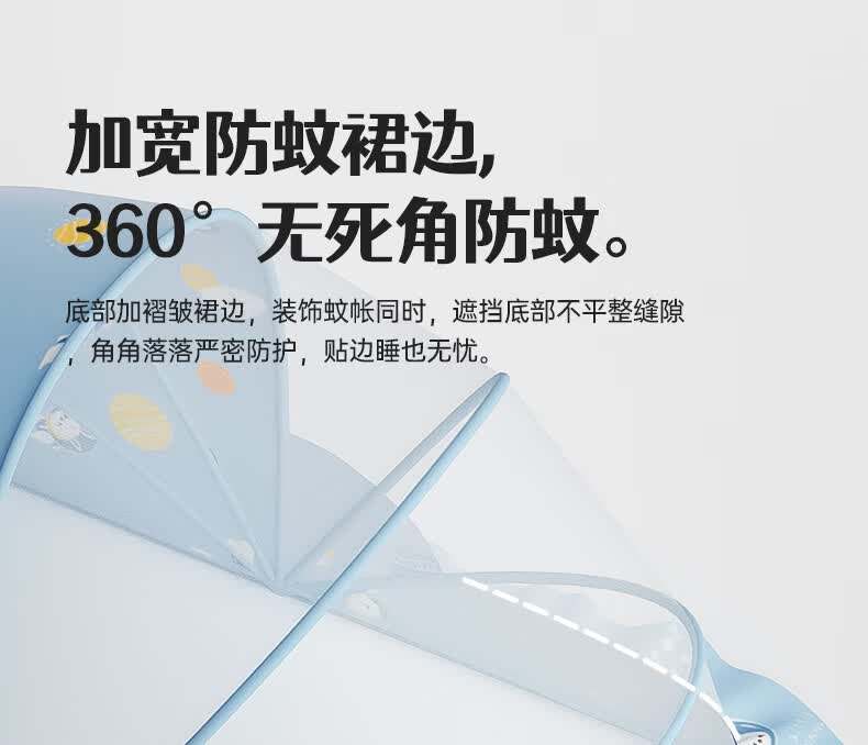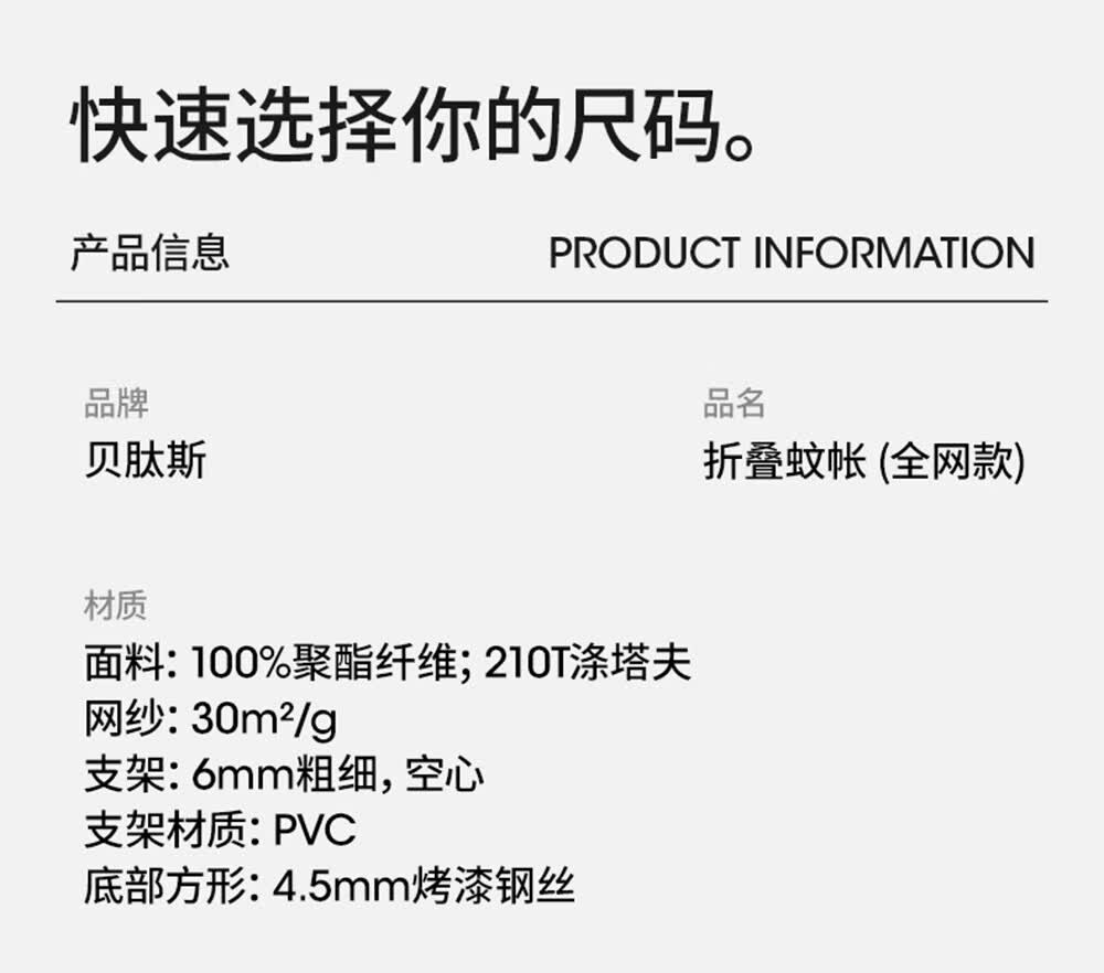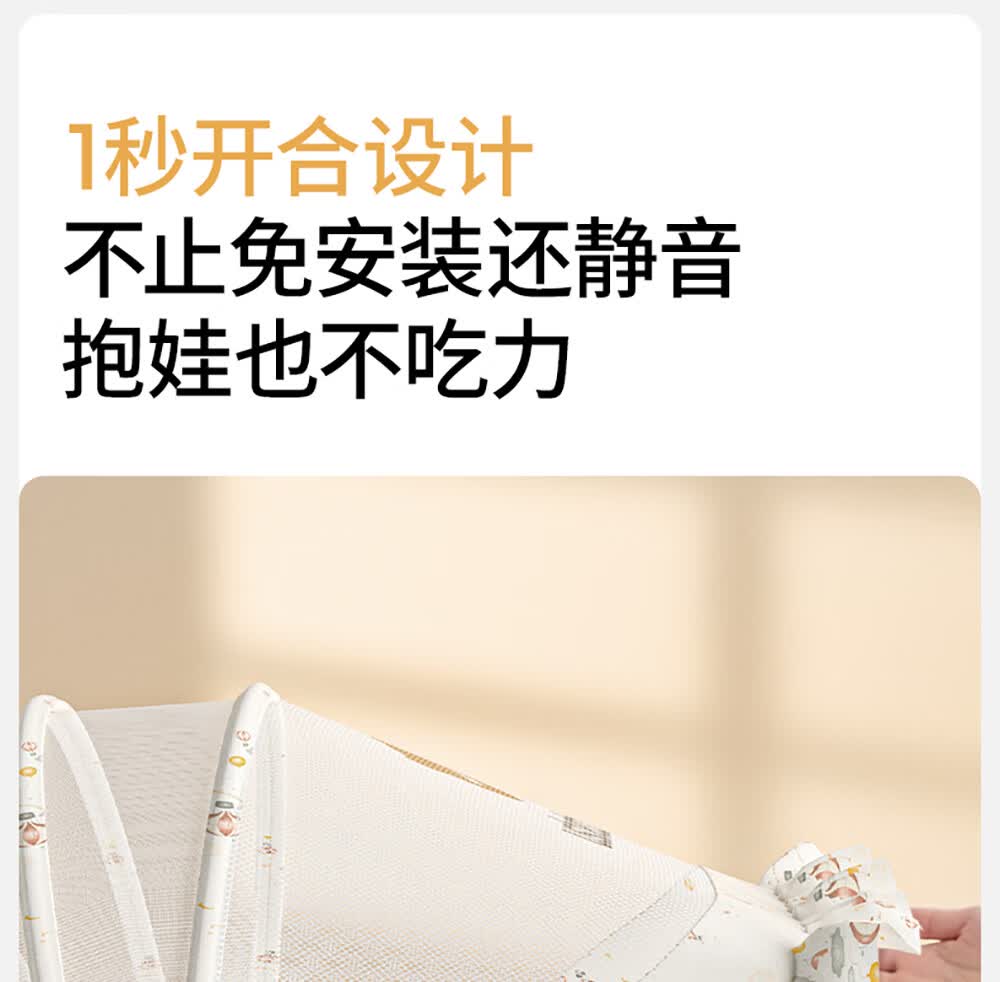 贝肽斯婴儿蚊帐罩床上宝宝蚊帐免安装可折叠儿童床婴儿车全罩式防蚊罩 冰川灰-网面款 小号-建议0-1.5岁