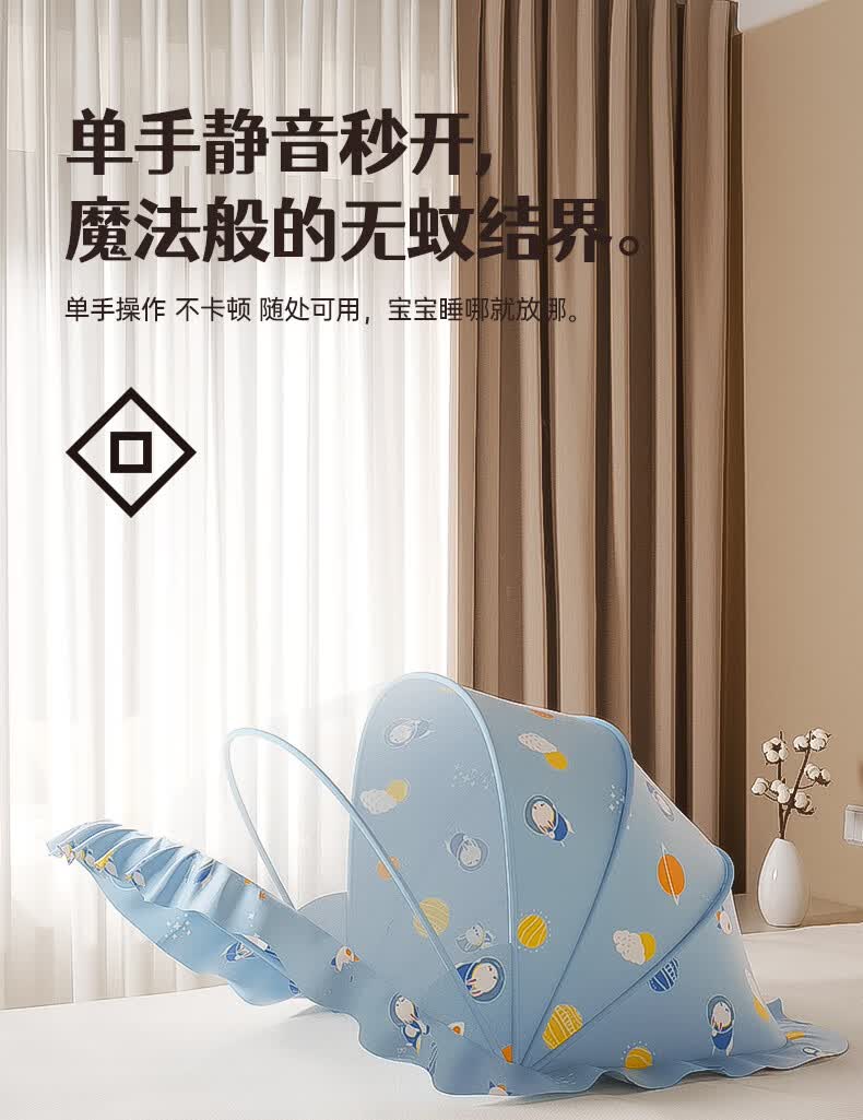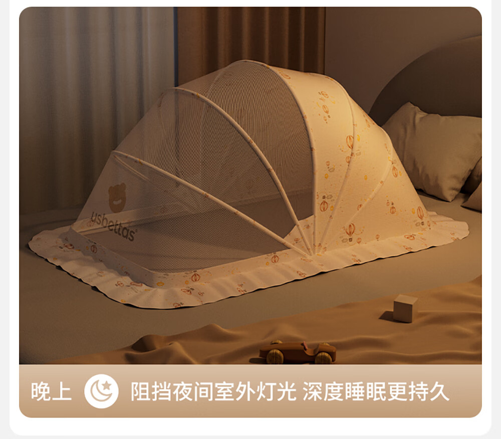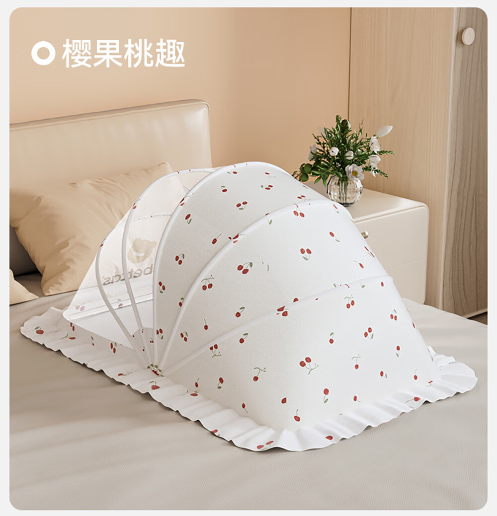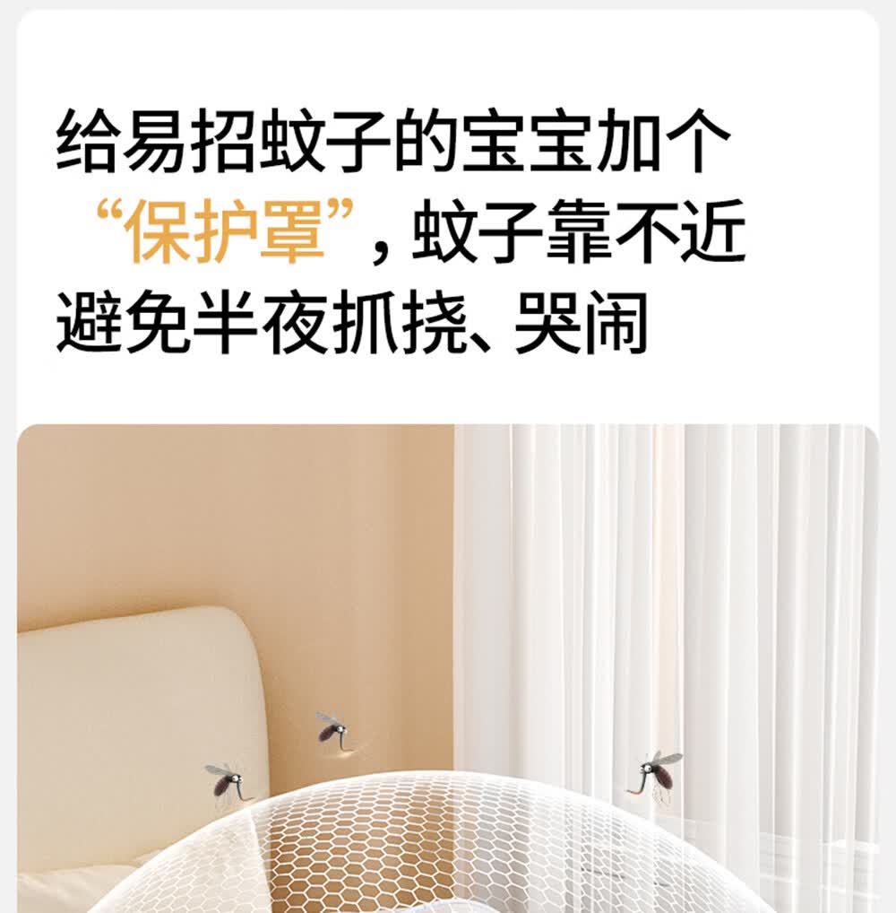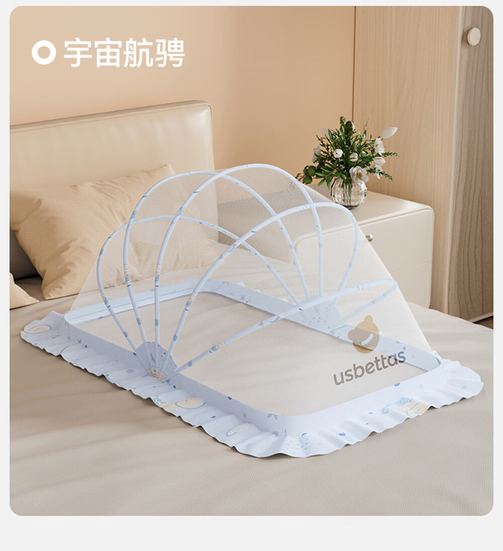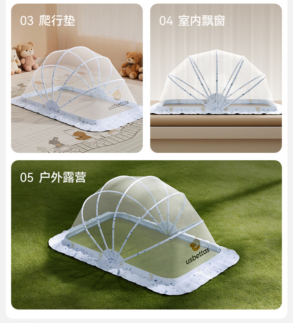 贝肽斯婴儿蚊帐罩床上宝宝蚊帐免安装可折叠儿童床婴儿车全罩式防蚊罩 冰川灰-网面款 小号-建议0-1.5岁