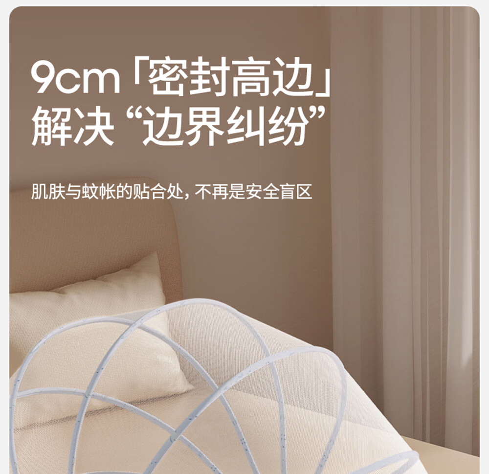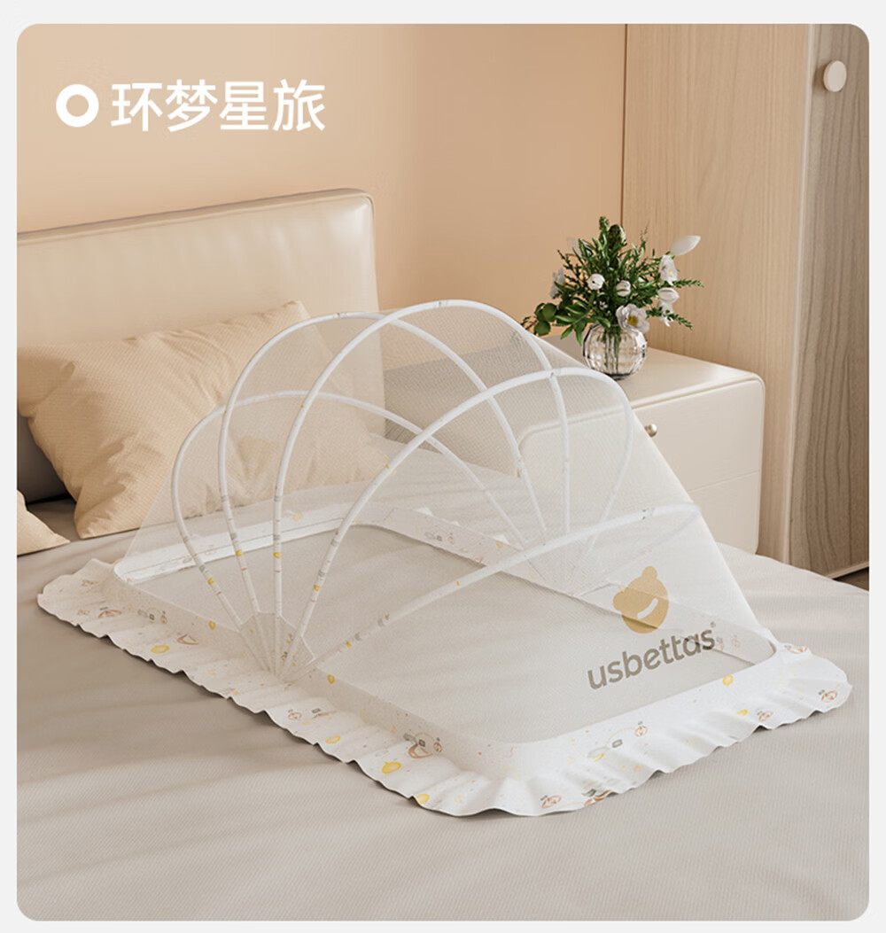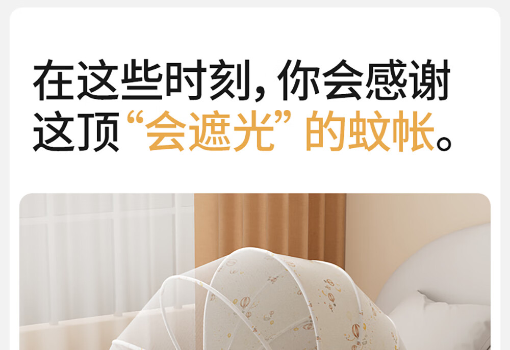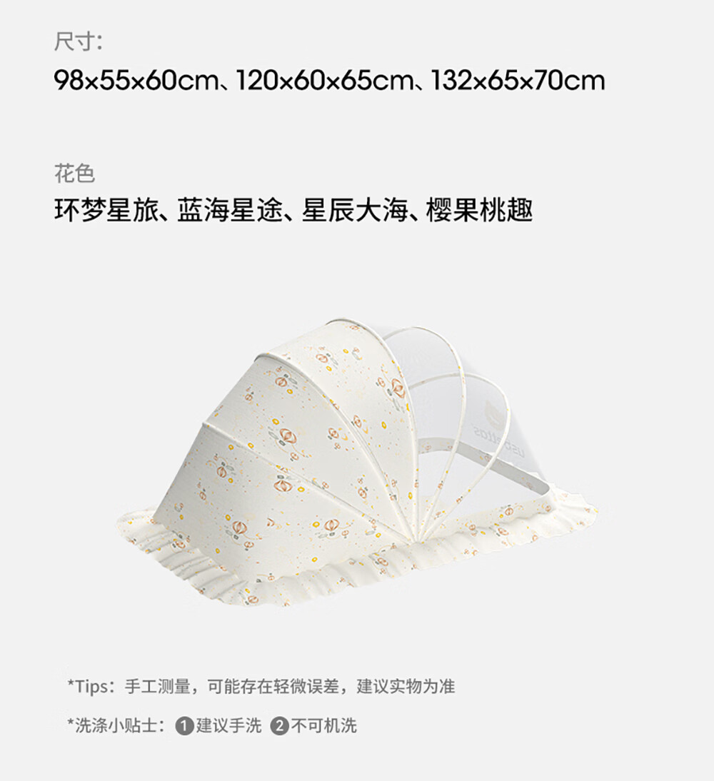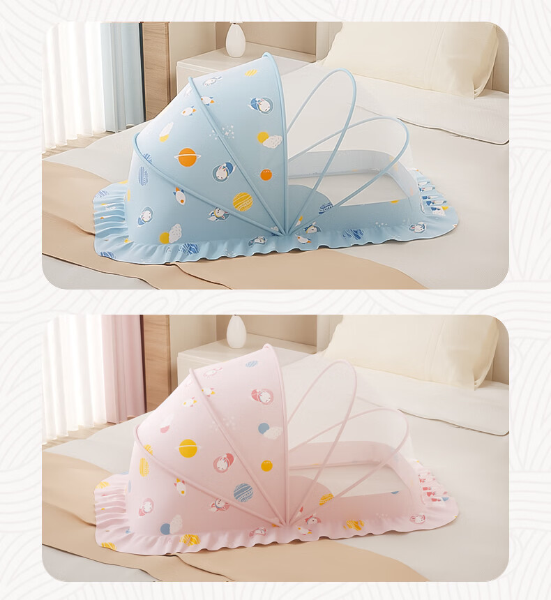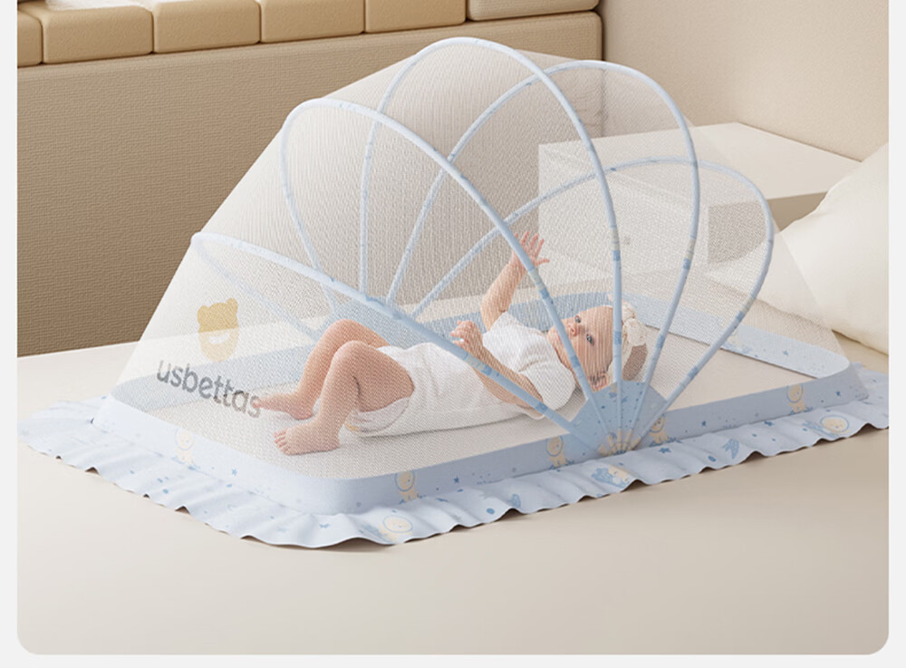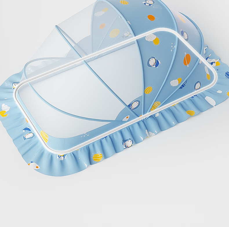 贝肽斯婴儿蚊帐罩床上宝宝蚊帐免安装可折叠儿童床婴儿车全罩式防蚊罩 冰川灰-网面款 小号-建议0-1.5岁
