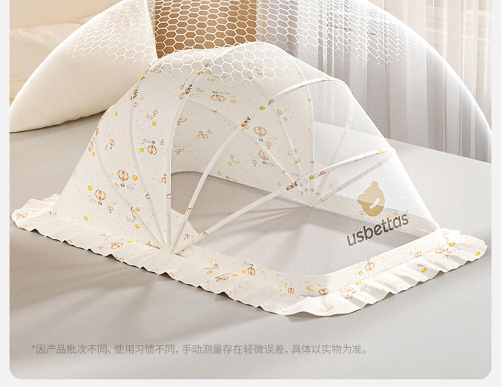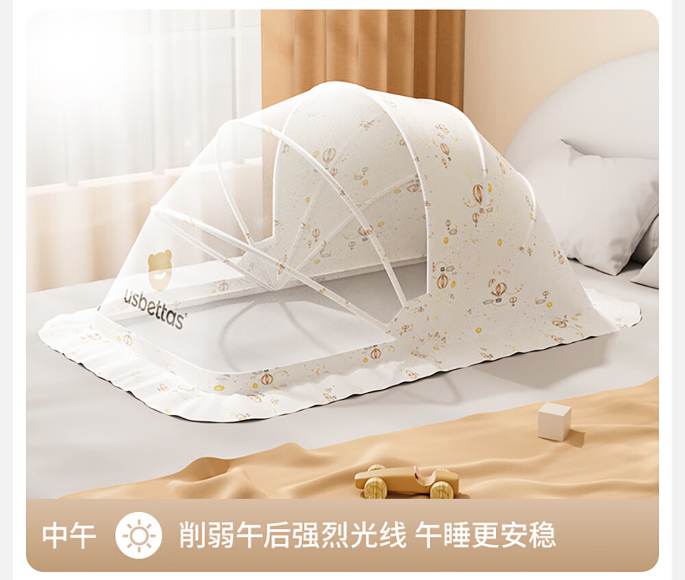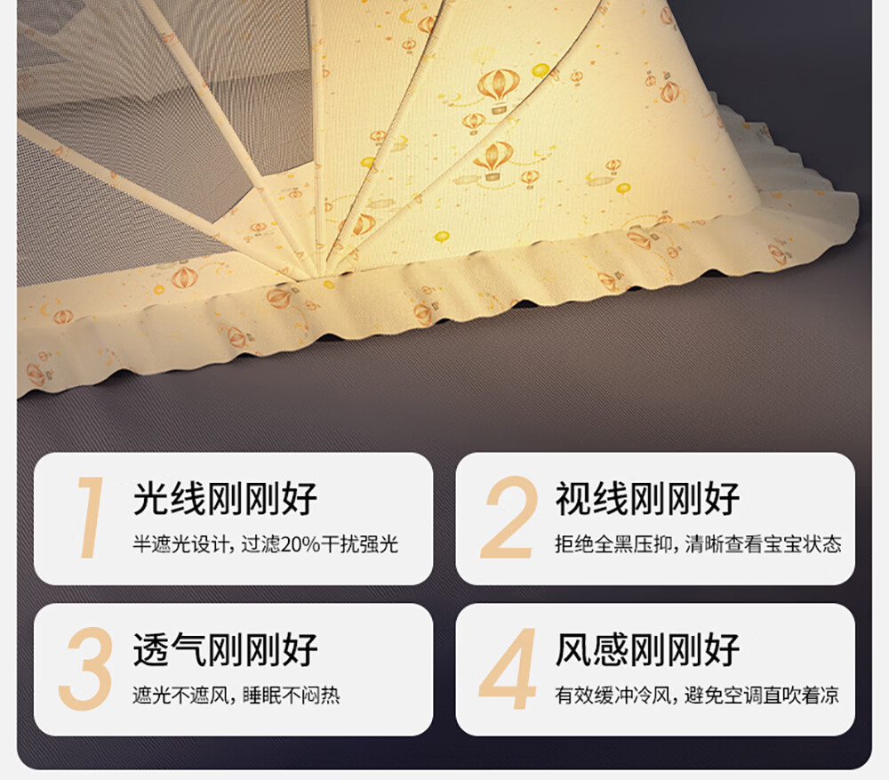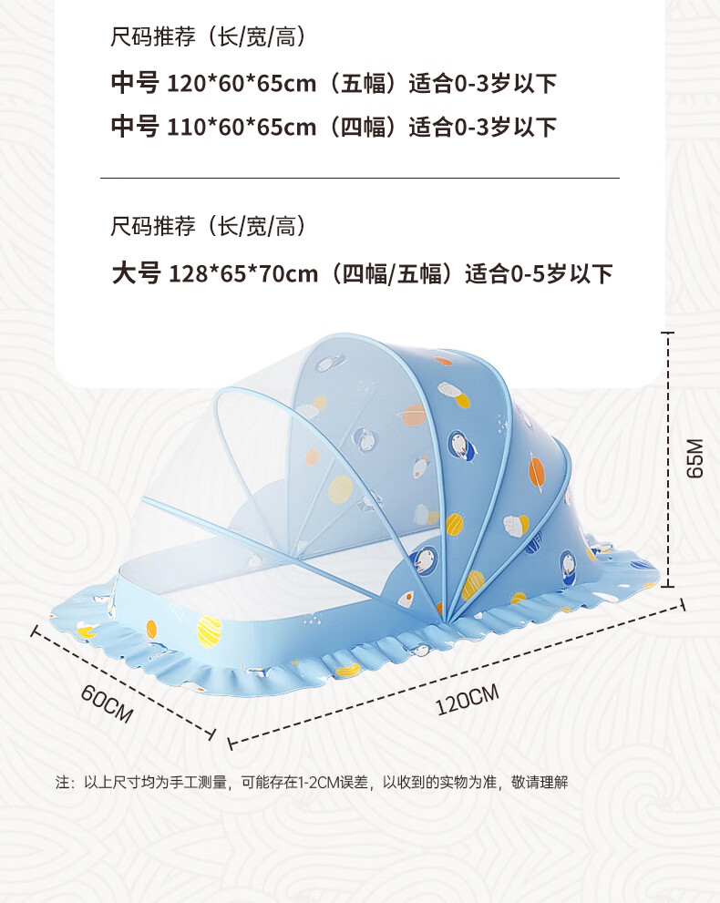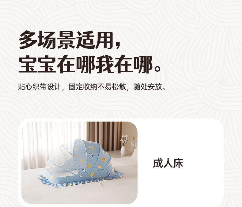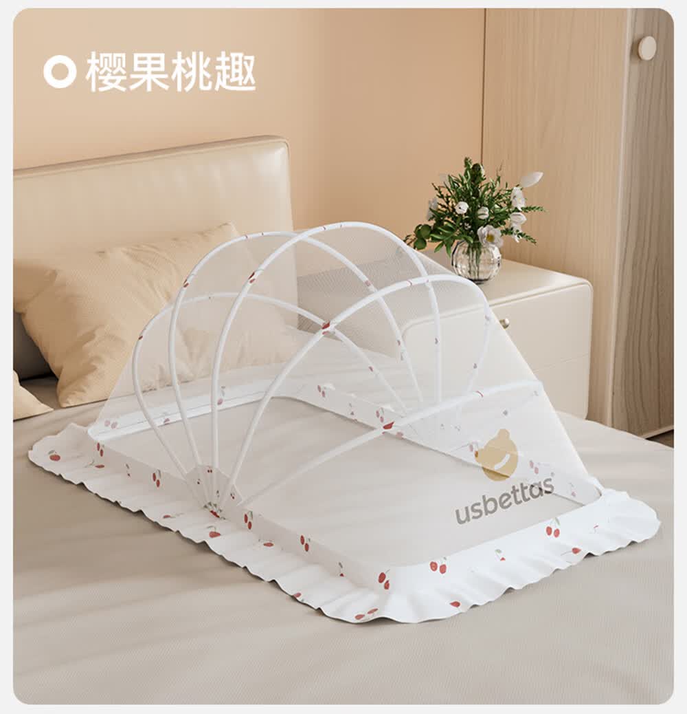 贝肽斯婴儿蚊帐罩床上宝宝蚊帐免安装可折叠儿童床婴儿车全罩式防蚊罩 冰川灰-网面款 小号-建议0-1.5岁
