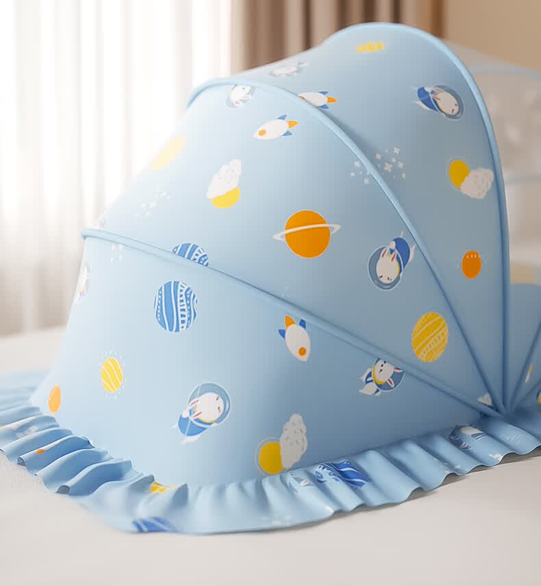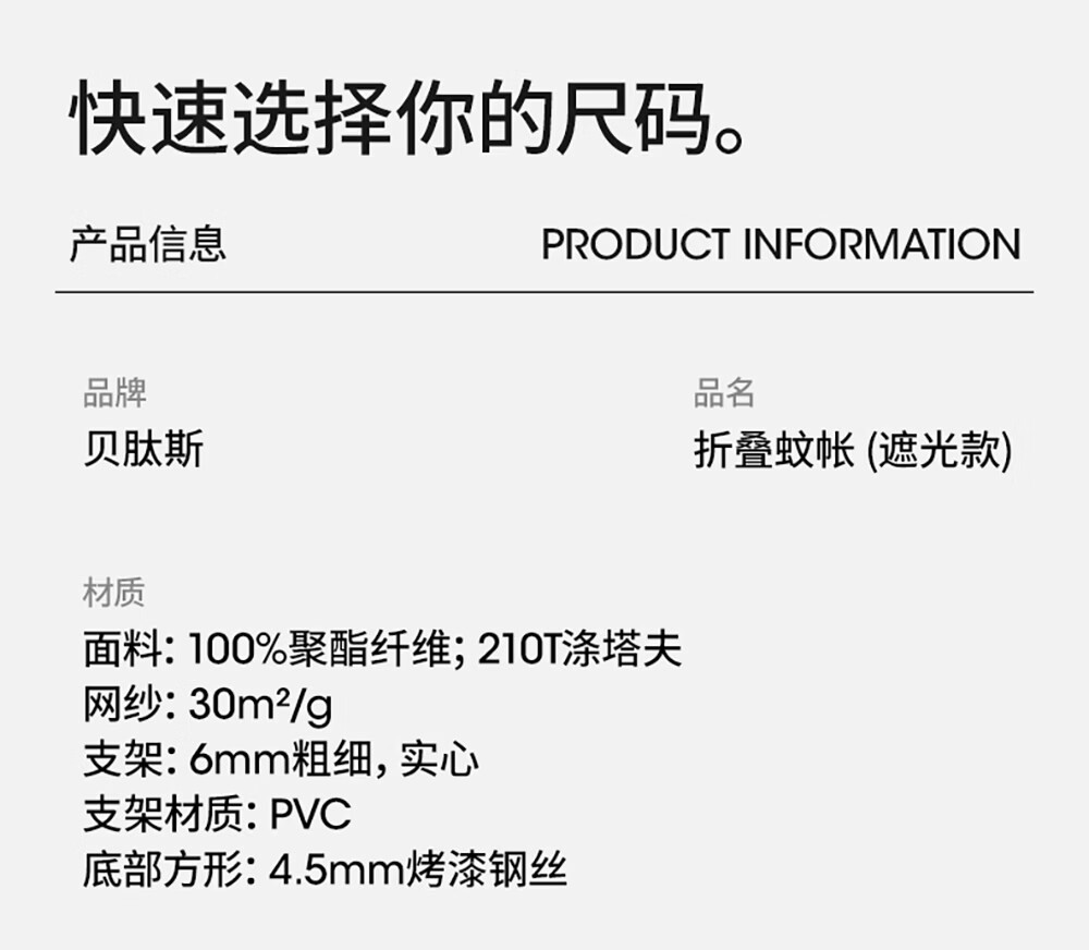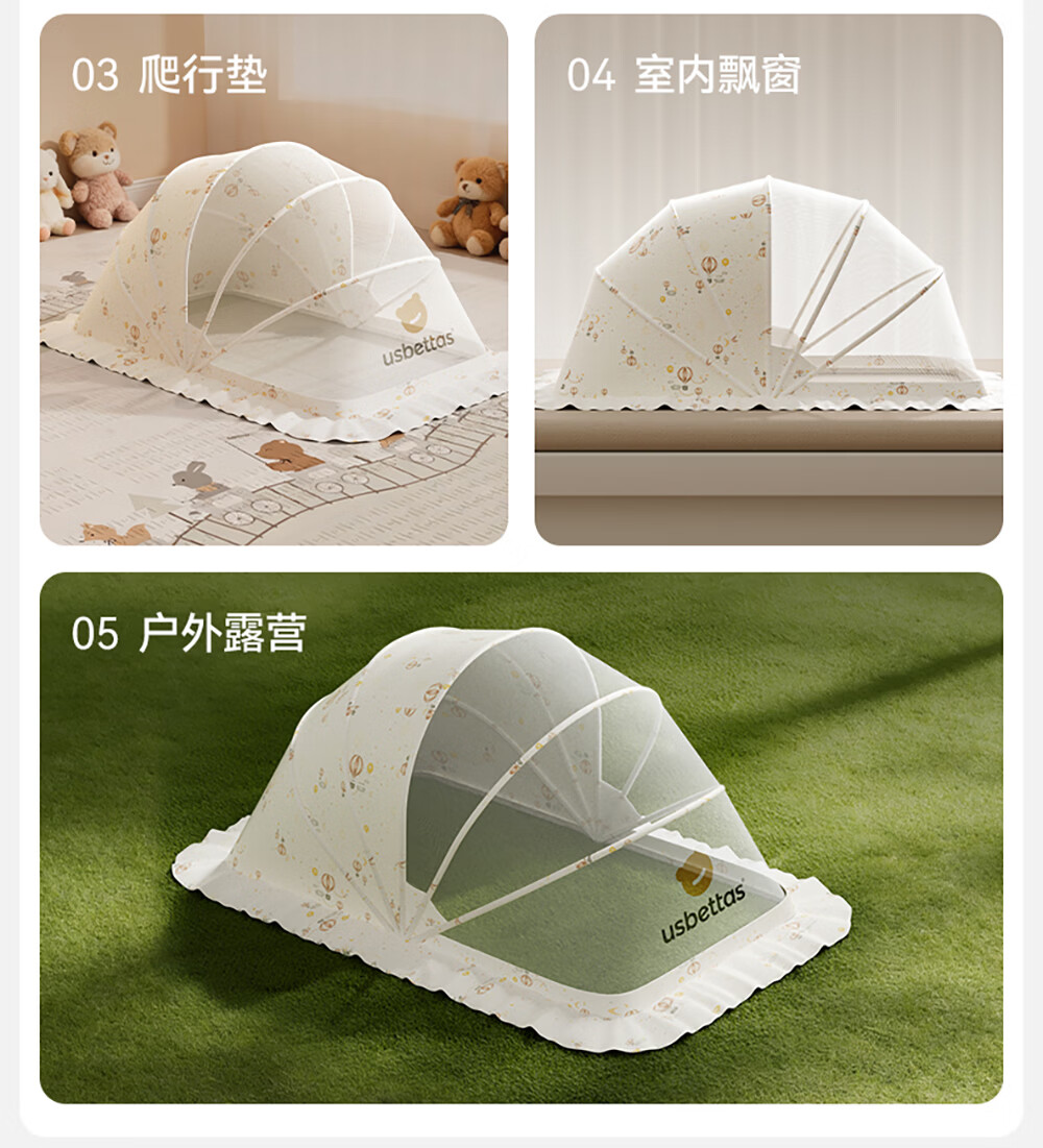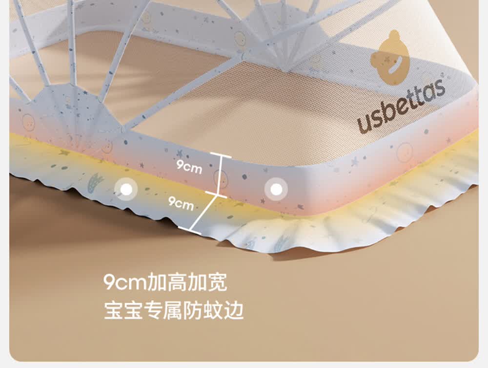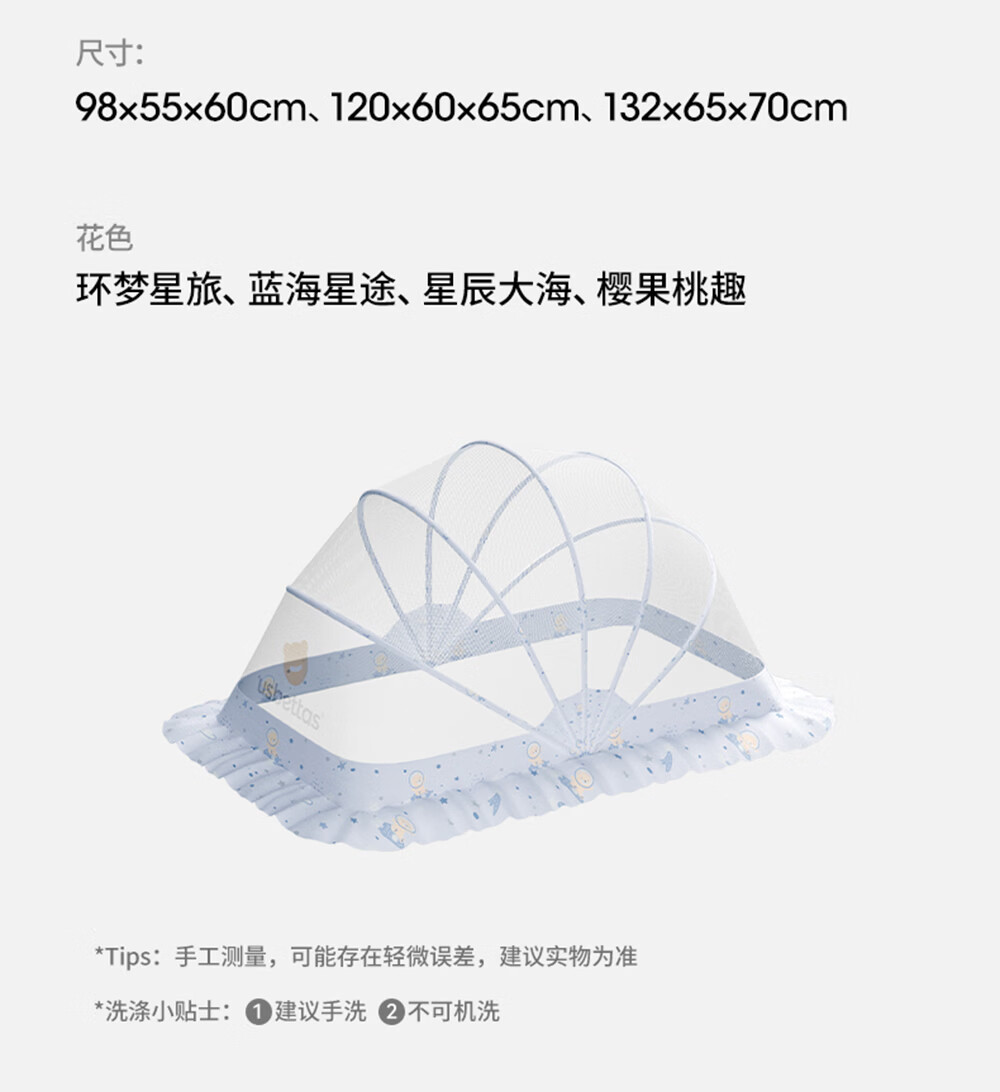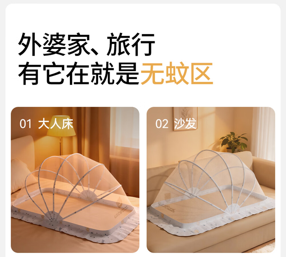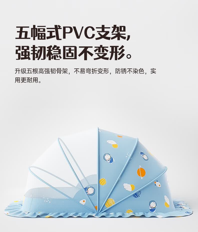 贝肽斯婴儿蚊帐罩床上宝宝蚊帐免安装可折叠儿童床婴儿车全罩式防蚊罩 冰川灰-网面款 小号-建议0-1.5岁