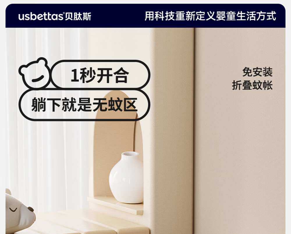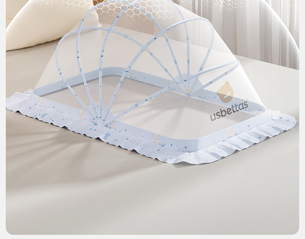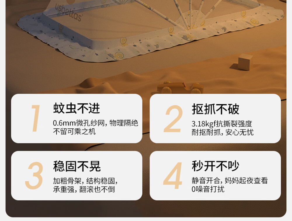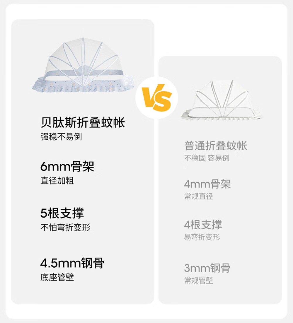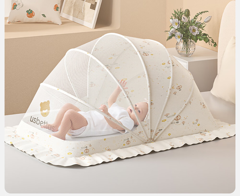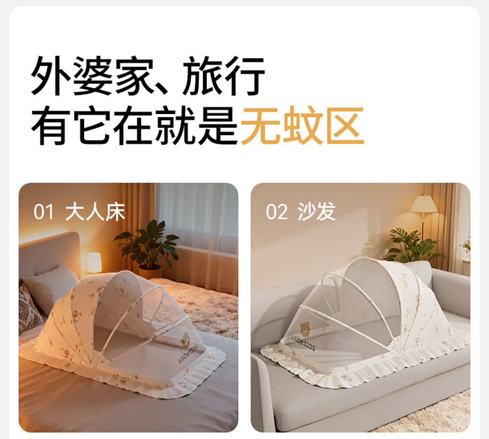 贝肽斯婴儿蚊帐罩床上宝宝蚊帐免安装可折叠儿童床婴儿车全罩式防蚊罩 冰川灰-网面款 小号-建议0-1.5岁