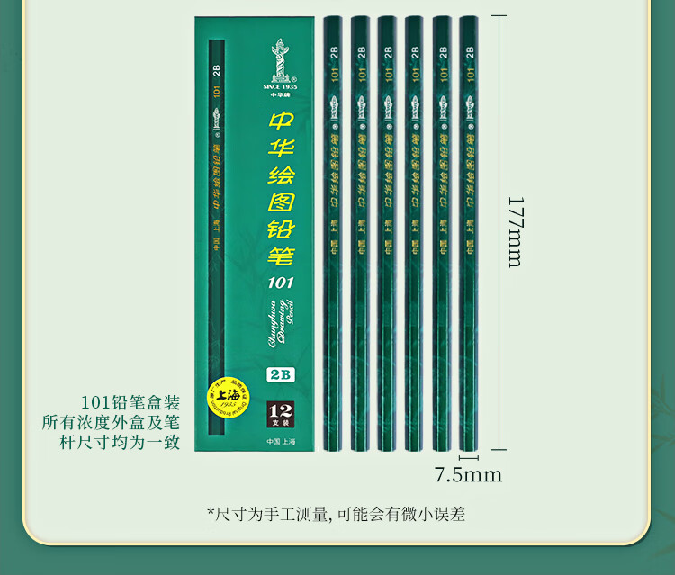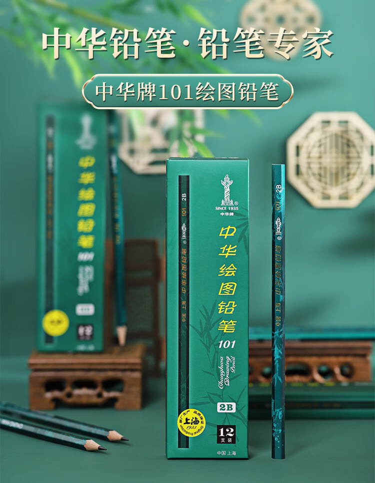 中华【热门商品】中华 101-2H 绘图铅笔2H学生书写铅笔六角 开学季礼物 12支/盒