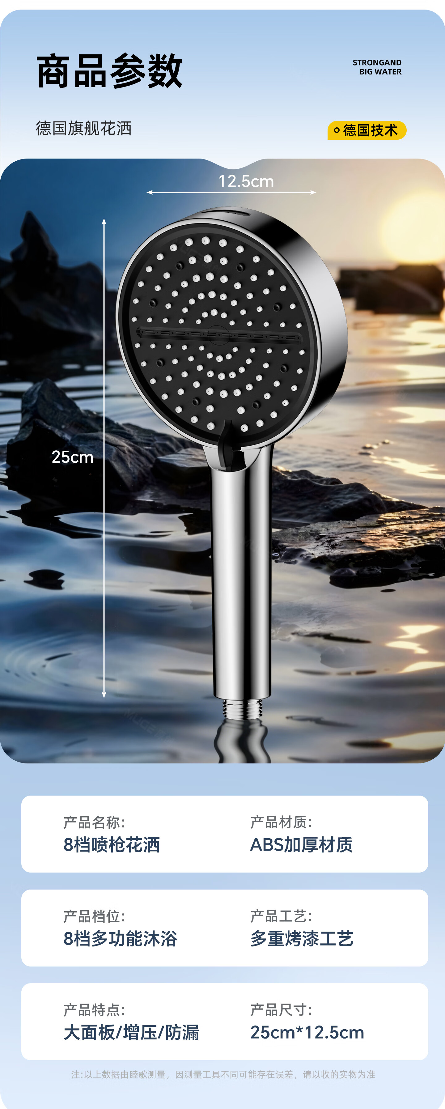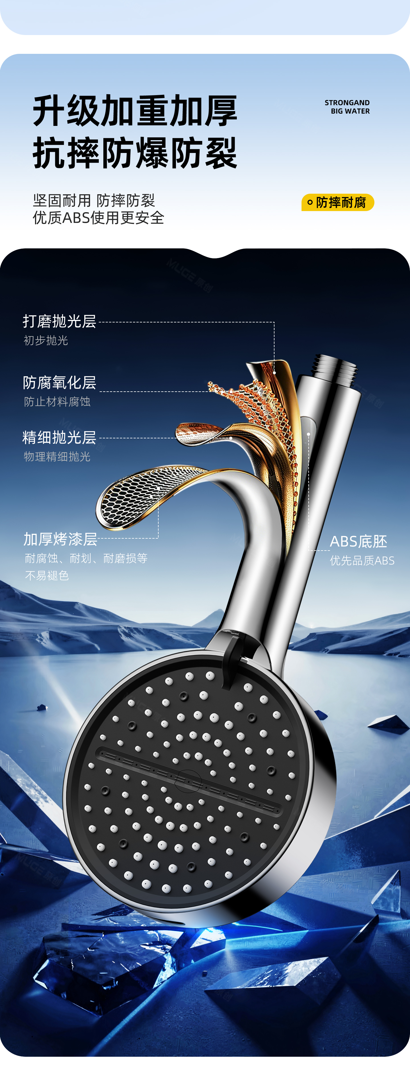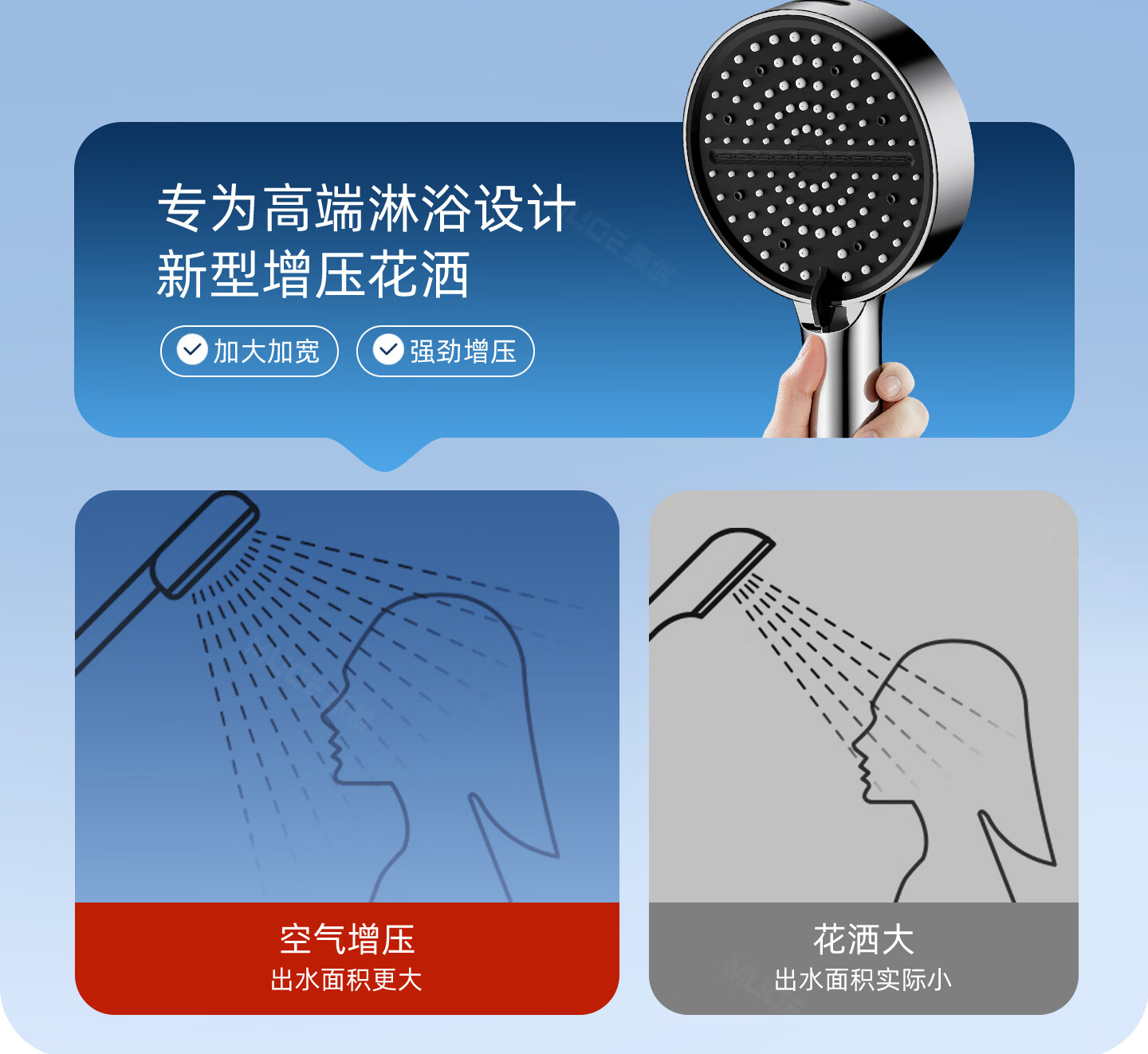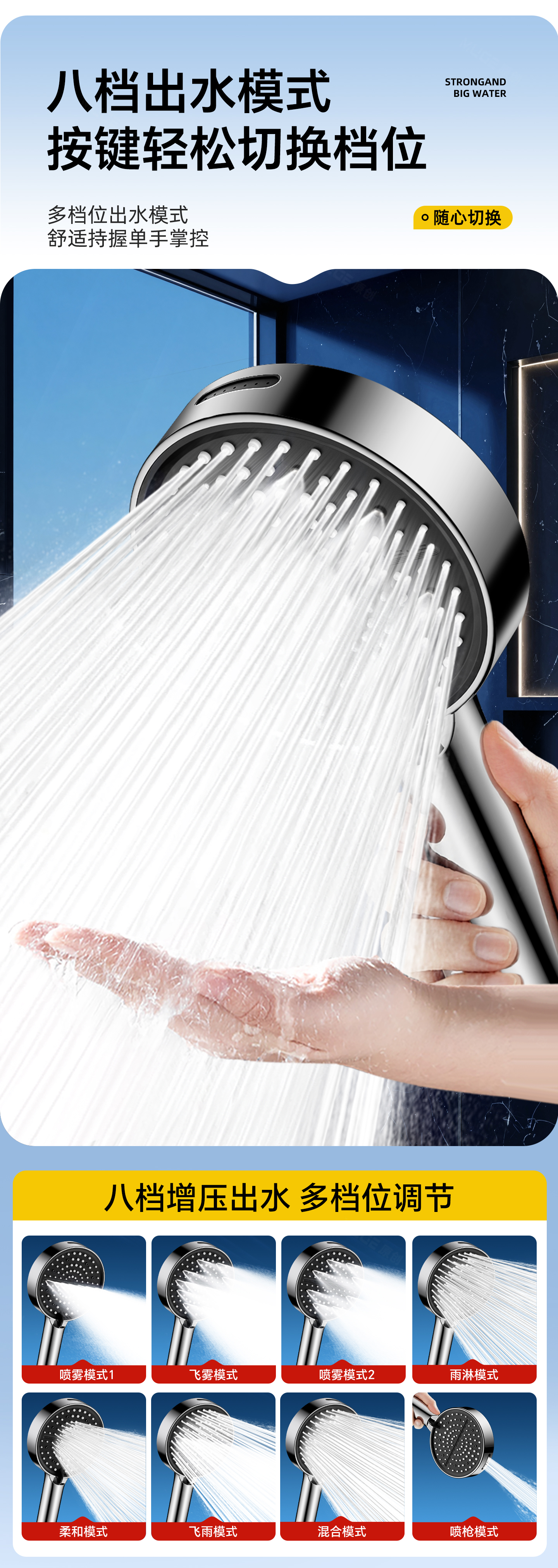 睦歌(MUGE)浴室增压花洒喷头超强高压大出水通用洗澡手持花洒淋浴喷头莲蓬头 八档调节【亮银色】增压花洒头