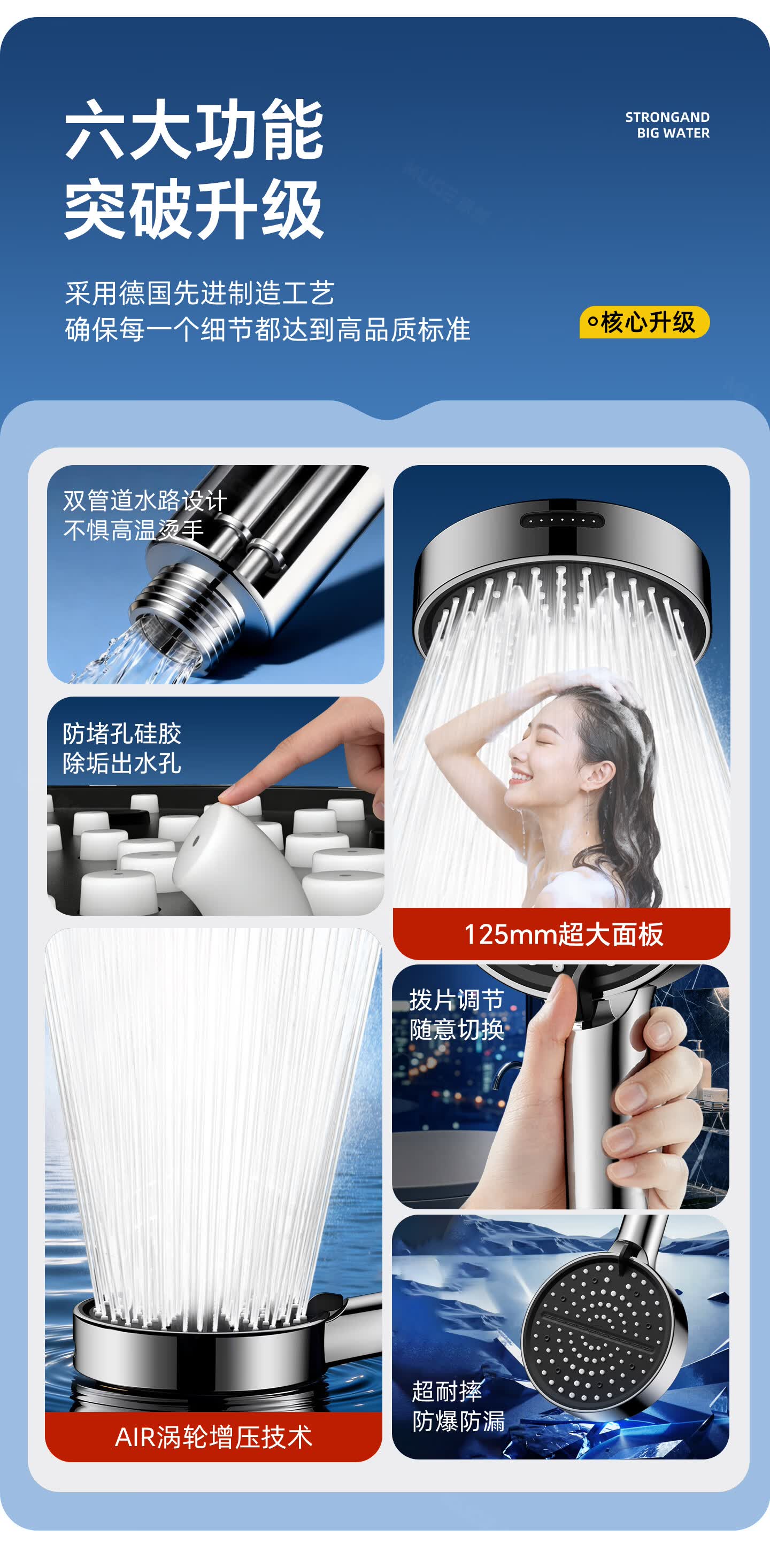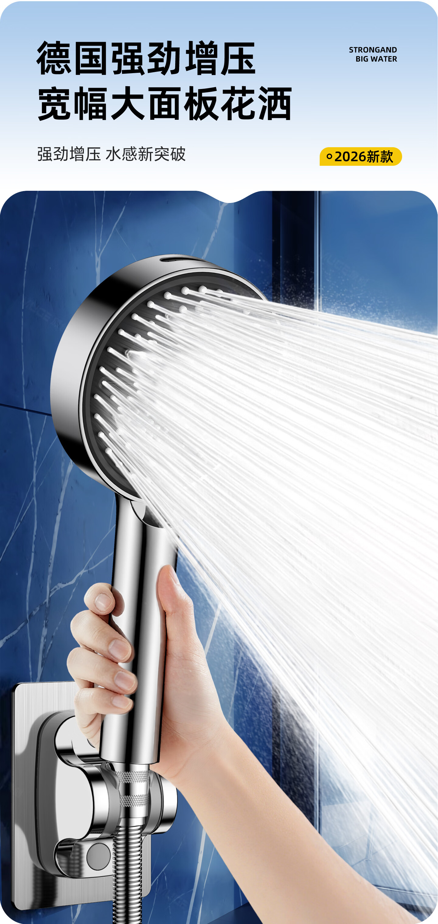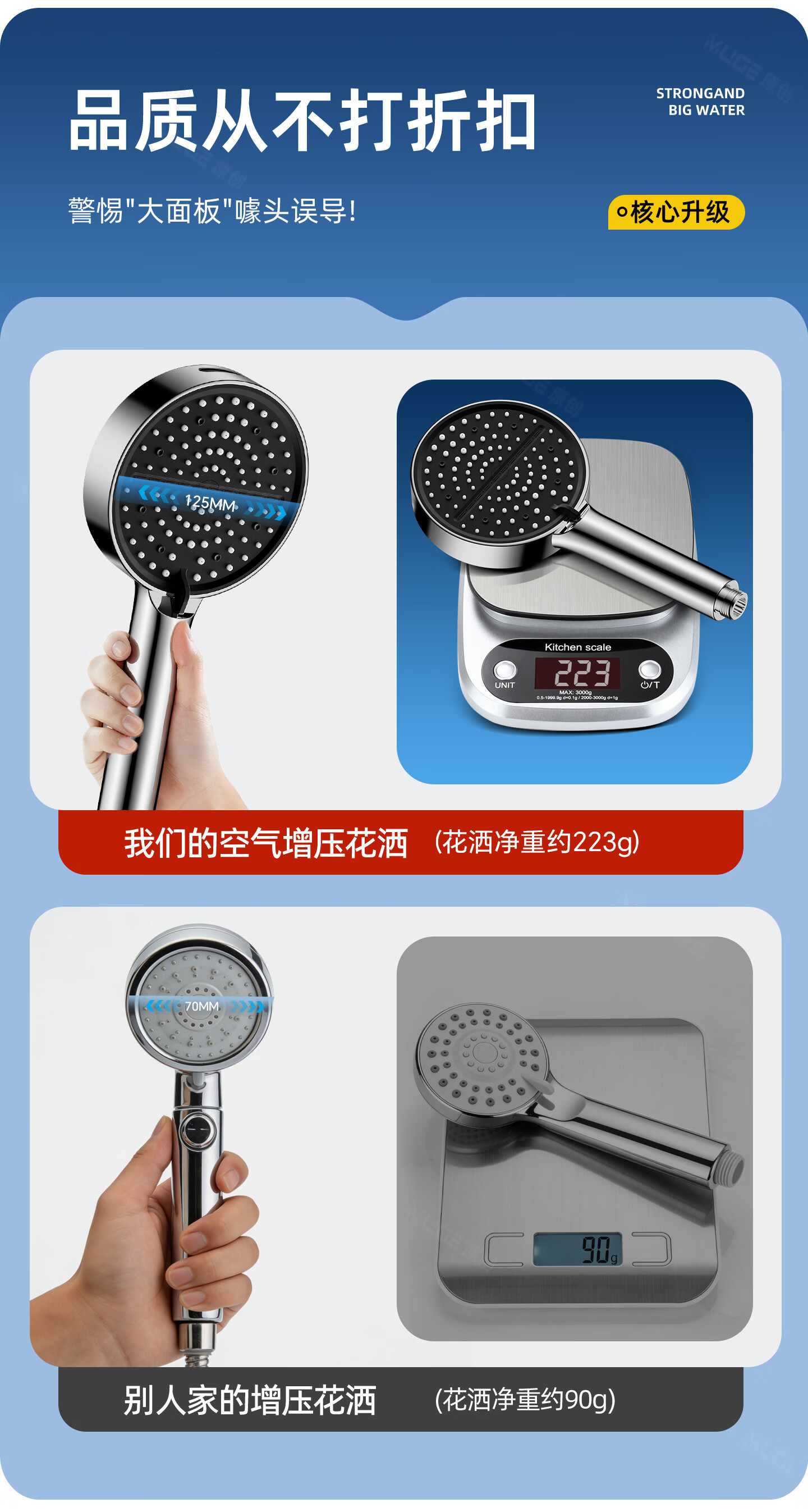 睦歌(MUGE)浴室增压花洒喷头超强高压大出水通用洗澡手持花洒淋浴喷头莲蓬头 八档调节【亮银色】增压花洒头