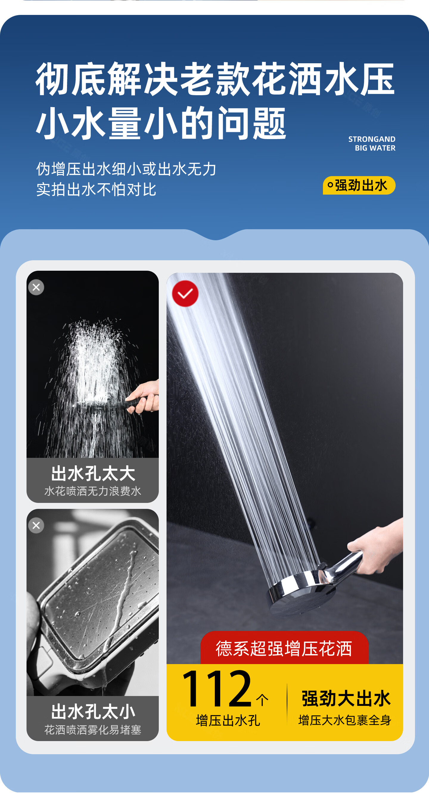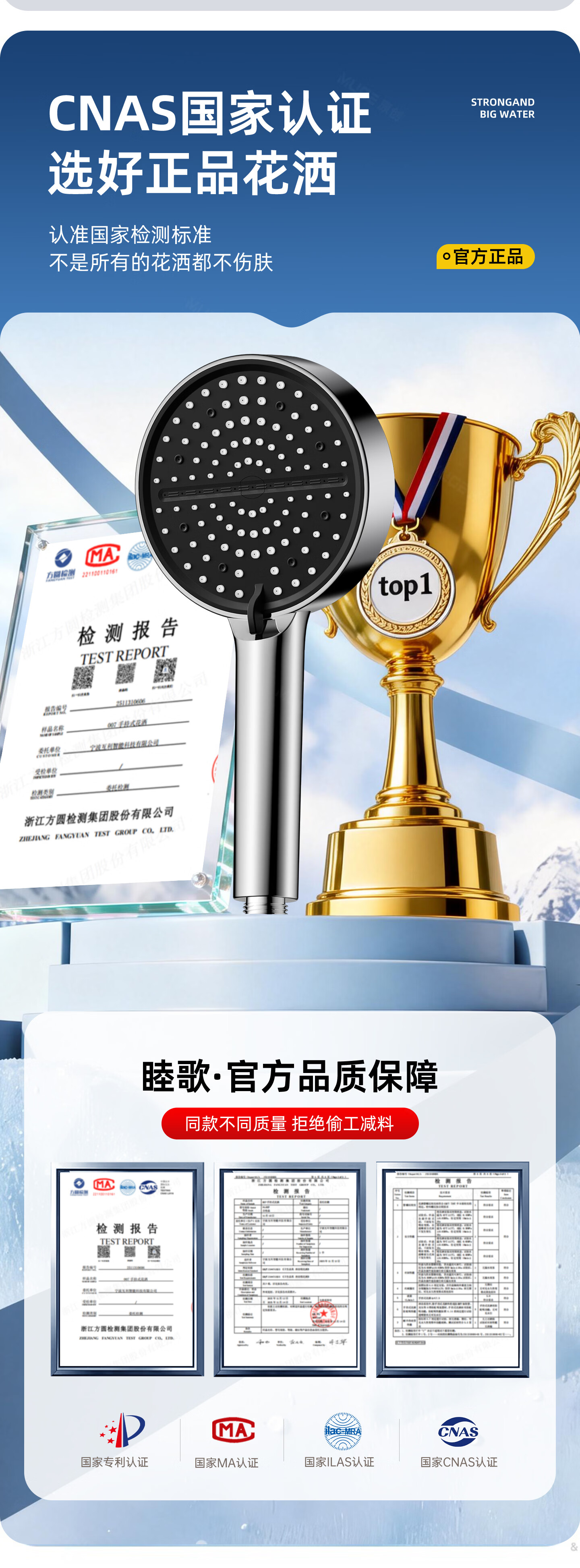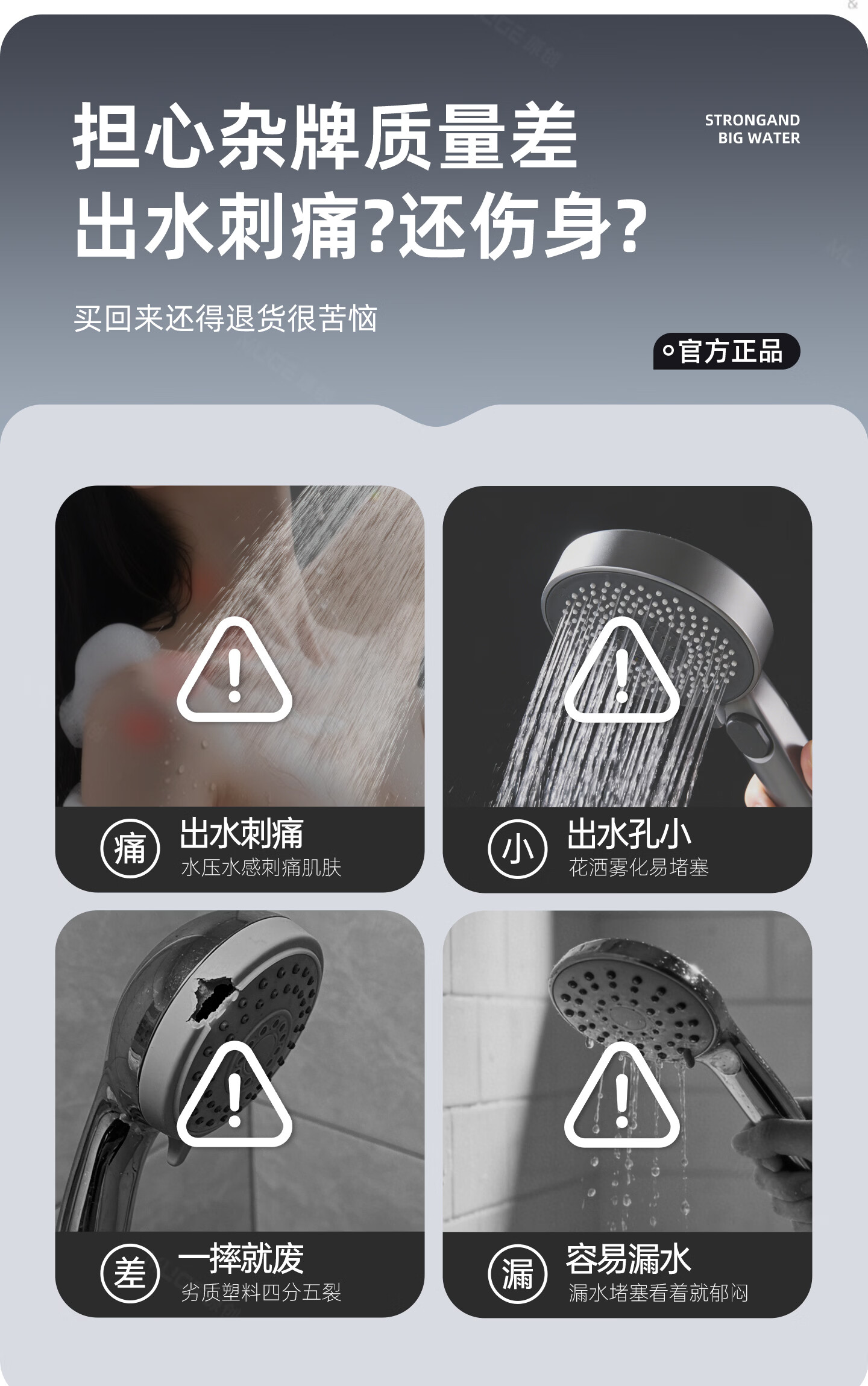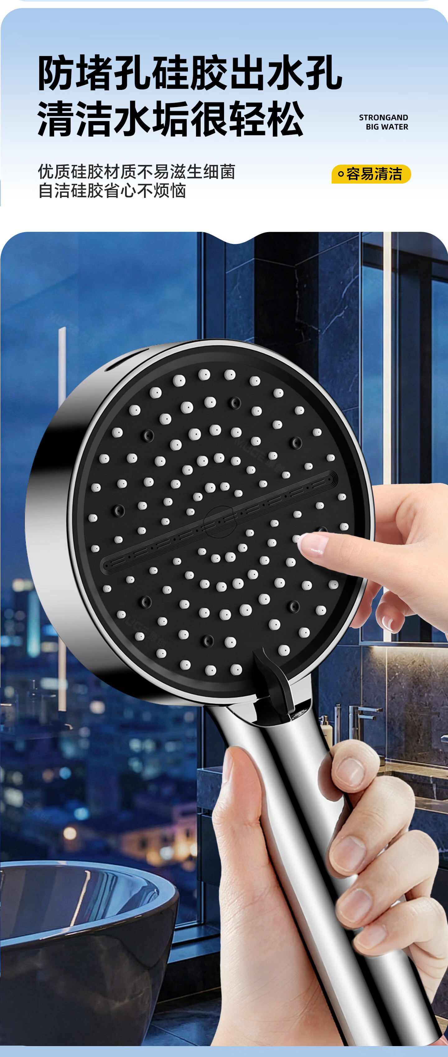 睦歌(MUGE)浴室增压花洒喷头超强高压大出水通用洗澡手持花洒淋浴喷头莲蓬头 八档调节【亮银色】增压花洒头