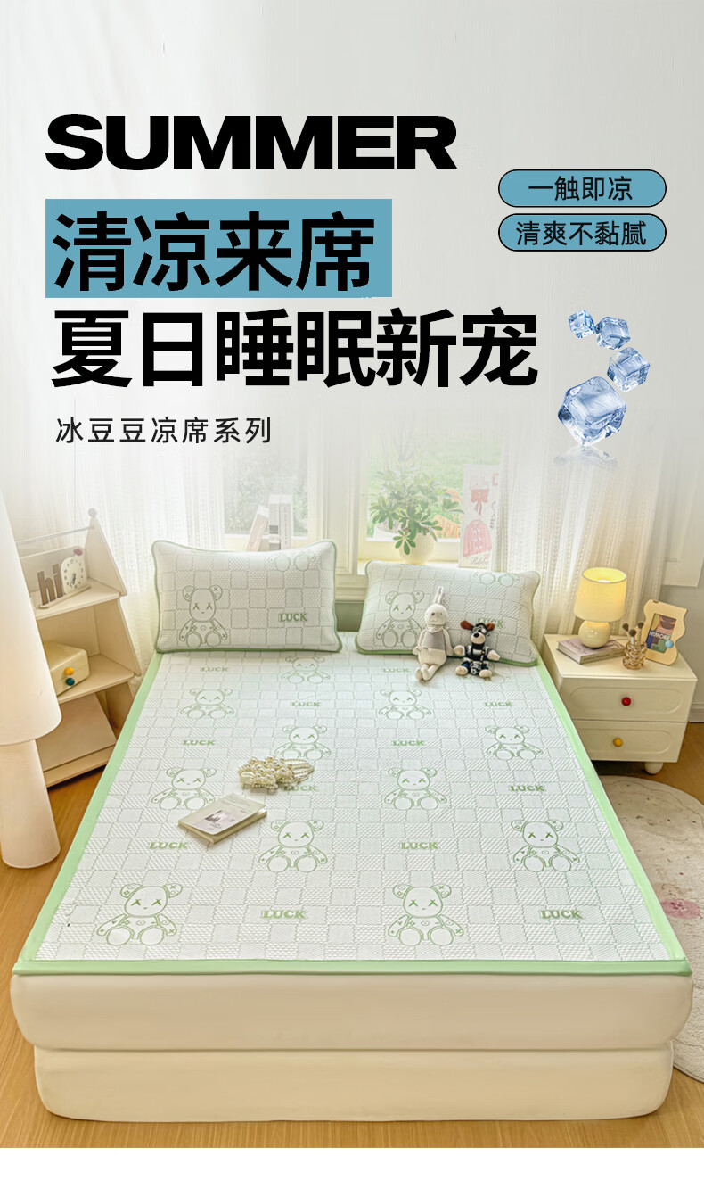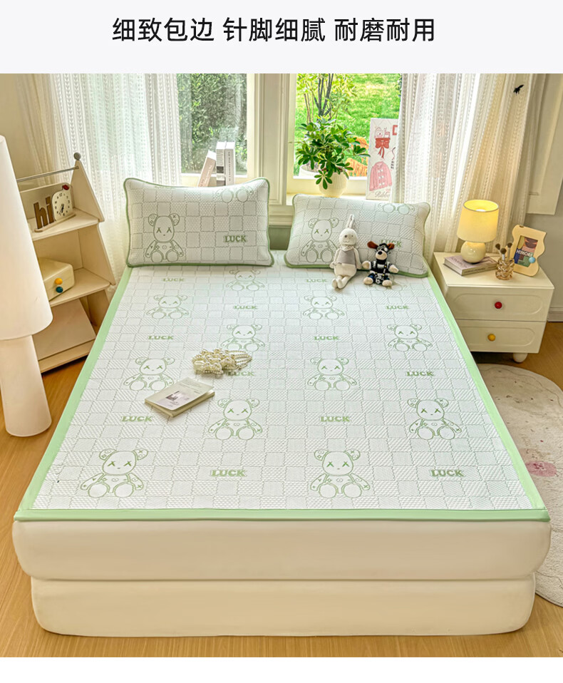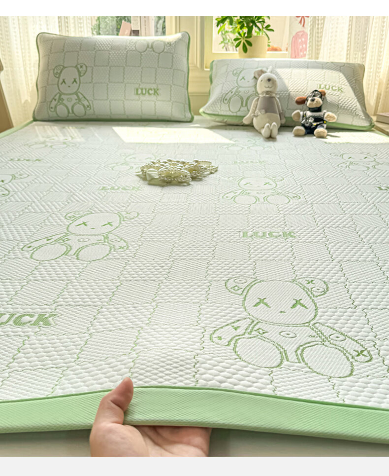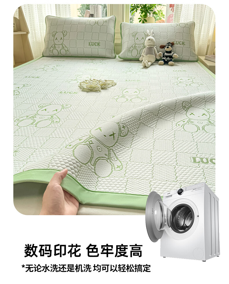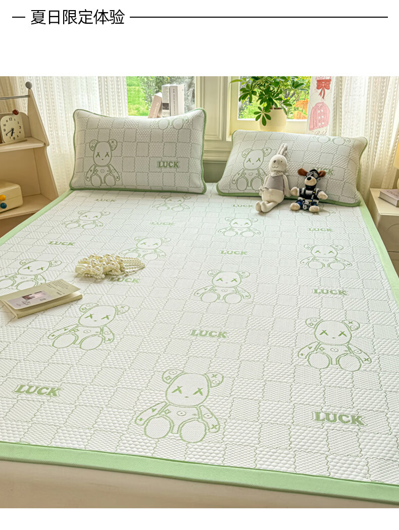 雅鹿a类冰豆豆凉席1.8x2米夏天专用可机洗软席子三件套夏季宿舍空调席 草绿【A类母婴级 凉感透气 老少皆宜】 180x200cm单凉席