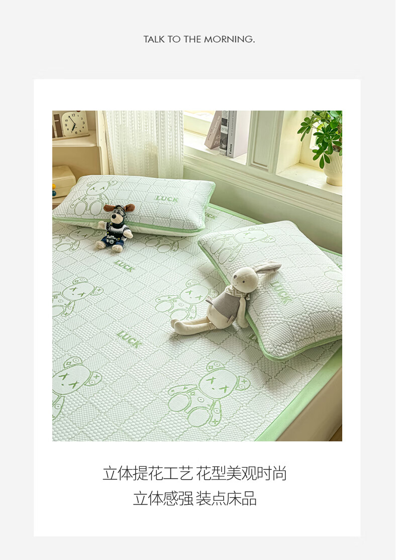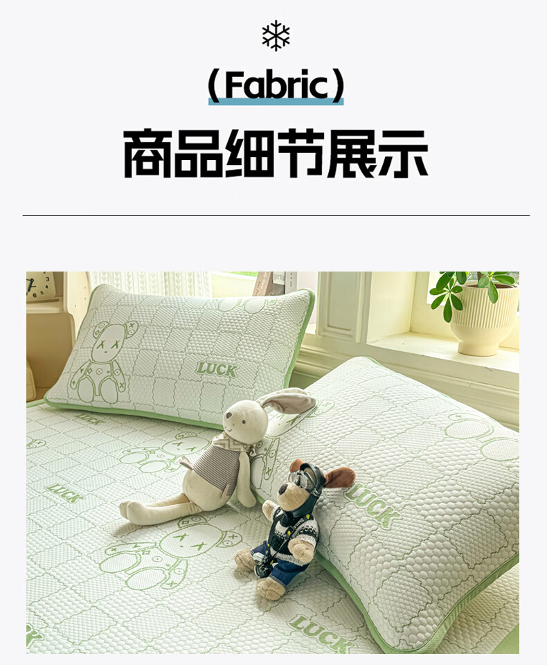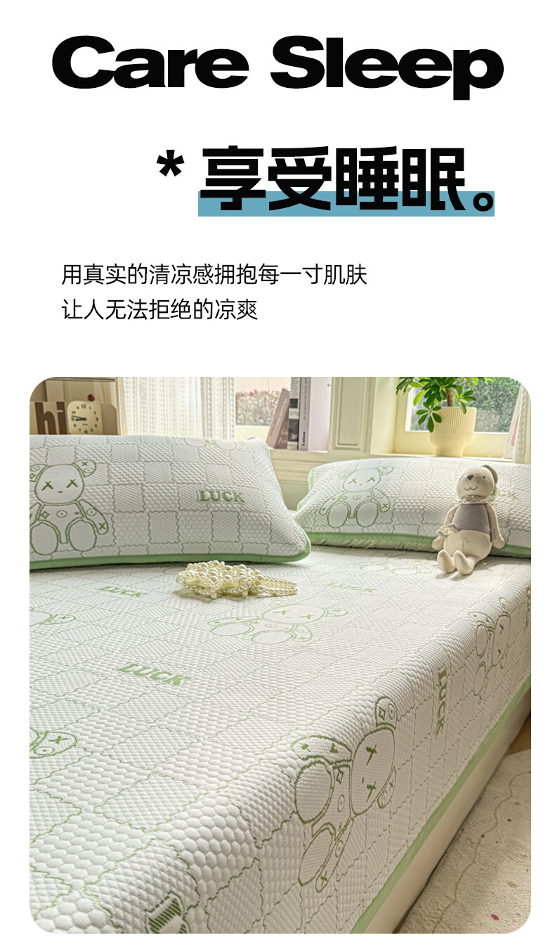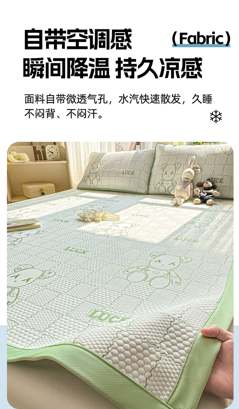 雅鹿a类冰豆豆凉席1.8x2米夏天专用可机洗软席子三件套夏季宿舍空调席 草绿【A类母婴级 凉感透气 老少皆宜】 180x200cm单凉席
