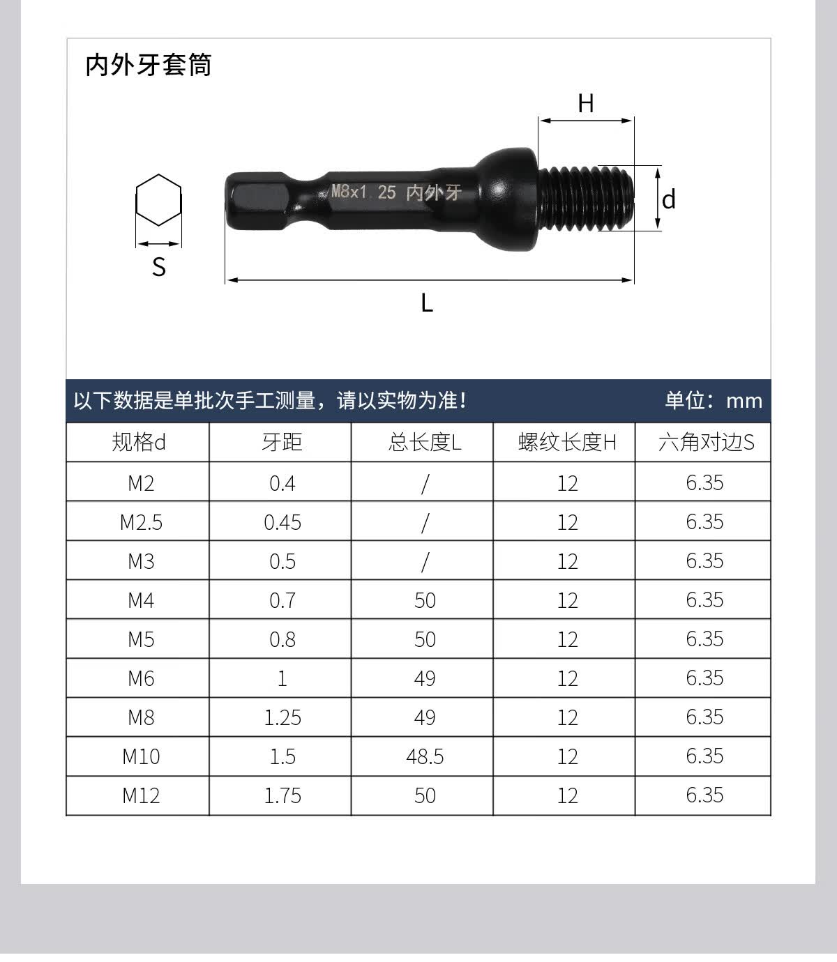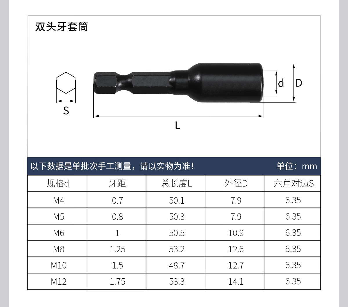 佰瑞特(bairuite)内外牙套筒双头牙螺丝家具预埋螺母M4-M12批头自攻锁紧风批头套筒 双头牙 M8*1.25牙【1支】