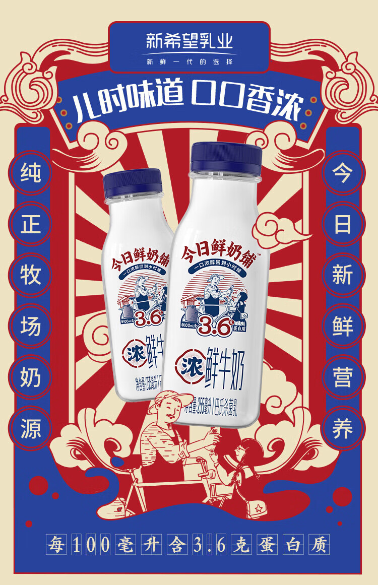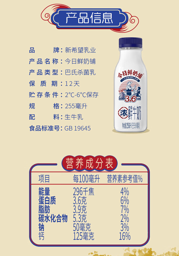 新希望今日鲜奶铺鲜奶255ml/早餐营养生鲜低温家庭聚会下午茶鲜牛奶送礼 255ml*12瓶【3.6g蛋白】