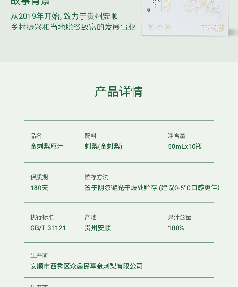 云上蔷薇贵州金刺梨汁VC天花板100%原汁原液优选好物50ml*10瓶 50ml*10瓶-果线盒
