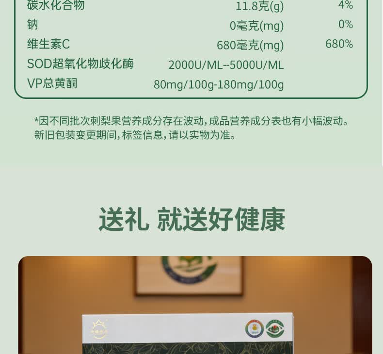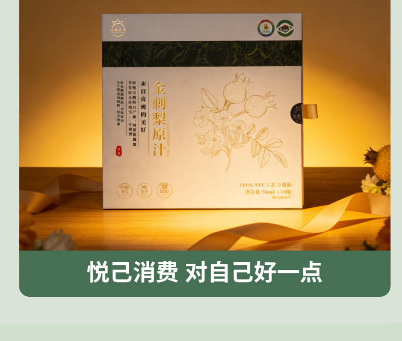 沙漠之花 有机沙棘原浆100%果汁内蒙小果含油不加糖无添加礼品礼盒装 10瓶*2盒