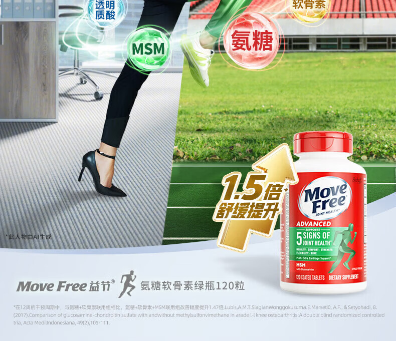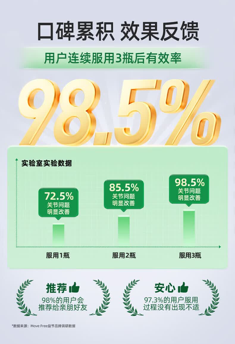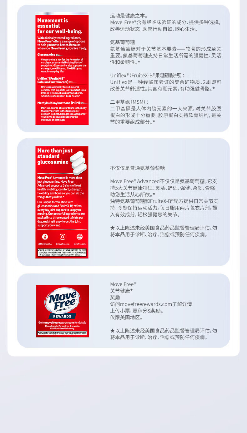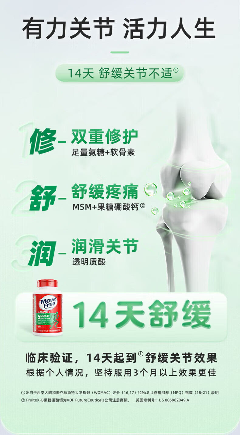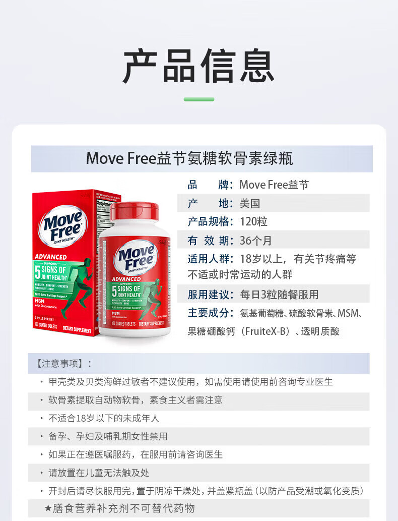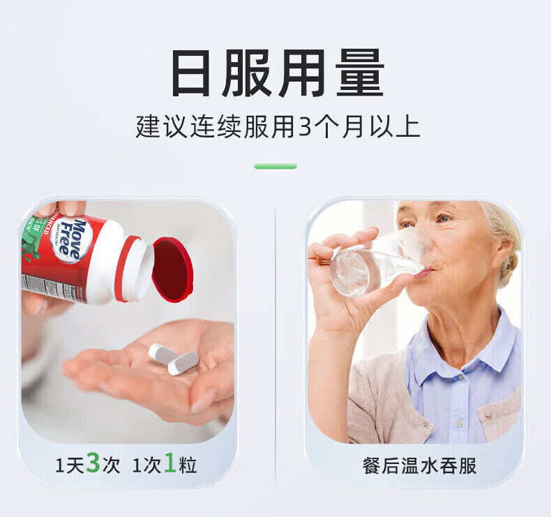 益节健康Move Free进口氨糖维骨力中老年人骨质疏松腰腿疼护关节 红瓶巩固3周期 氨糖软骨素钙片 200粒*5瓶