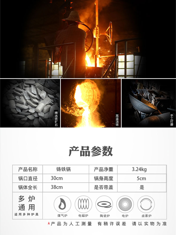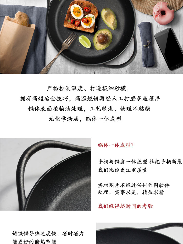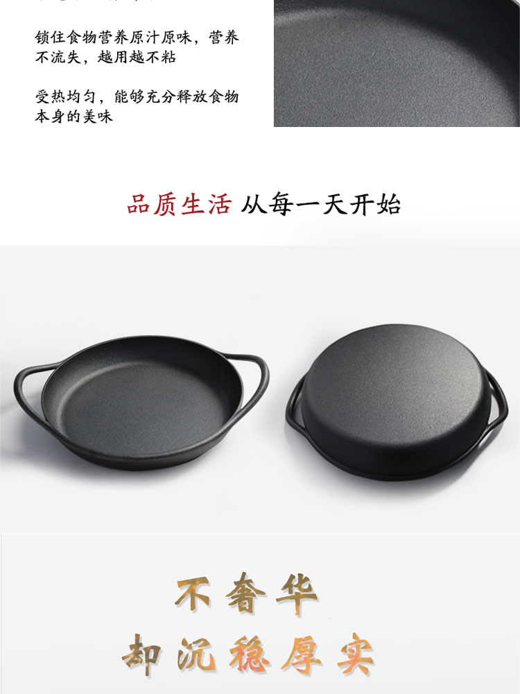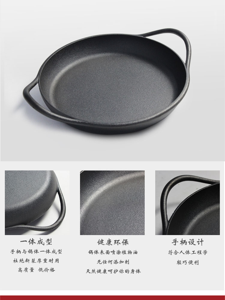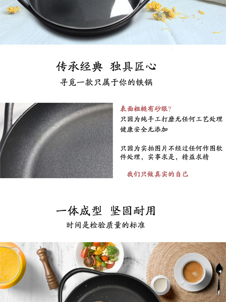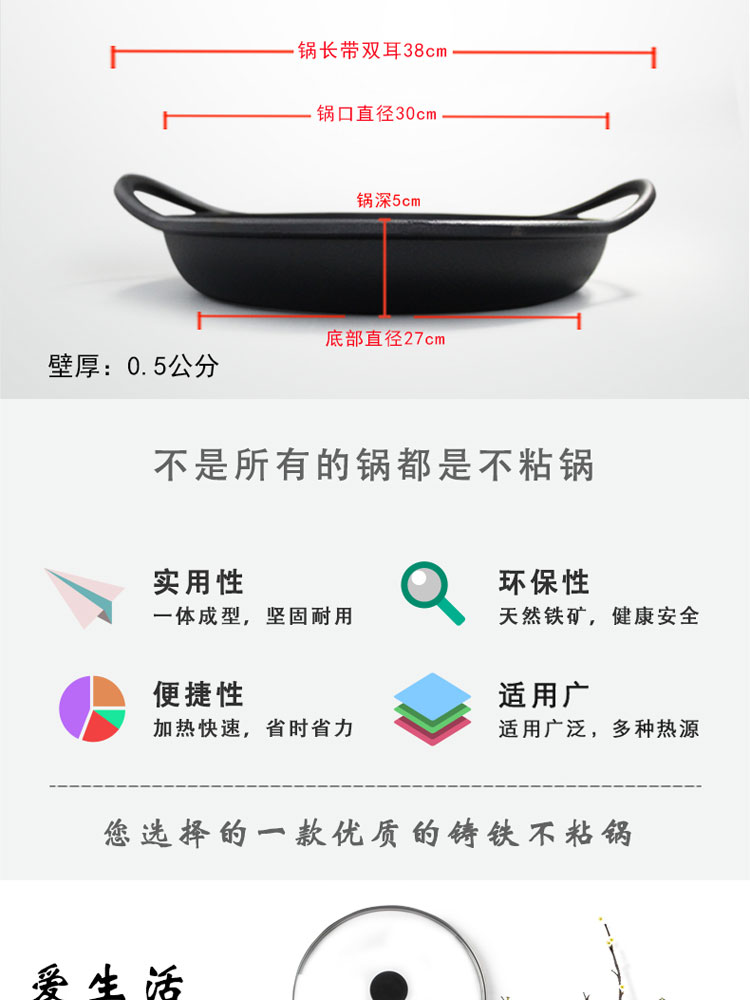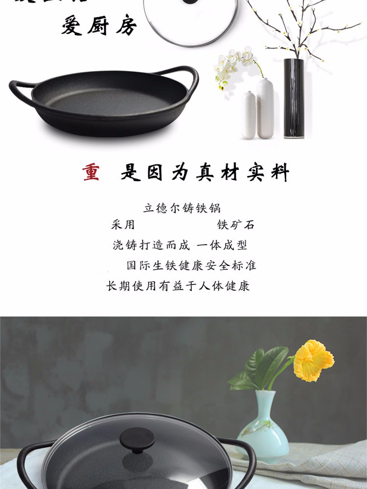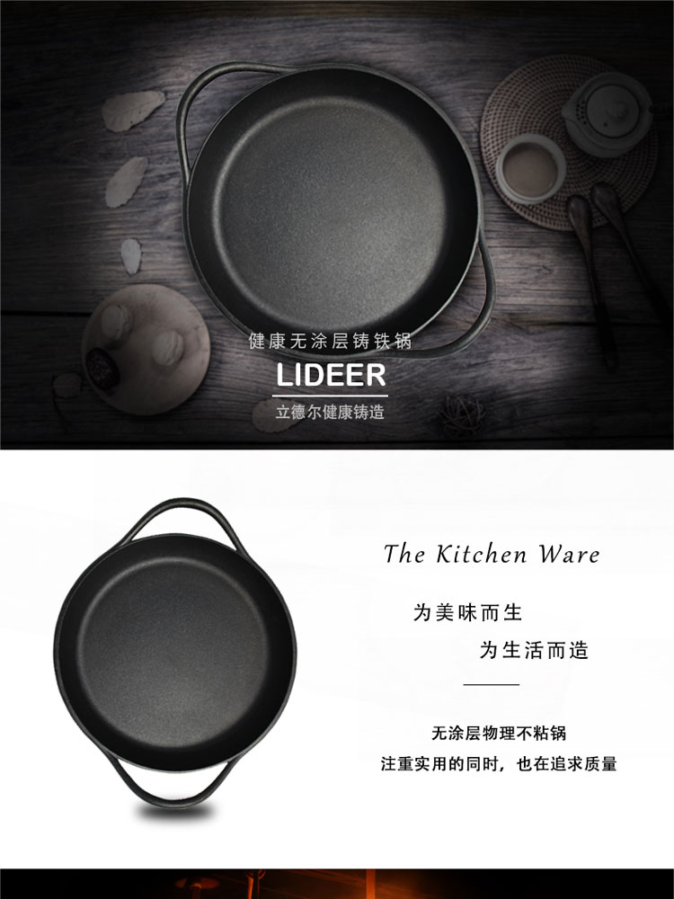 LIDEER COOKWARE 铸铁平底锅煎锅电磁炉通用烙饼锅水煎包不易粘加厚无涂层双耳 30CM