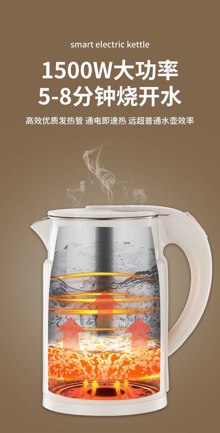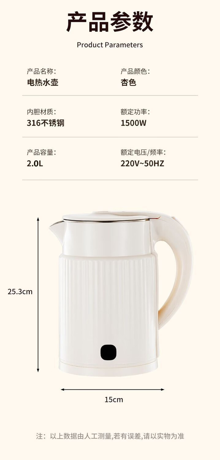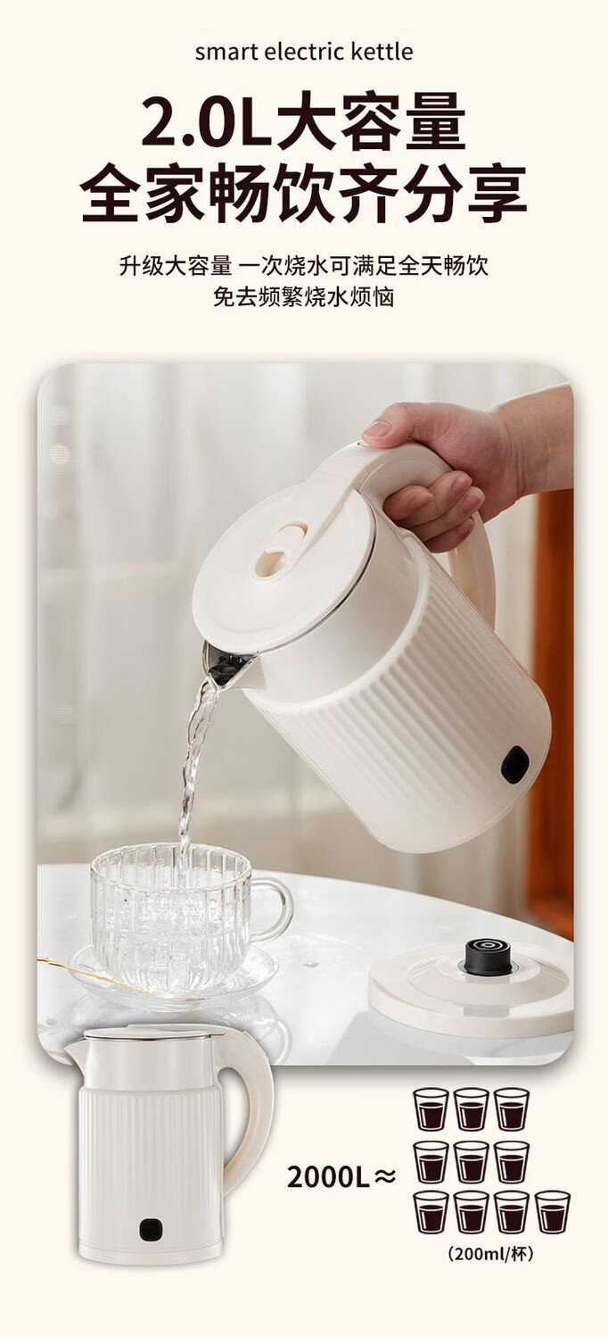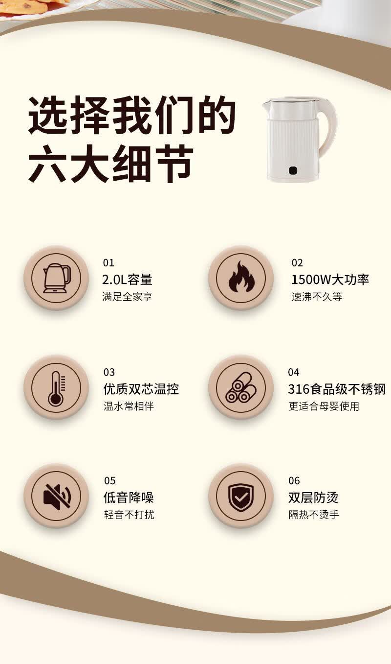 KITCHOICE316不锈钢热水壶电水壶热水壶 大容量家用烧水壶 双层防烫 2.0L大容量电水壶 2L 【316不锈钢内胆加厚】2.0L-蓝灯智能恒温