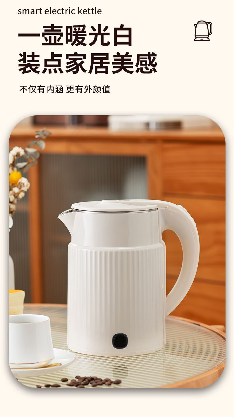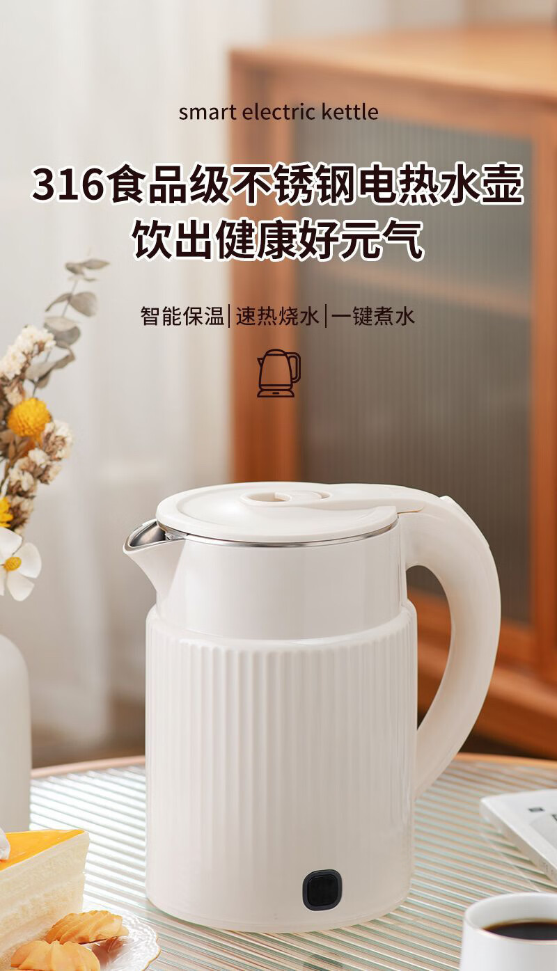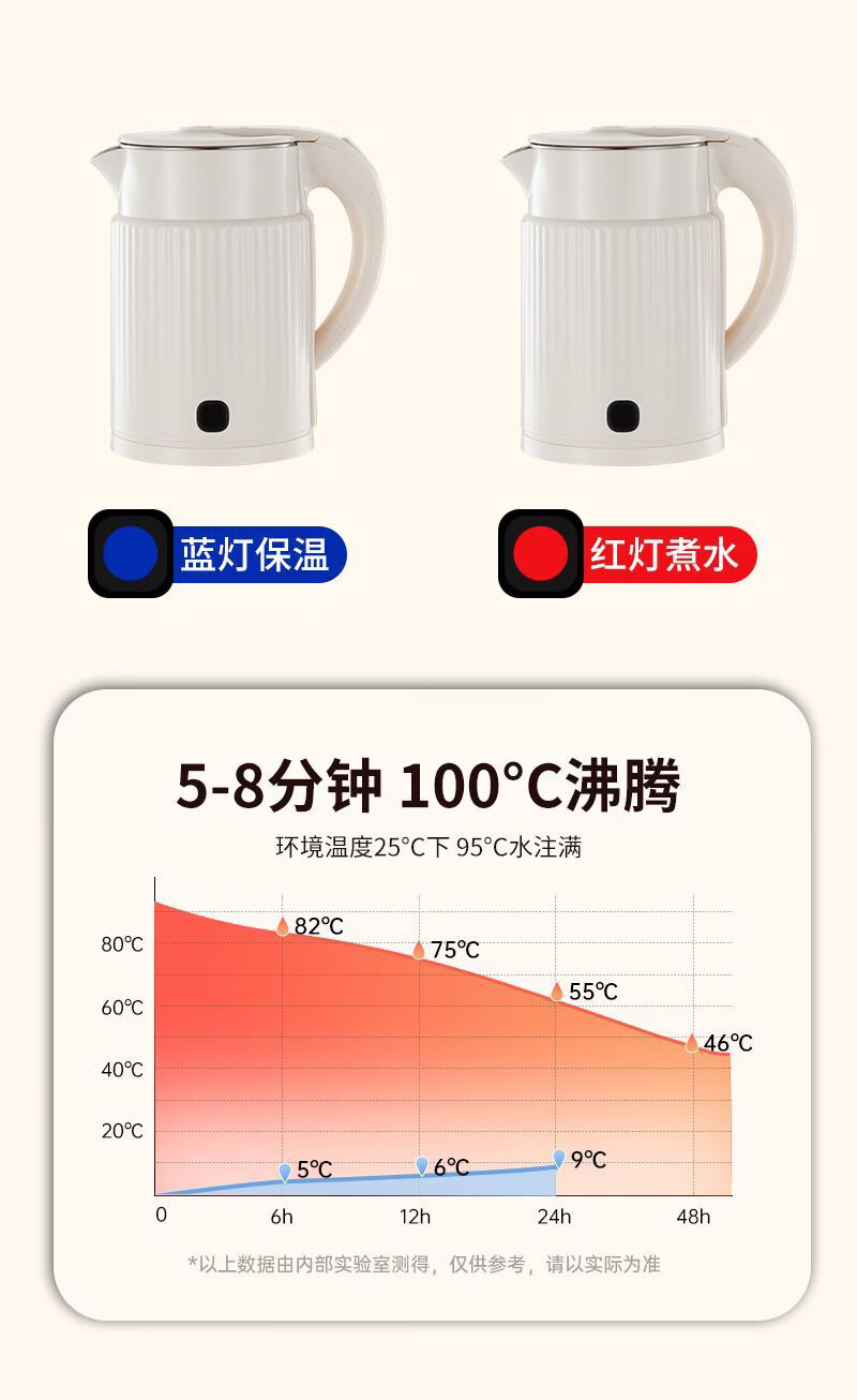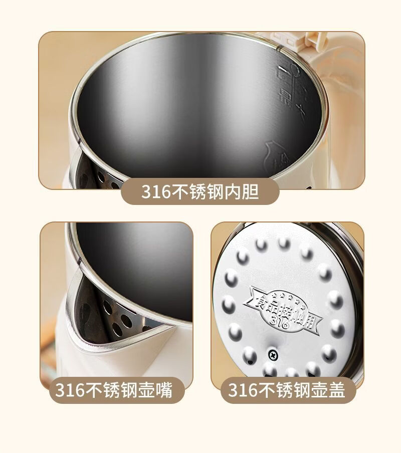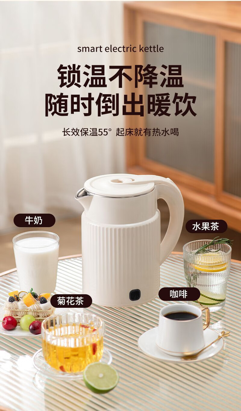 KITCHOICE316不锈钢热水壶电水壶热水壶 大容量家用烧水壶 双层防烫 2.0L大容量电水壶 2L 【316不锈钢内胆加厚】2.0L-蓝灯智能恒温