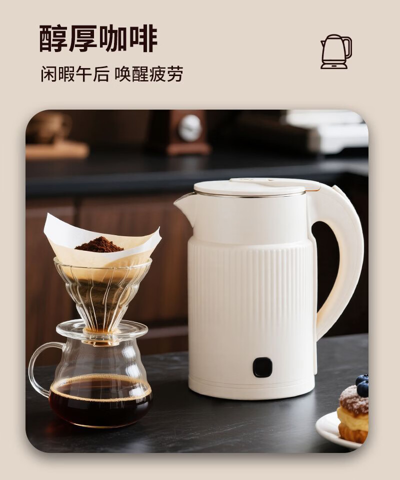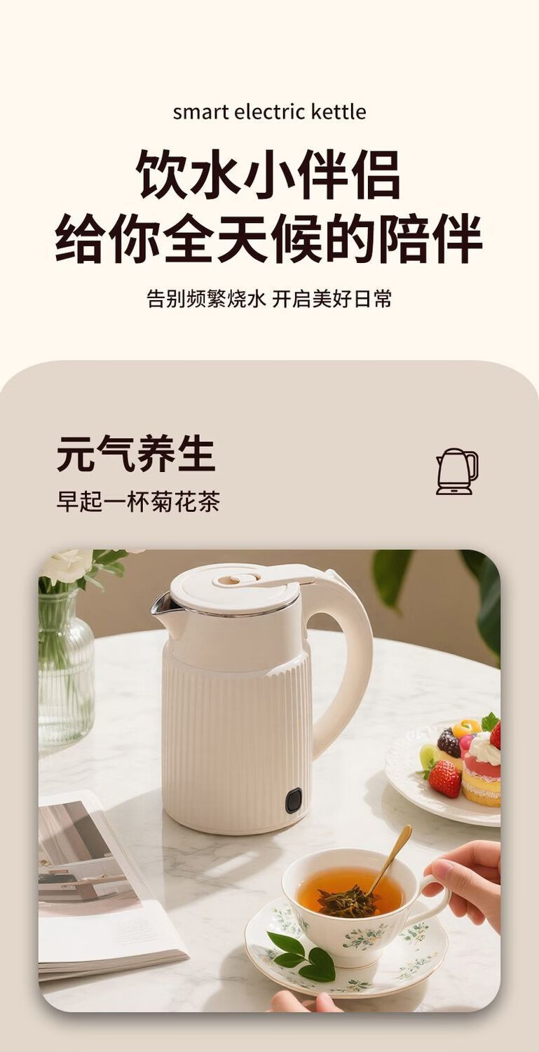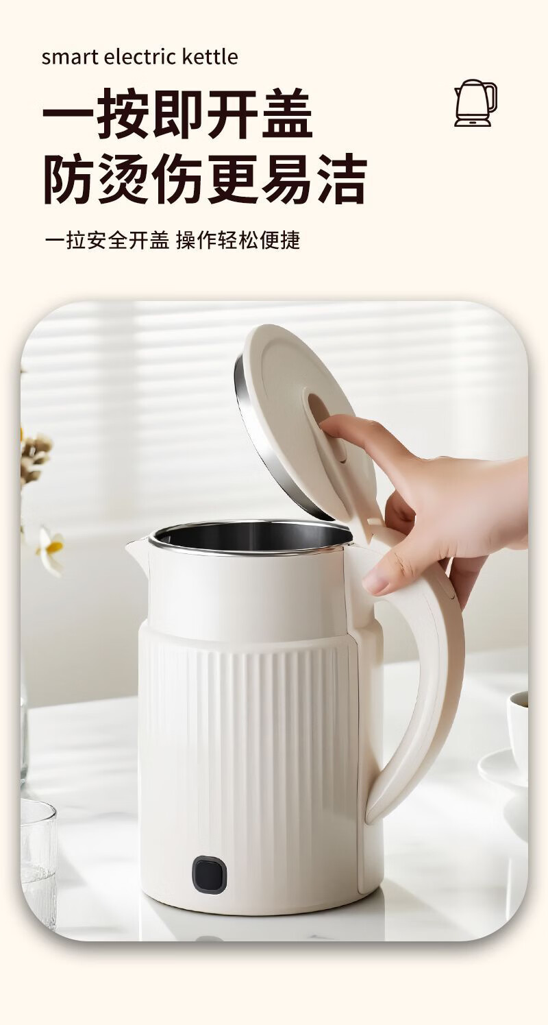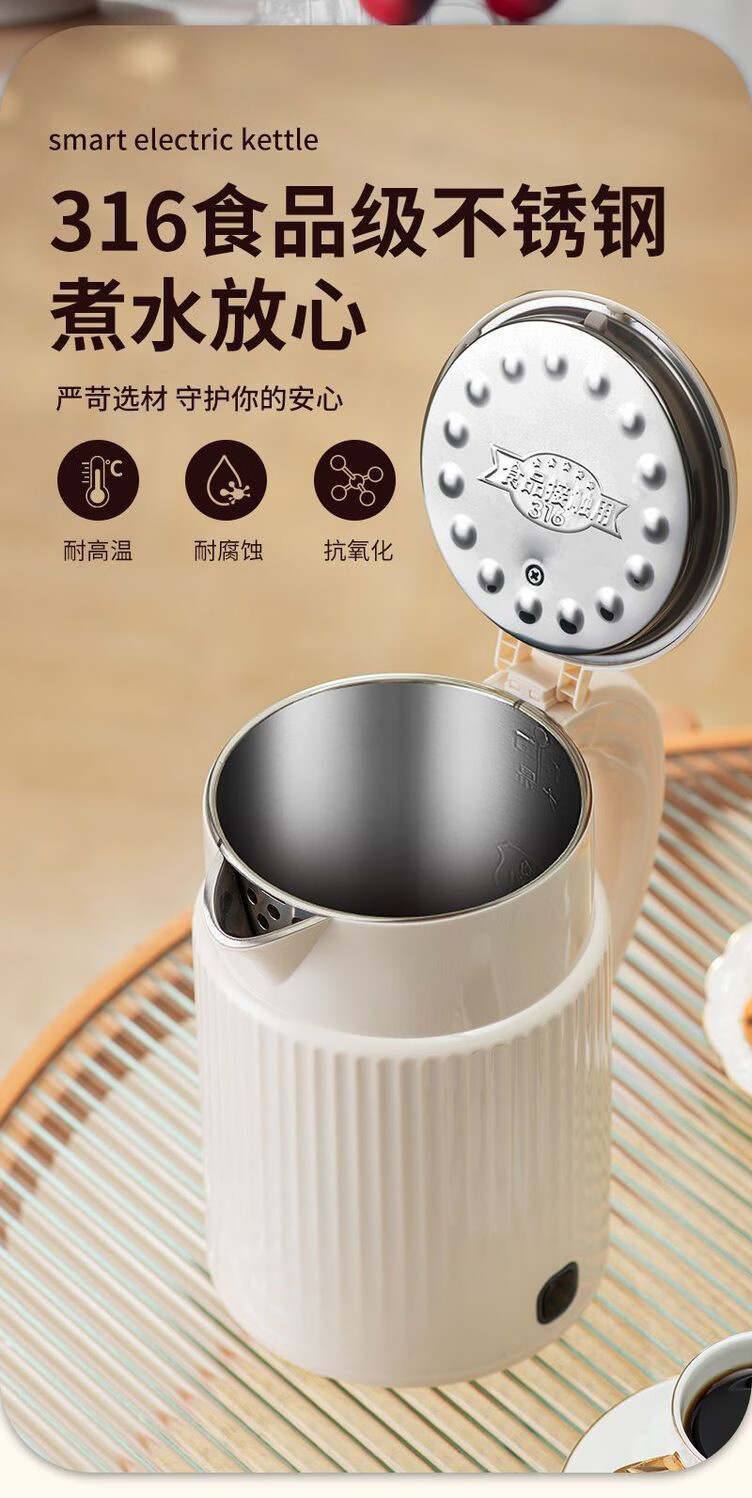KITCHOICE316不锈钢热水壶电水壶热水壶 大容量家用烧水壶 双层防烫 2.0L大容量电水壶 2L 【316不锈钢内胆加厚】2.0L-蓝灯智能恒温