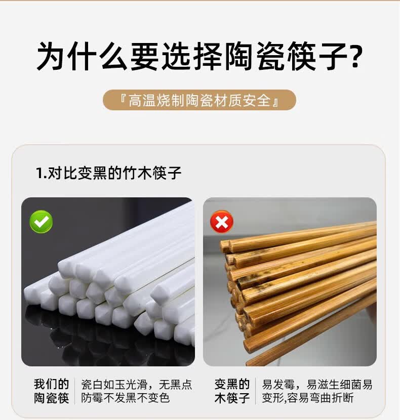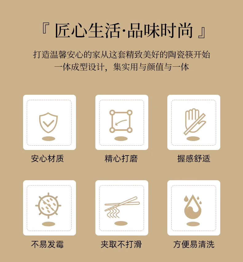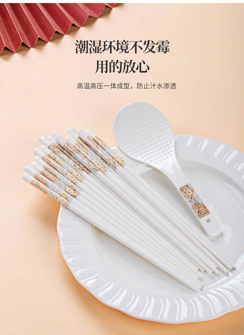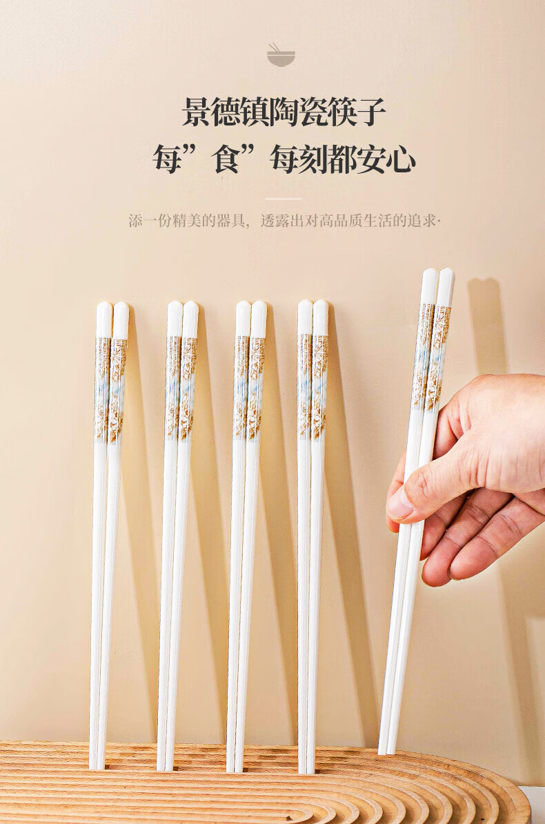 梵创景德镇正宗陶瓷筷子10双家用高档抗菌防霉中式防滑耐高温健康餐具 【礼盒装】时光漫步陶瓷筷子10双
