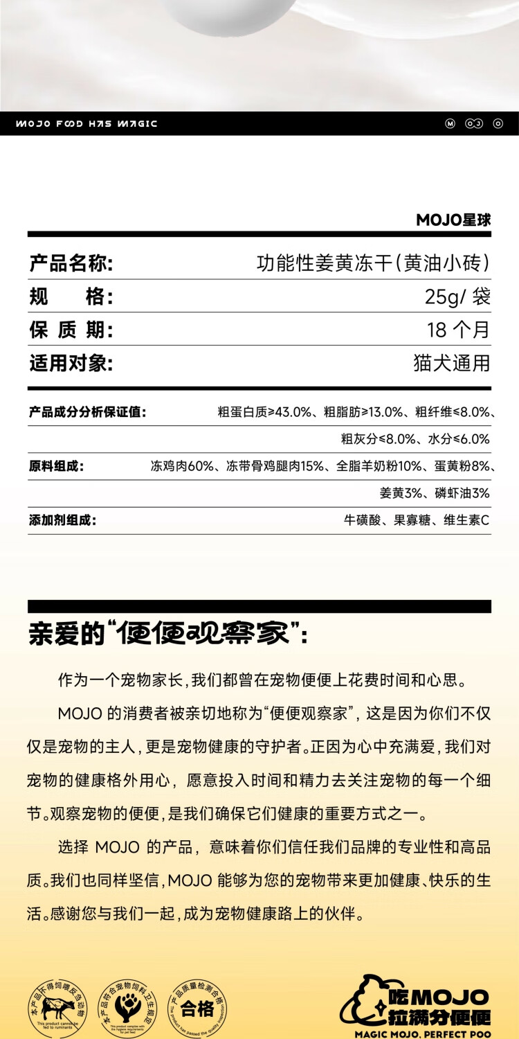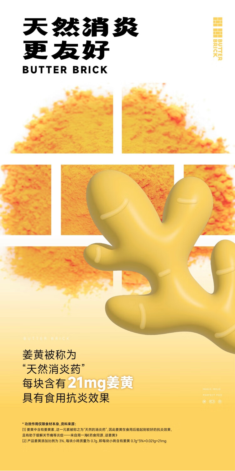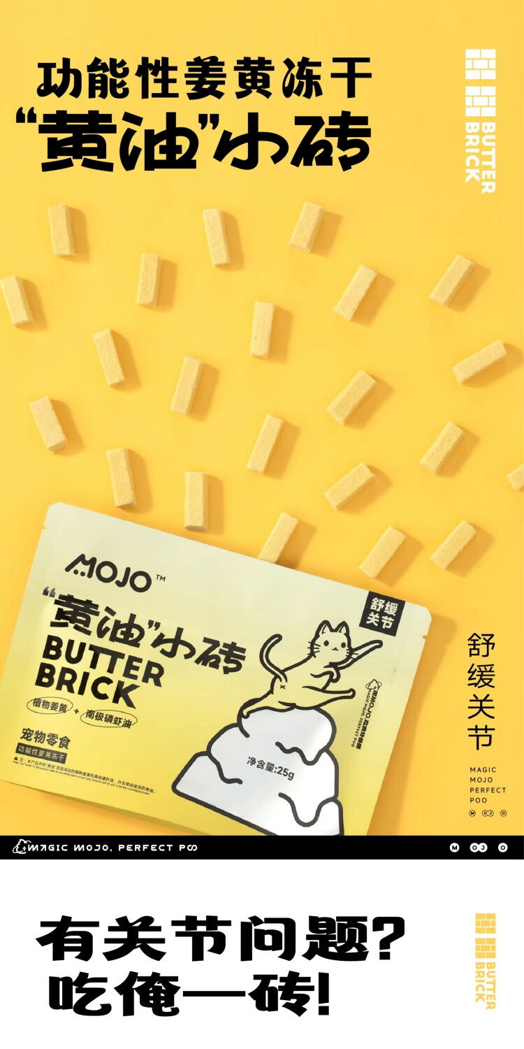 魔球姜黄呵护肝脏关节黄油小砖冻干健康猫狗通用免疫炎易消化零食奖励 【姜黄舒缓关节】黄油小砖x1包