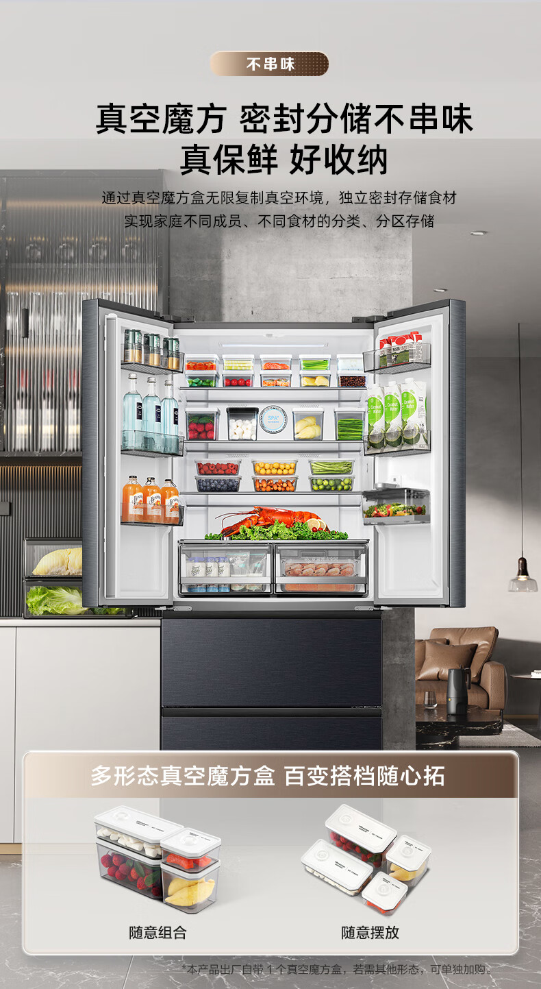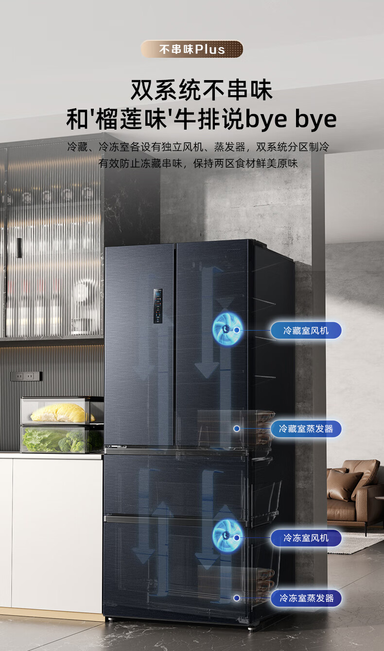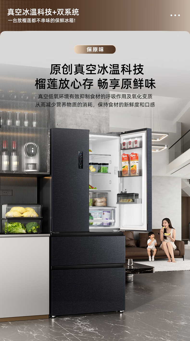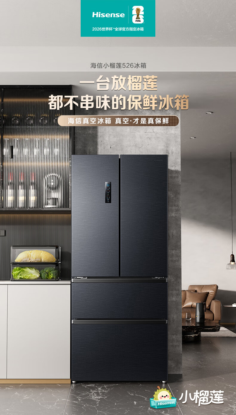 海信小榴莲526L法式多门冰箱真空保鲜双系统大容量一级能效净味风冷灰色BCD-526V4FNKQD国家补贴