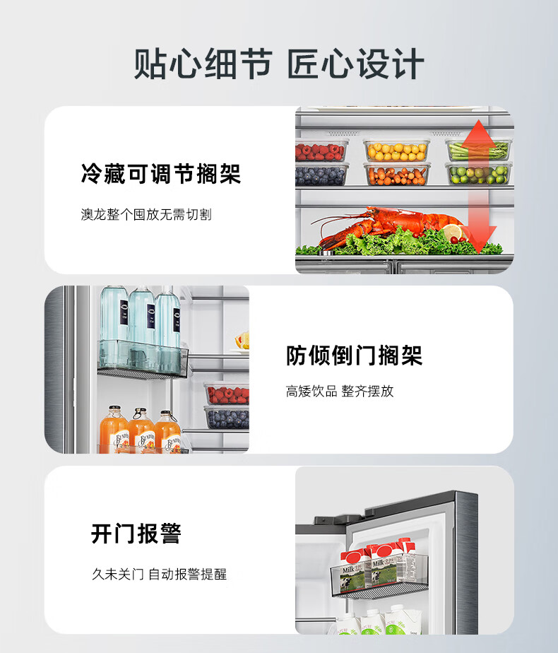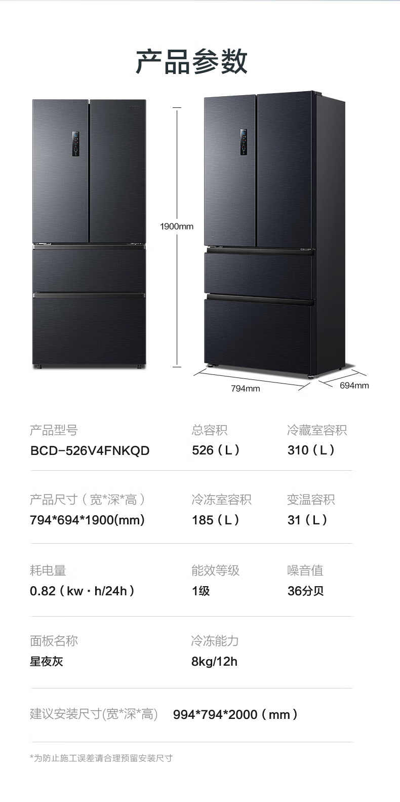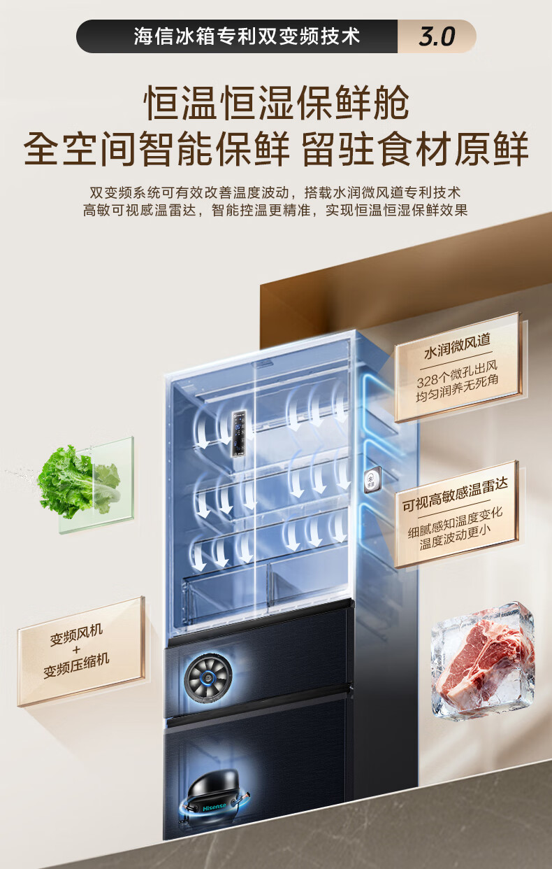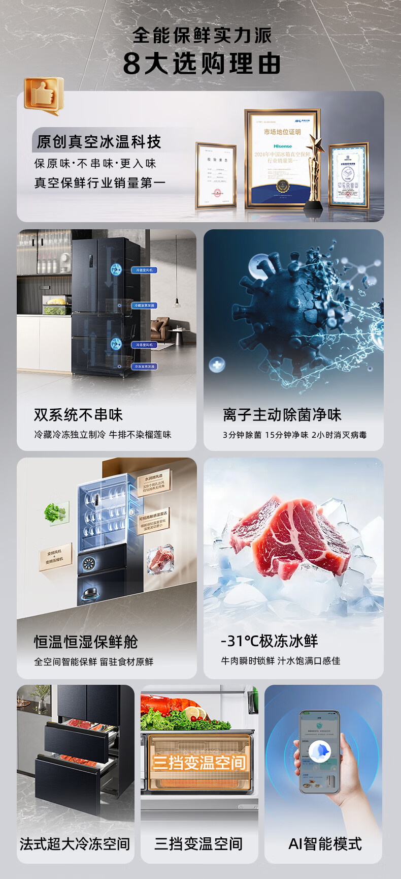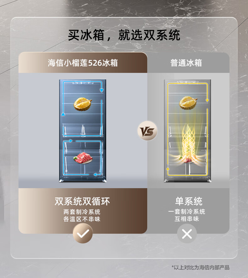 海信小榴莲526L法式多门冰箱真空保鲜双系统大容量一级能效净味风冷灰色BCD-526V4FNKQD国家补贴