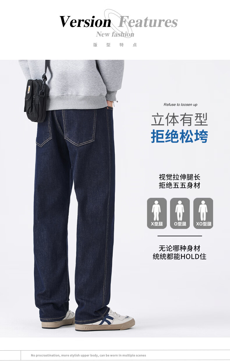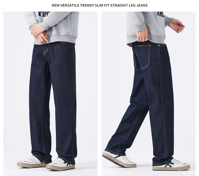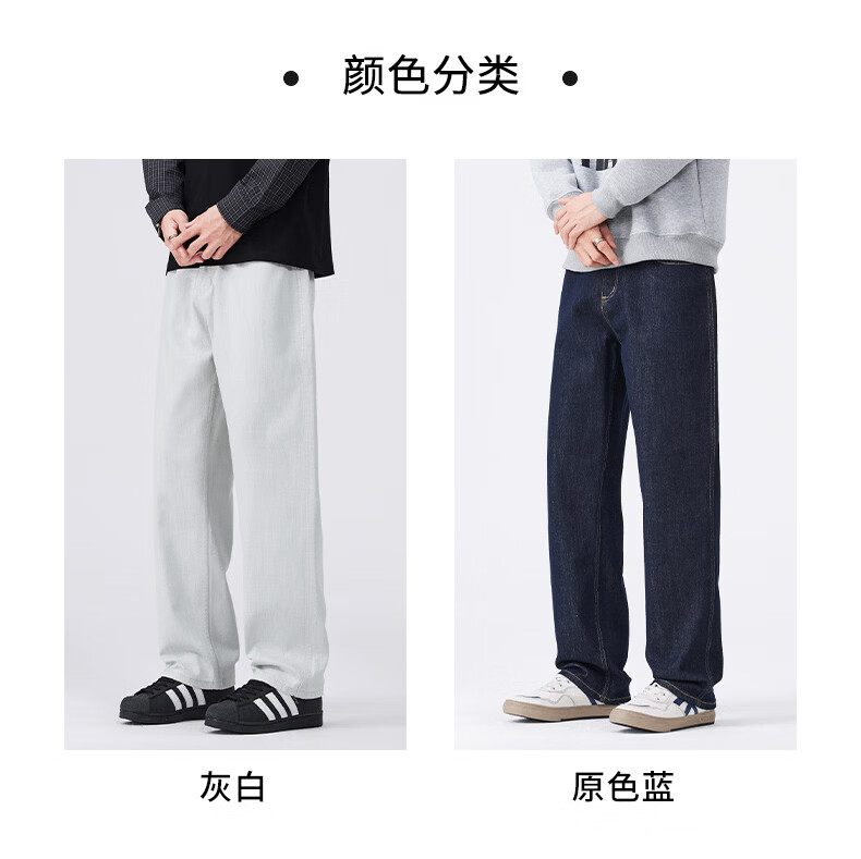 真维斯原色牛仔裤男春秋季复古直筒裤男新款潮牌百搭舒适弹力长裤男 原色蓝 28