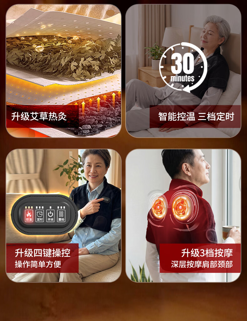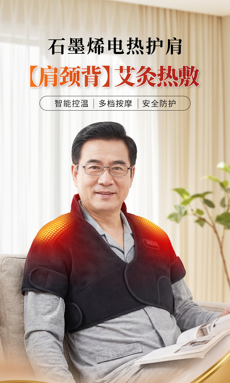 盛坤石墨烯护肩保暖肩周炎按摩器理仪肩膀电加热艾灸暖肩颈热敷 【按摩/热敷/艾灸】无线均码-黑色
