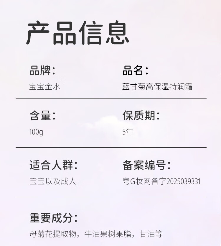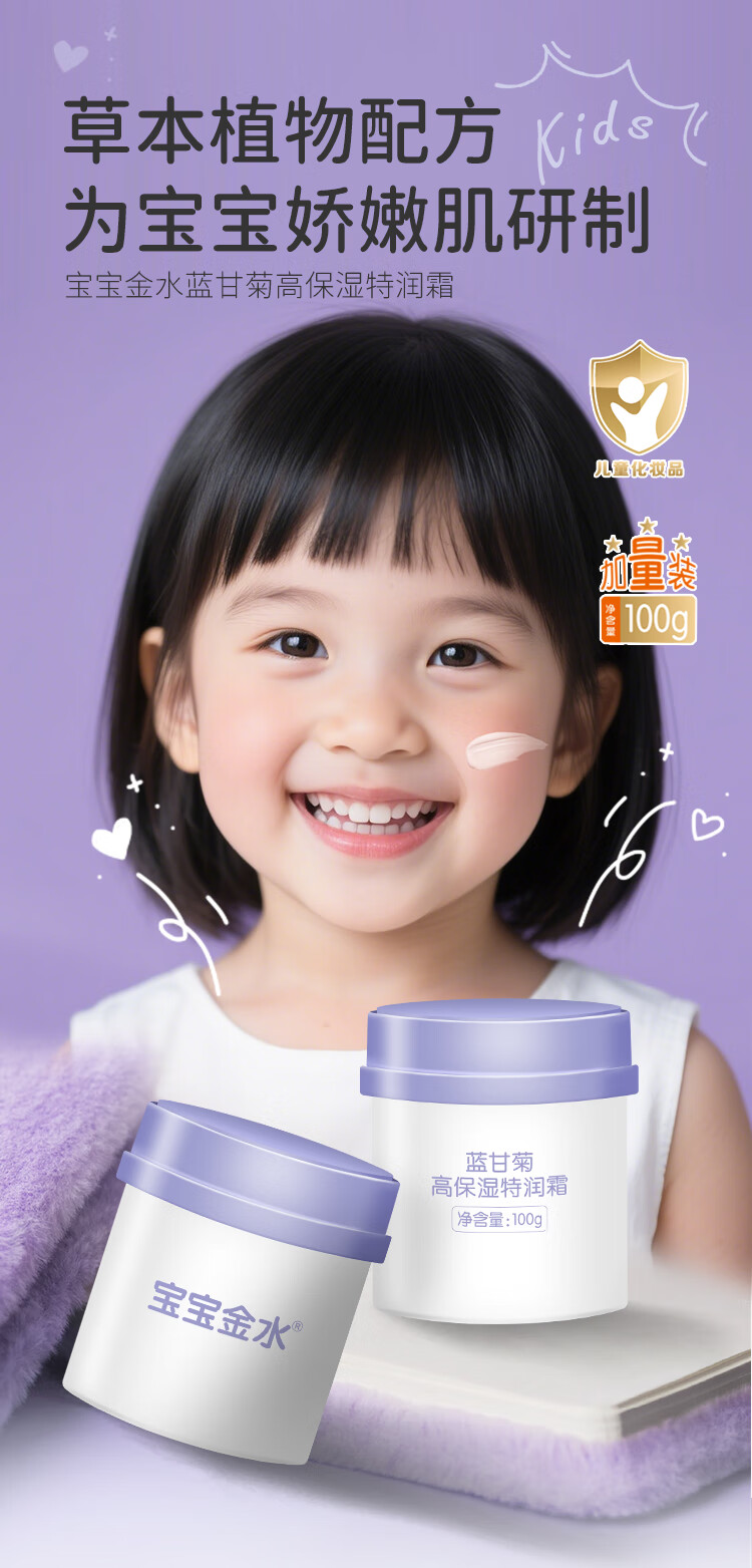 宝宝金水儿童面霜四季高保湿舒缓精华霜蓝甘菊润肤霜润肤乳大容量100g 【高保湿】蓝甘菊特润霜100g
