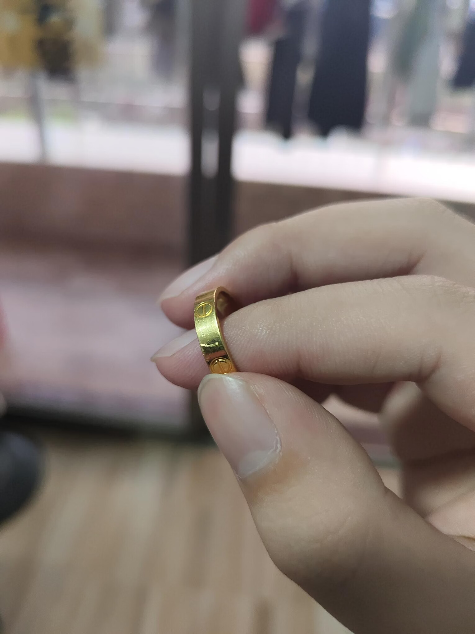 老凰祥百年古法工艺金包银戒指轻奢款古法素圈金包银男女对戒港码 港码8号 精致加厚加宽款