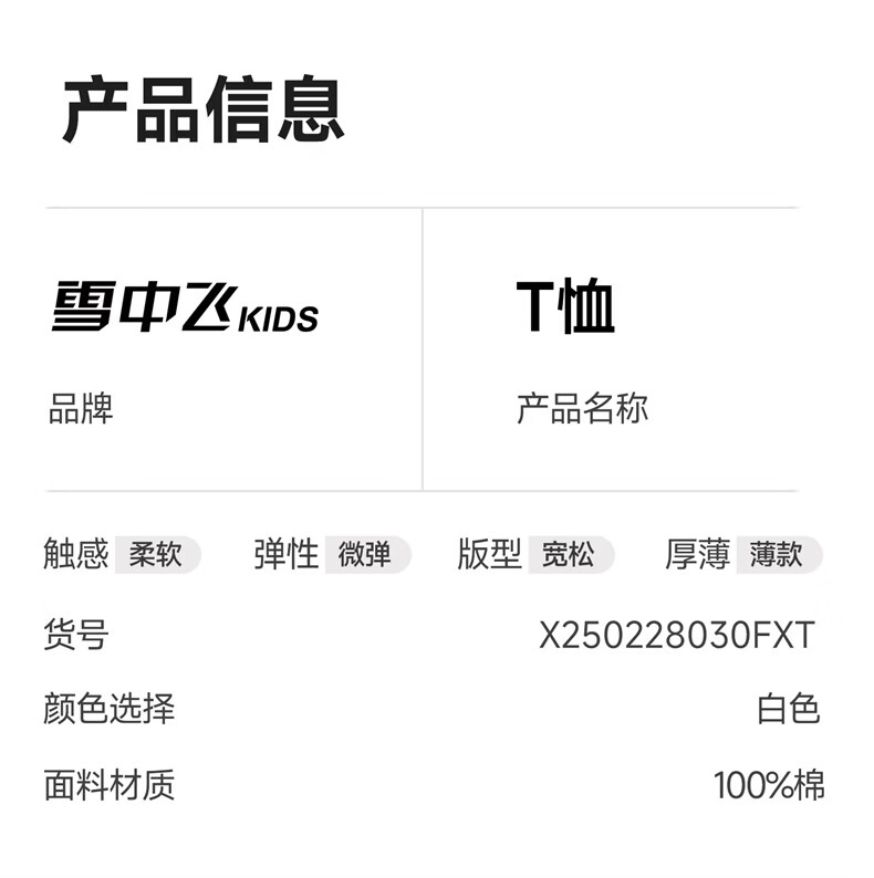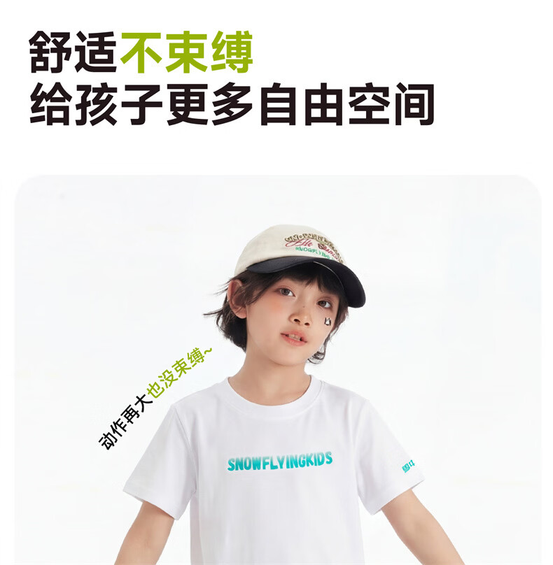 雪中飞童装女童T恤短袖纯棉儿童夏装上衣2026新款男童白色短袖T恤 白色 160