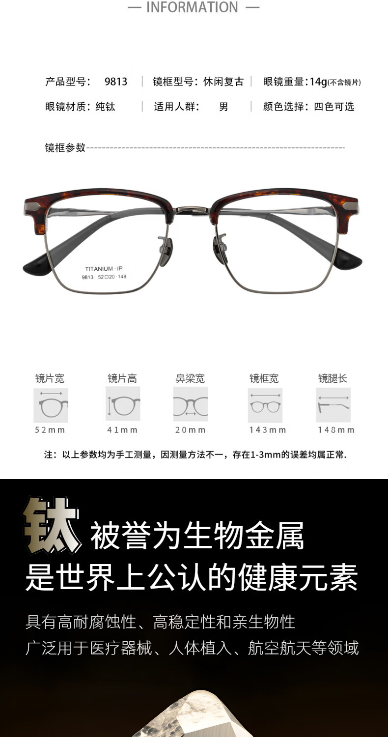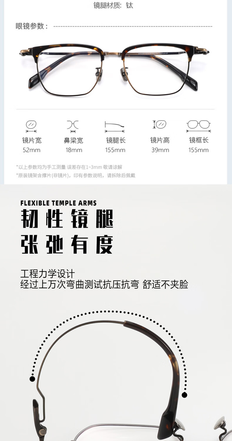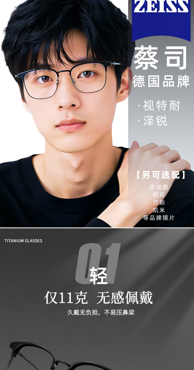 目戲(EYEPLAY)近视眼镜架可配凯米镜片蔡司钻立方防蓝光片眼镜男轻盈眼镜 1022BKY-C3黑色 【仅镜框-宝岛精选/品质保障】
