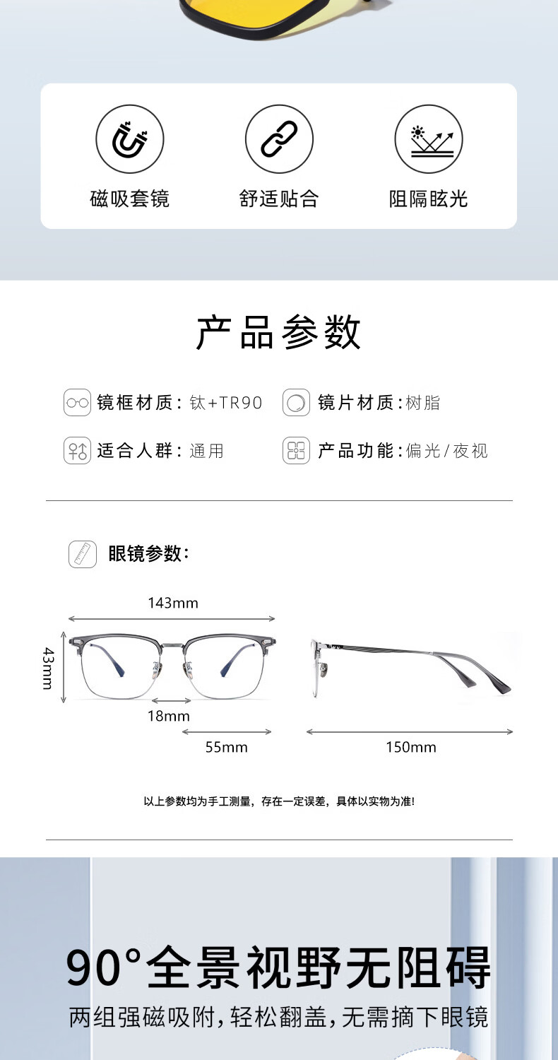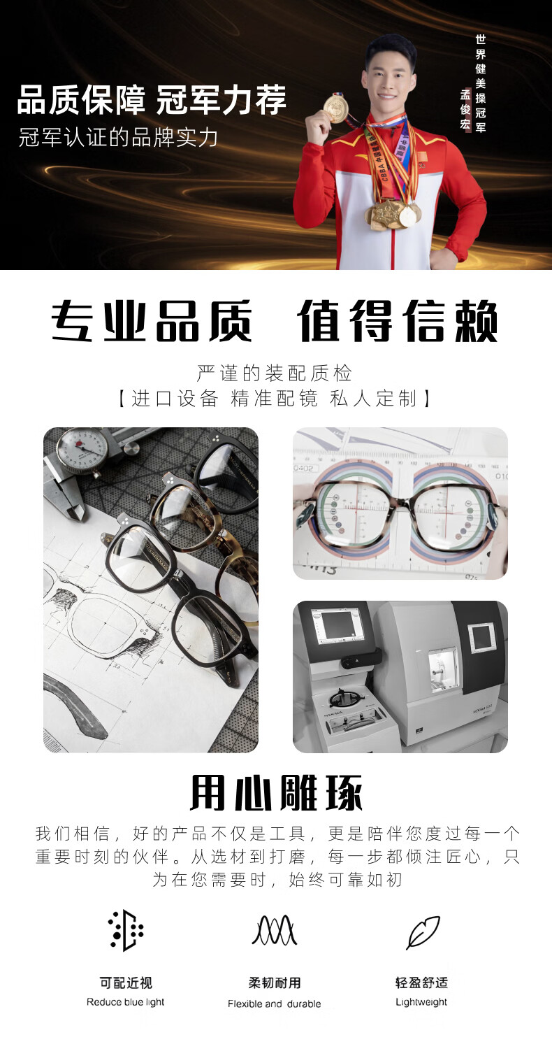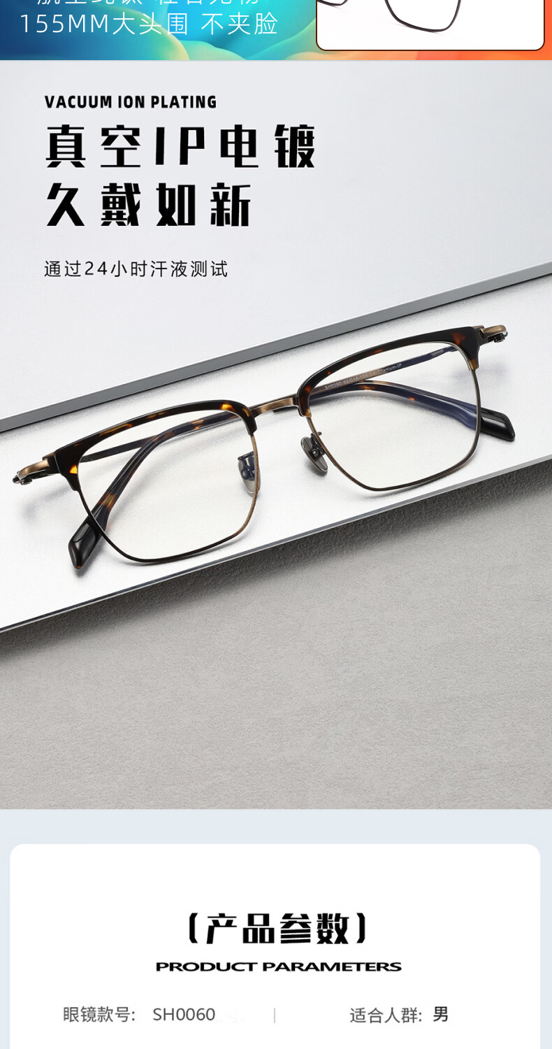 目戲(EYEPLAY)近视眼镜架可配凯米镜片蔡司钻立方防蓝光片眼镜男轻盈眼镜 1022BKY-C3黑色 【仅镜框-宝岛精选/品质保障】