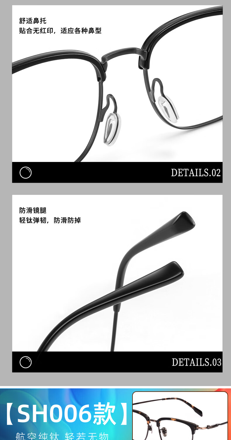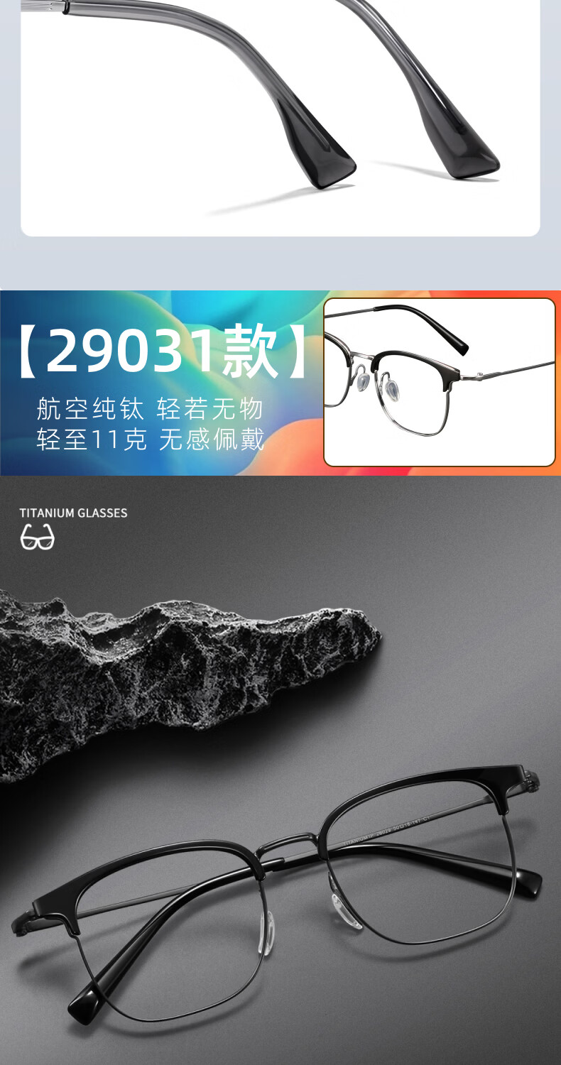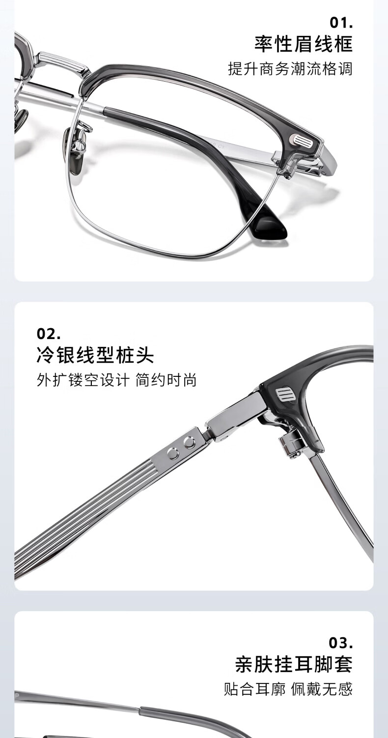 艾瑞奥专业配近视眼镜男女防蓝光散光防雾变色半框眉线框眉毛架纯钛镜架 升级【纯钛】镜框-黑银色-8899(三合一) 配【防蓝光抗辐射】500度以内-1.60折射率