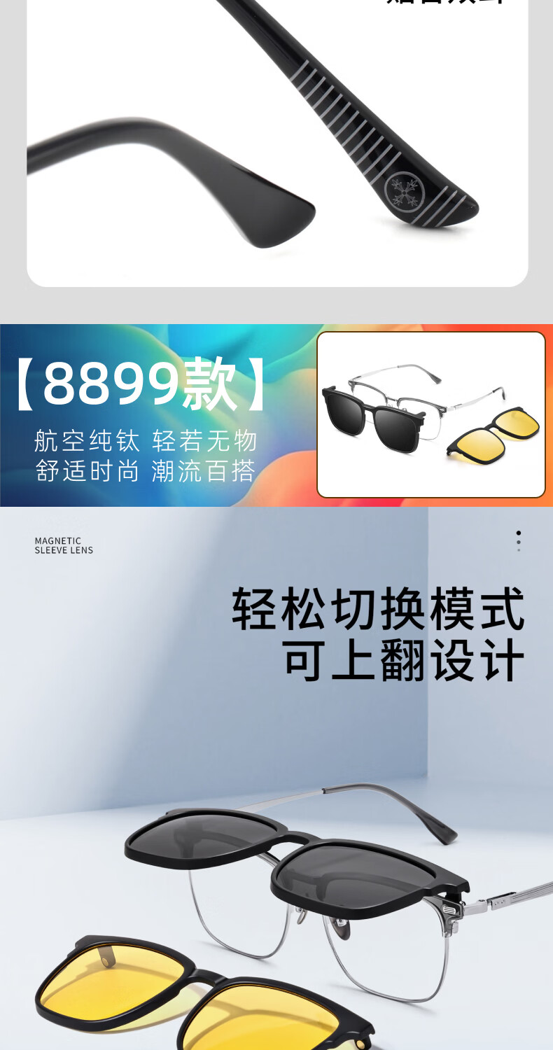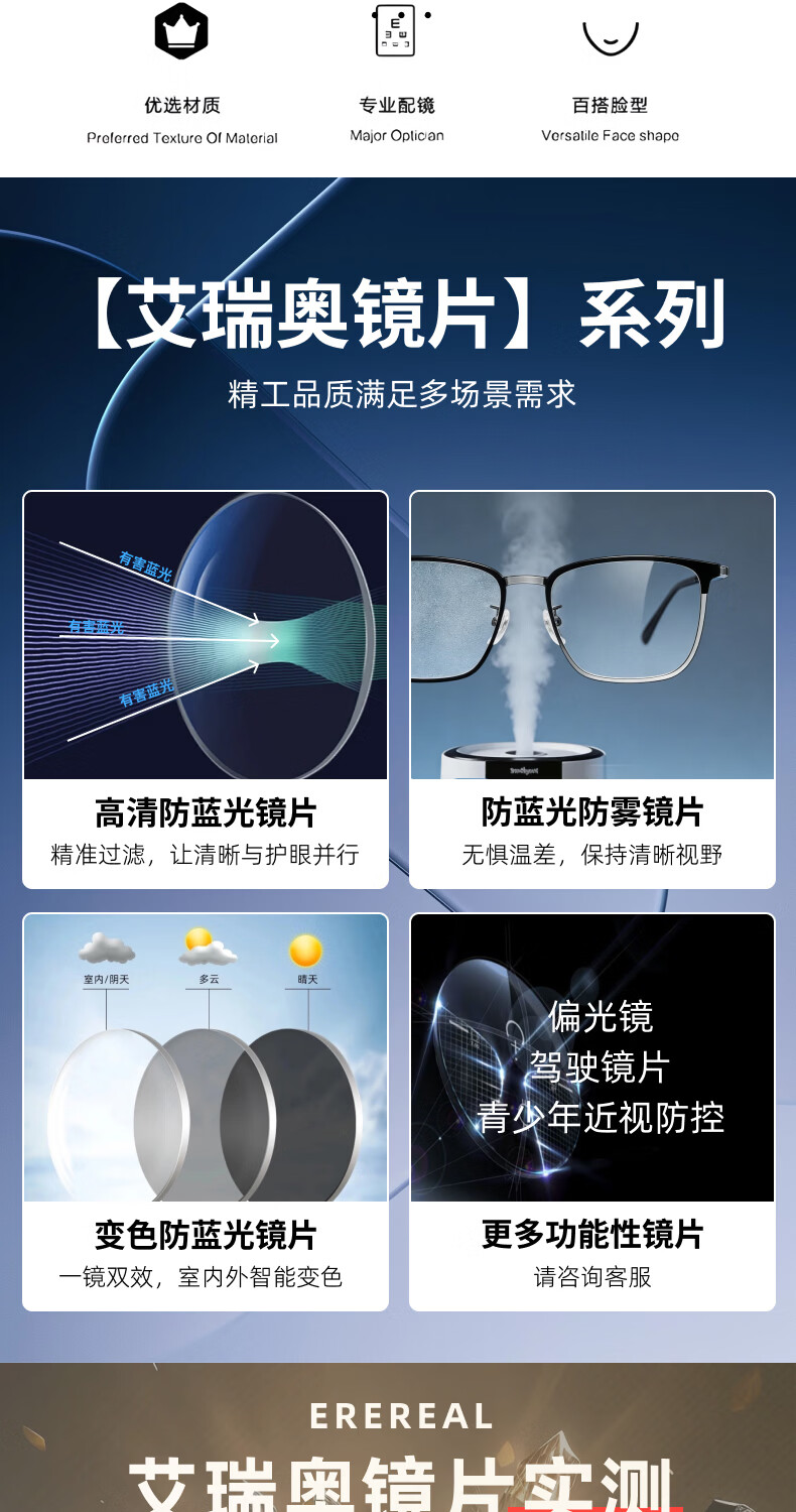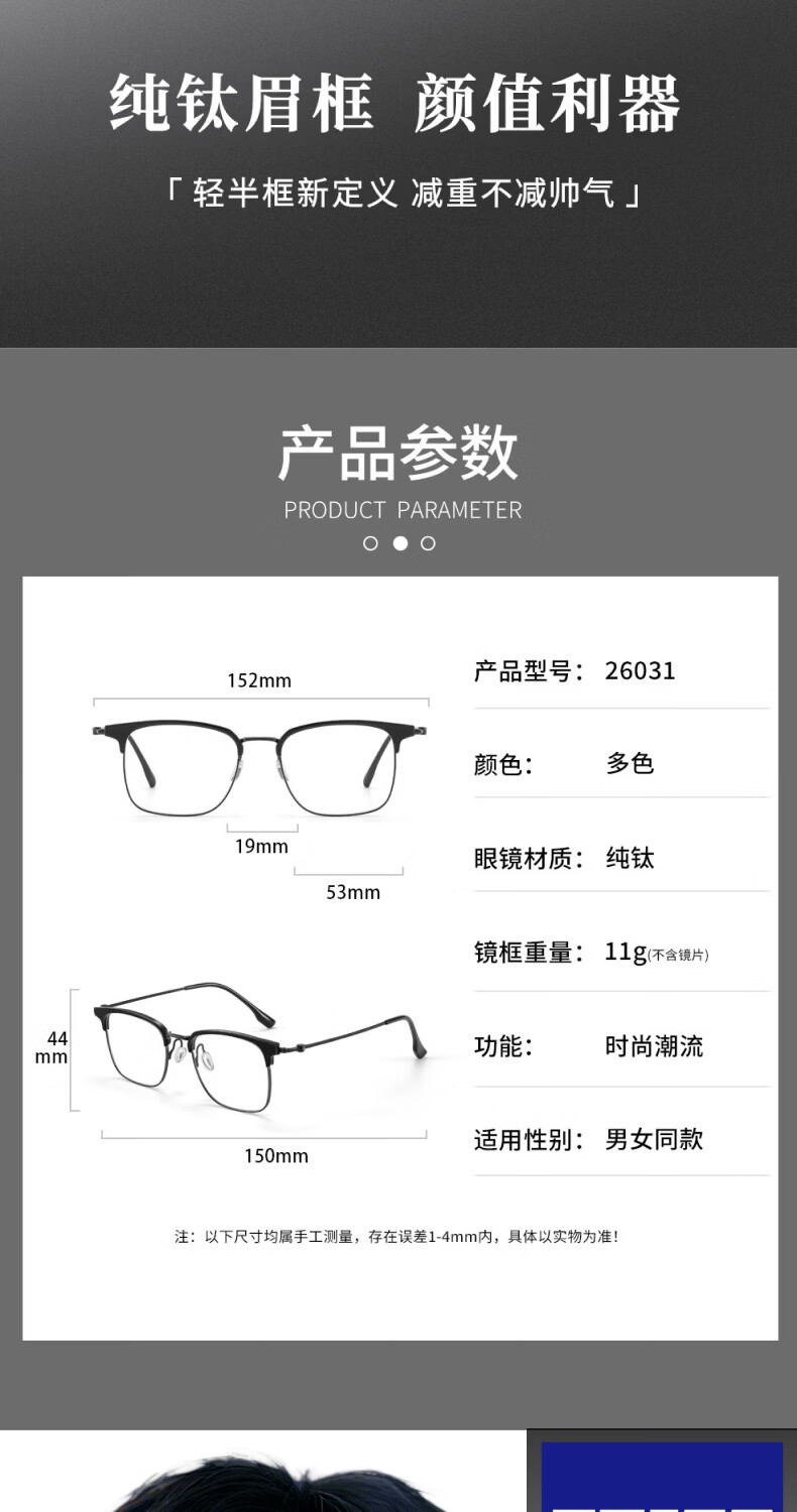 艾瑞奥专业配近视眼镜男女防蓝光散光防雾变色半框眉线框眉毛架纯钛镜架 升级【纯钛】镜框-黑银色-8899(三合一) 配【防蓝光抗辐射】500度以内-1.60折射率