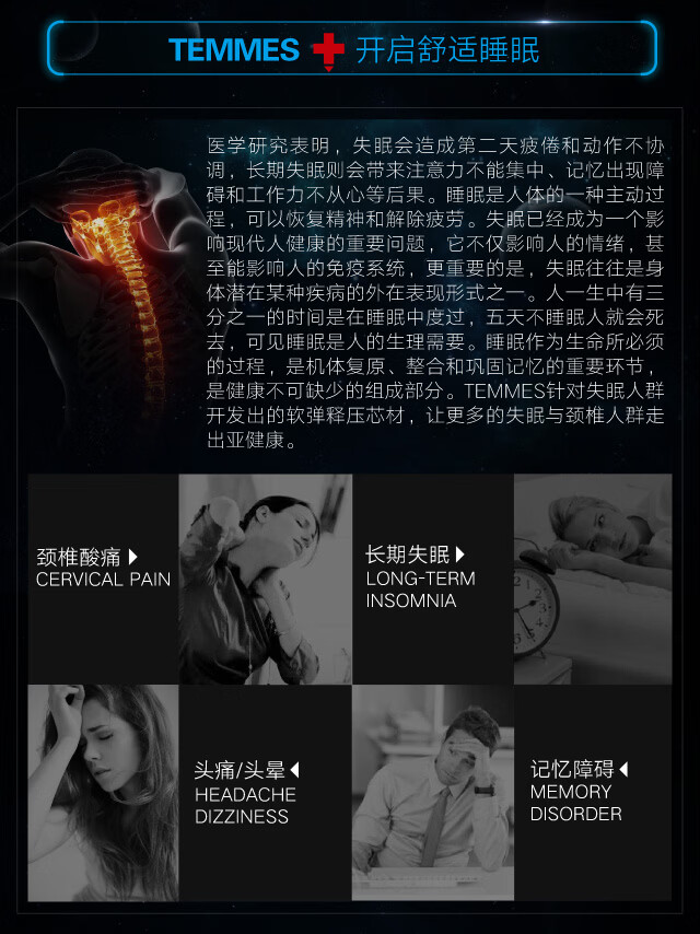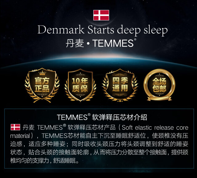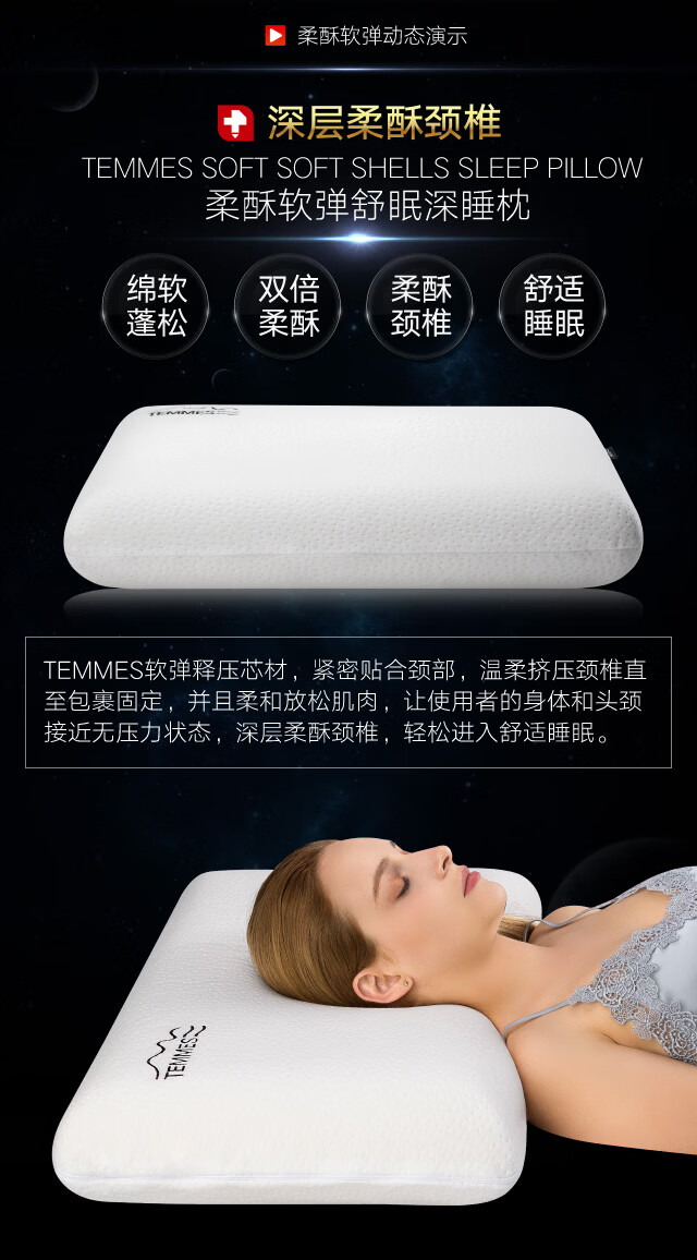 TEMMES 丹麦泰梅斯 枕头颈椎枕睡眠慢回弹睡觉专用记忆棉枕头芯 莱赛尔舒柔肌感枕套 单只 软弹释压芯材