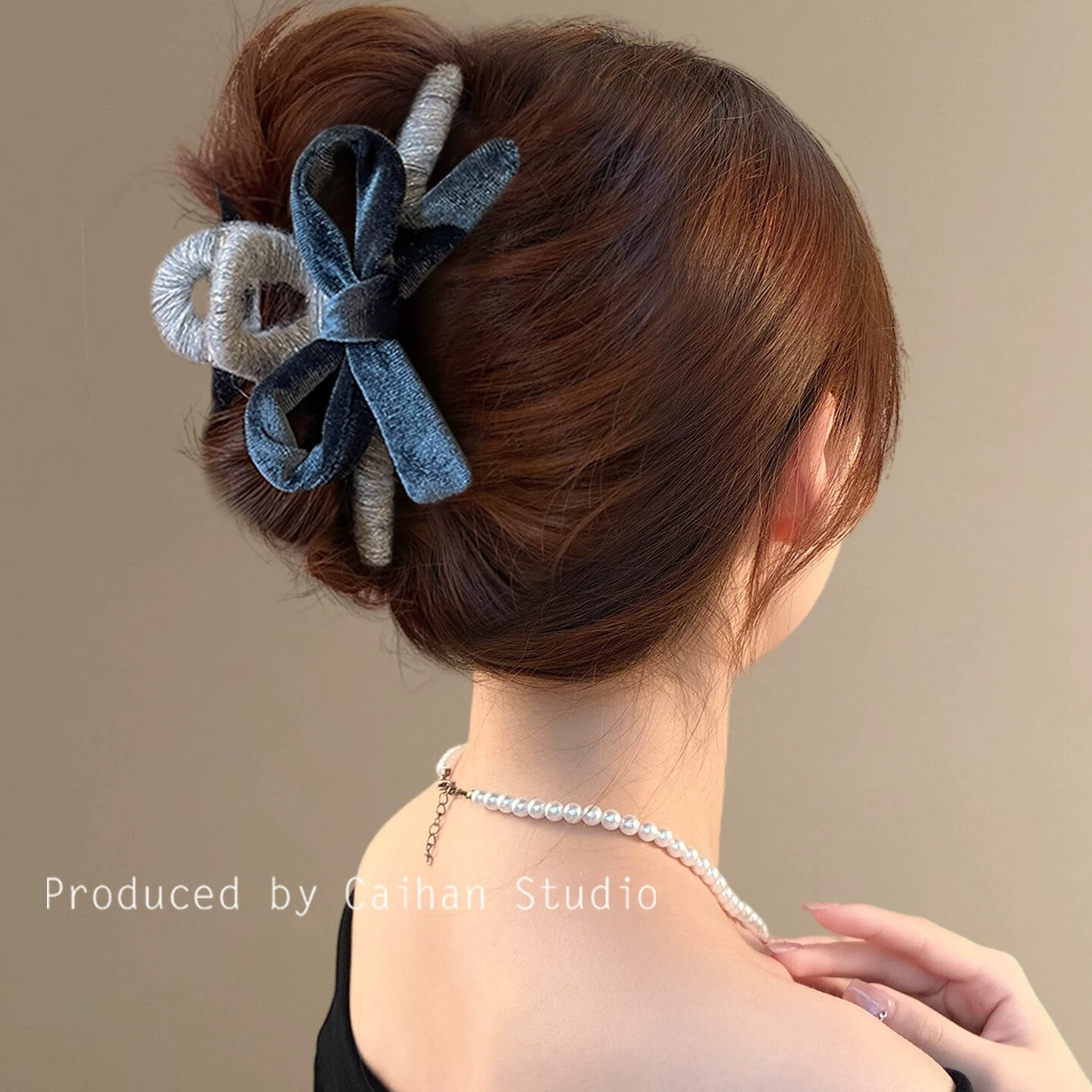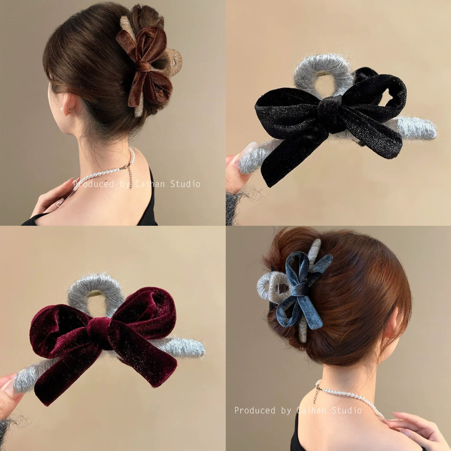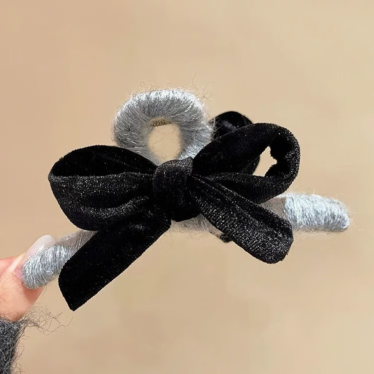 黑色丝绒蝴蝶结抓夹女气质后脑勺鲨鱼夹2025新款高级感发夹子头饰 2个#酒红+蓝色