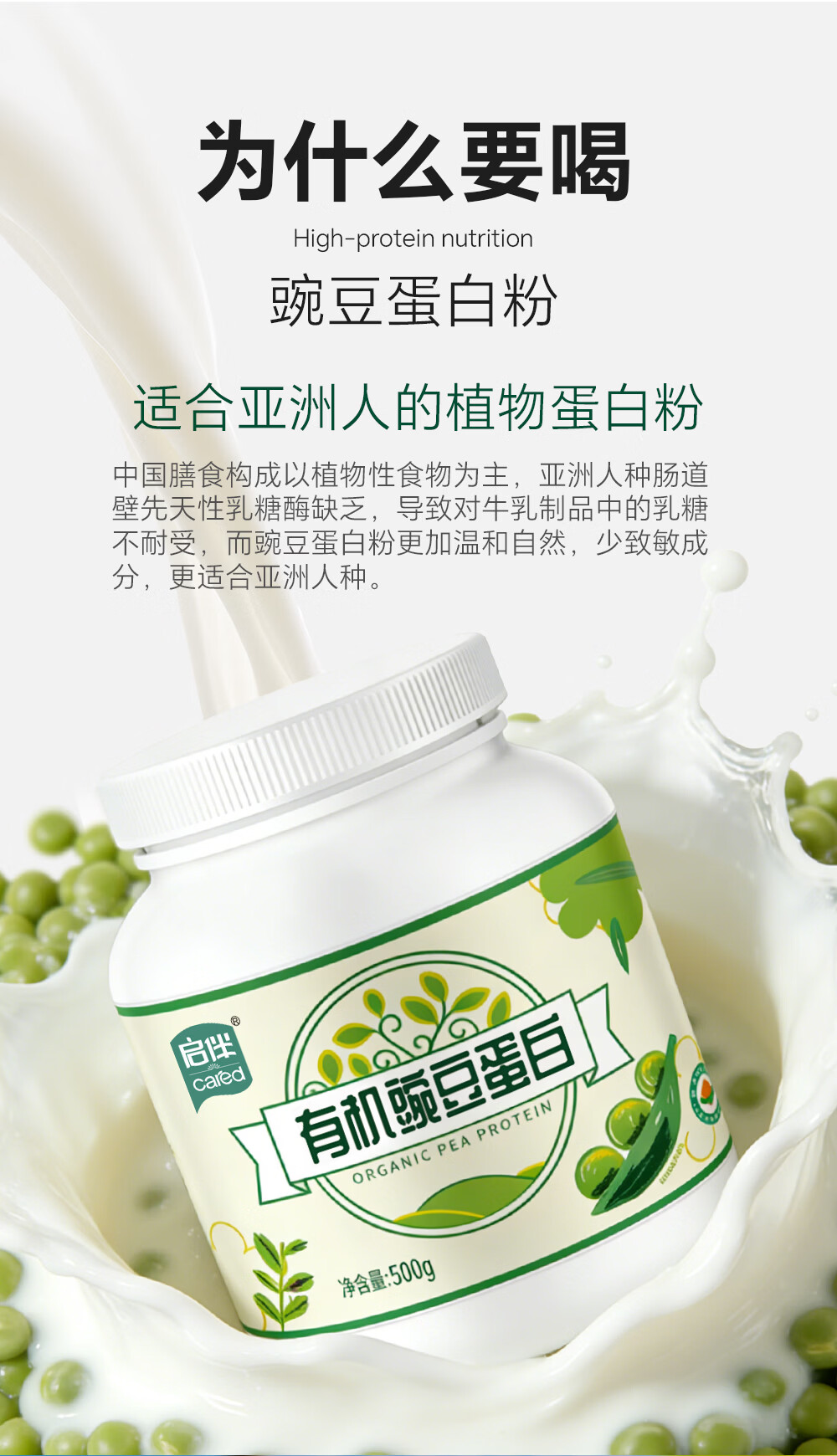 启伴有机豌豆蛋白粉青少年植物蛋白粉养生健康0糖0脂0胆固醇无过敏原 有机豌豆蛋白粉 500g*1罐