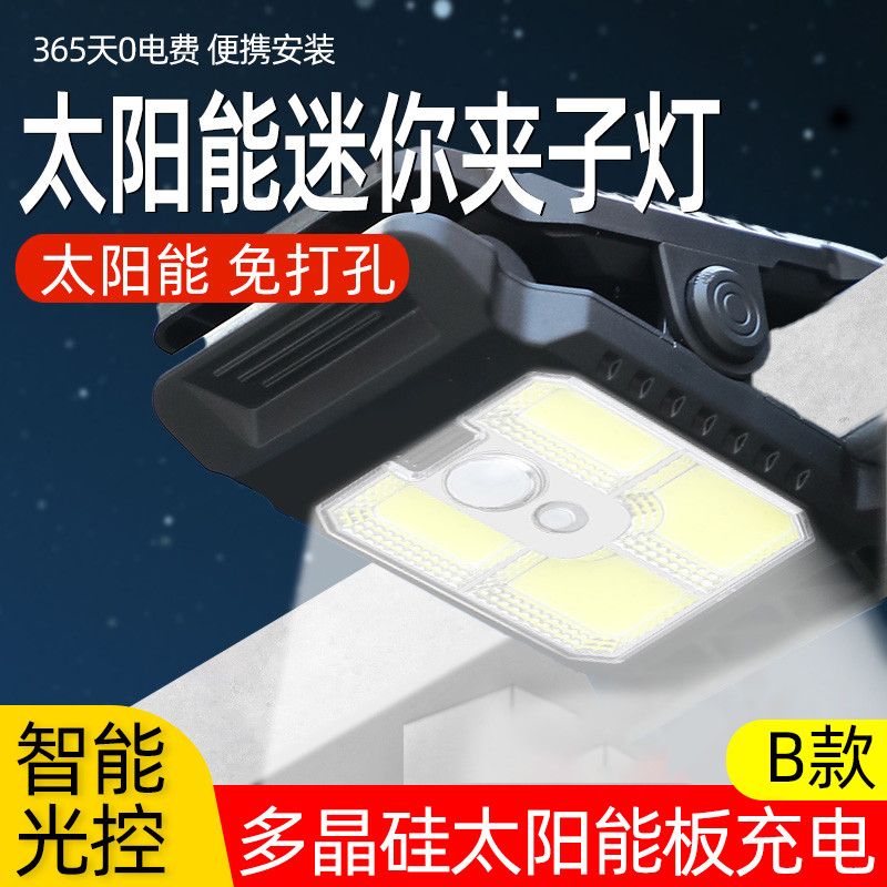 迷你太阳能夹子灯围栏夹子灯壁灯家用防水人体感应超亮照明路灯 一个-盒装 无规格