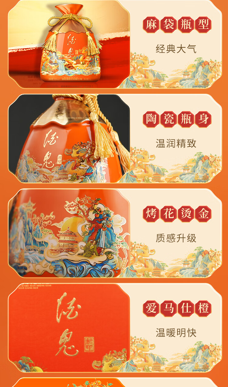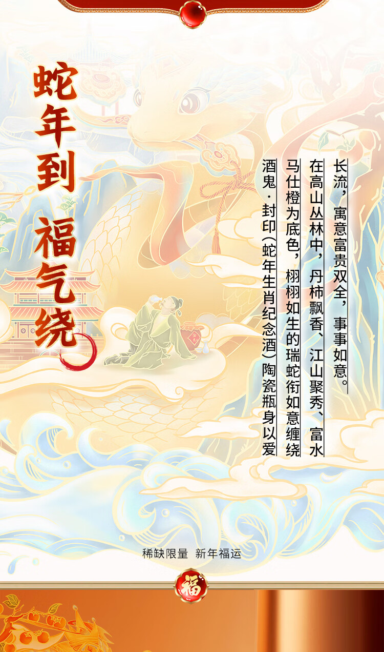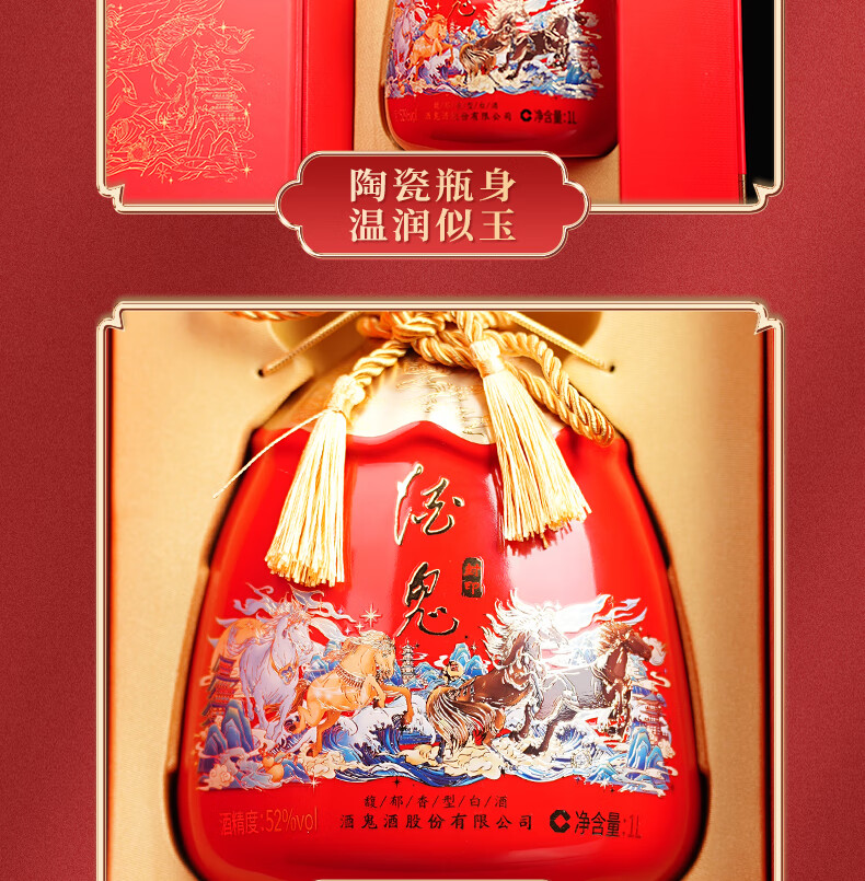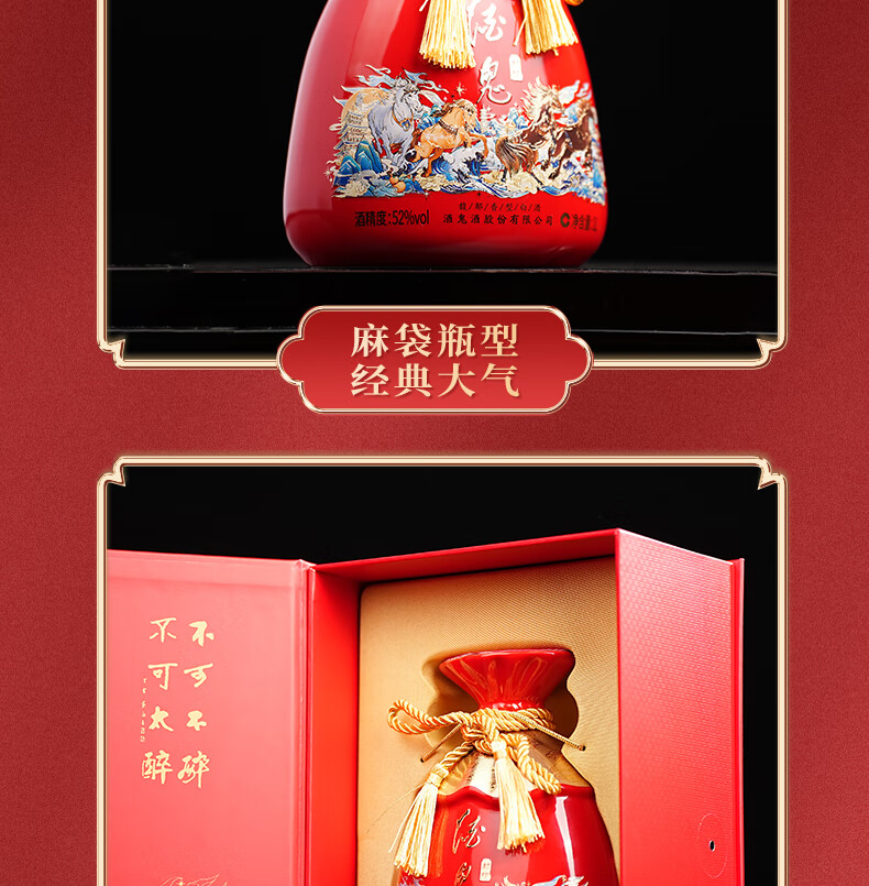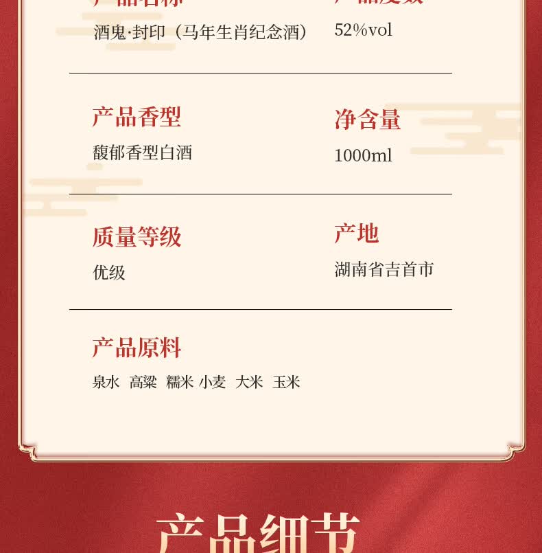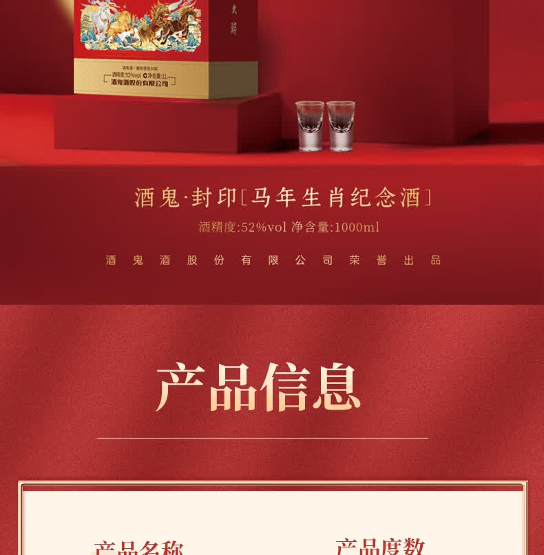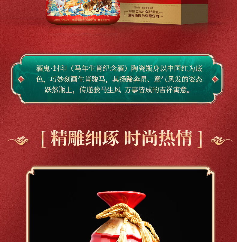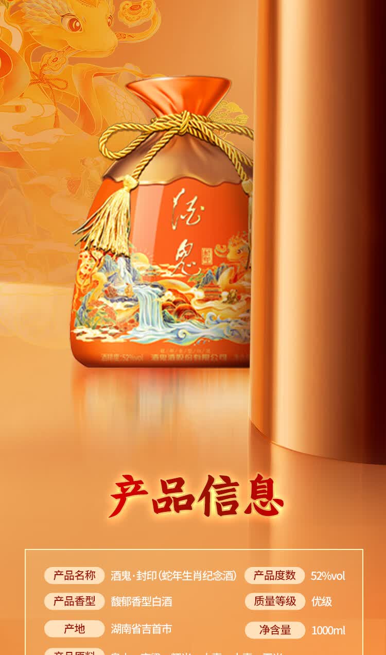 酒鬼封印 生肖限量版 52度馥郁香型高度白酒 礼盒装白酒 52度 1L 1瓶 (龙年生肖)