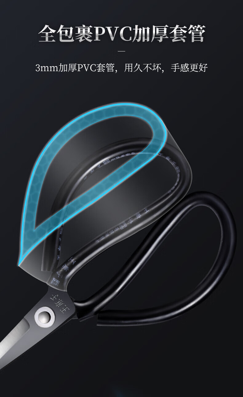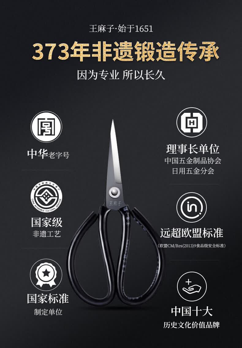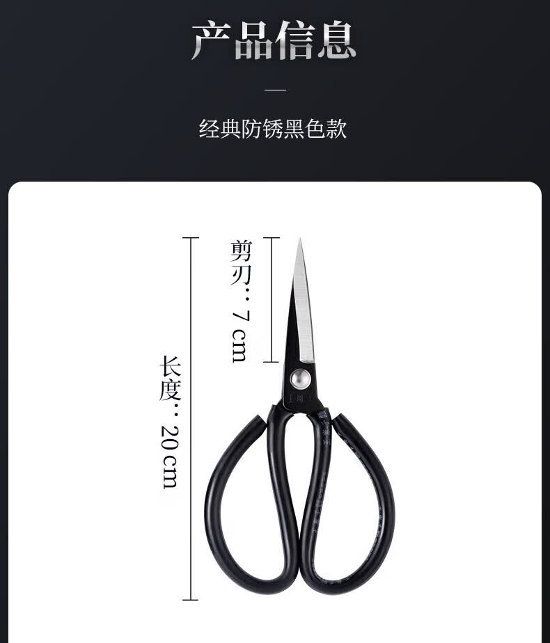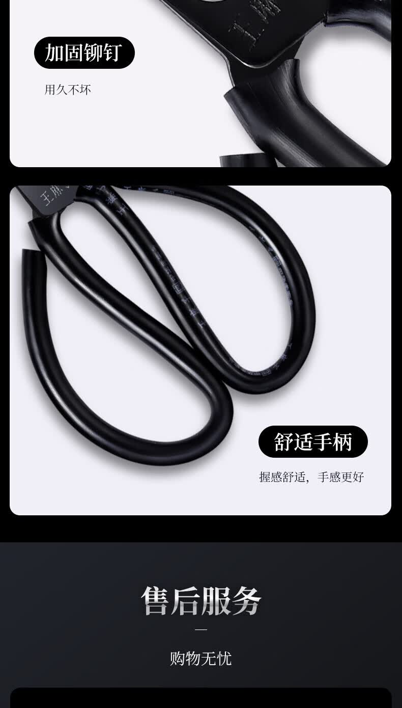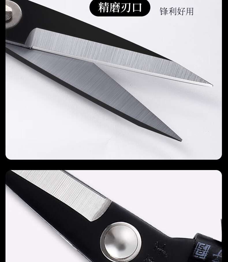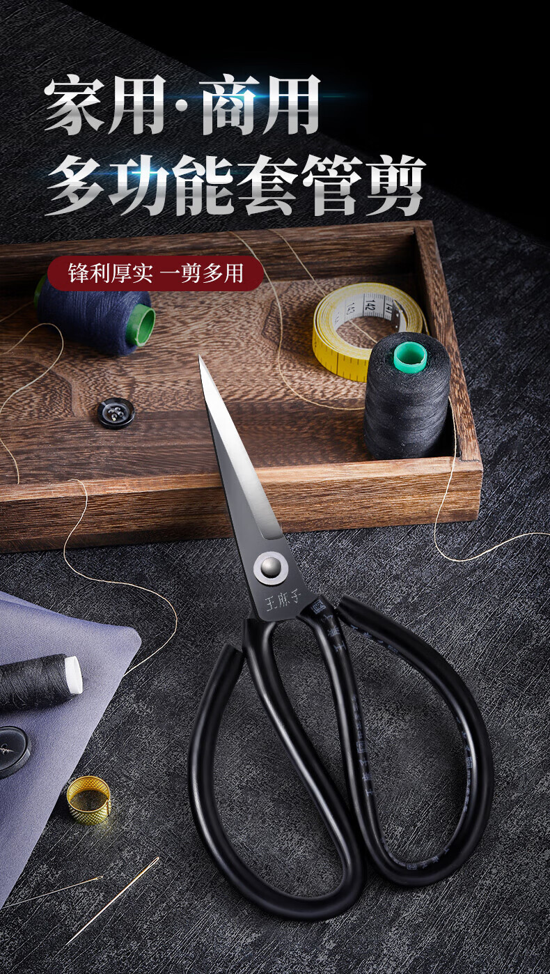 王麻子【优选】办公生活家用剪刀裁缝专用剪刀裁布线头小剪子手工剪纸刀 经典黑色-小号165mm