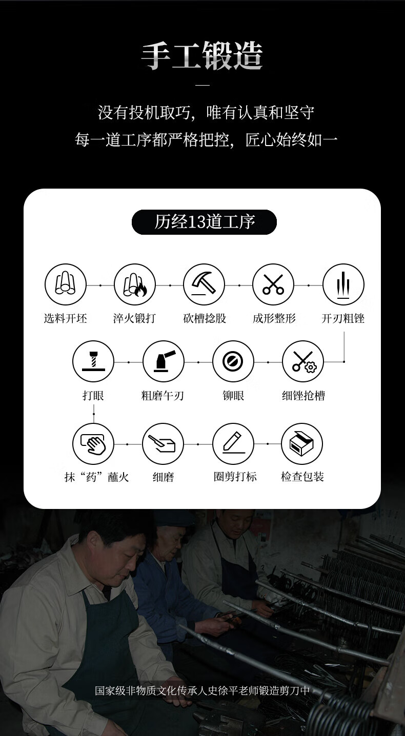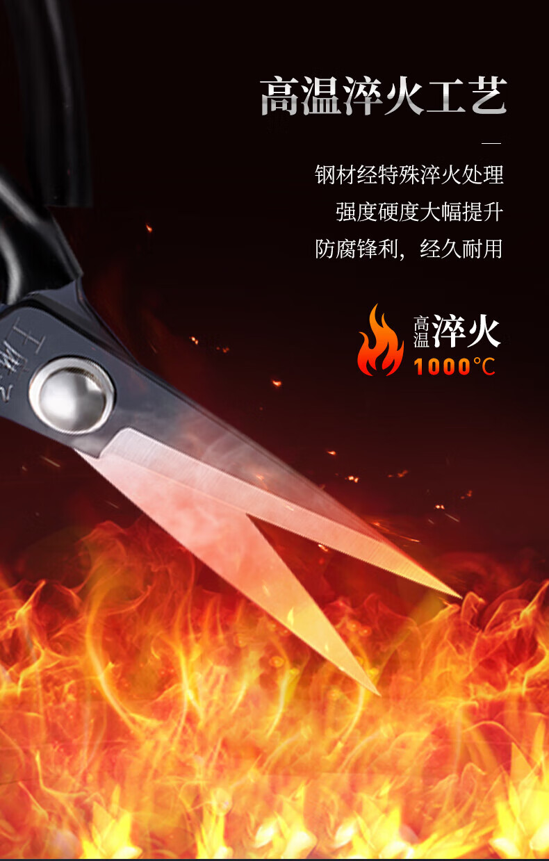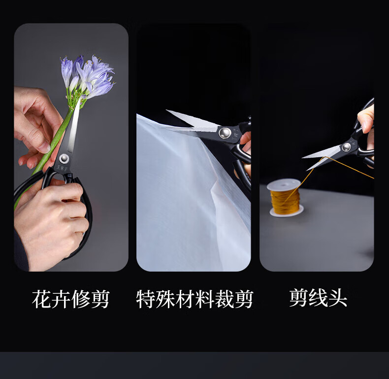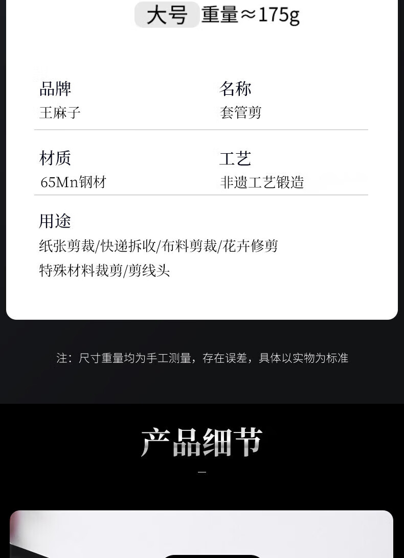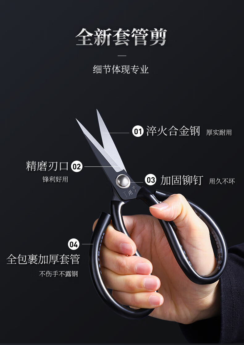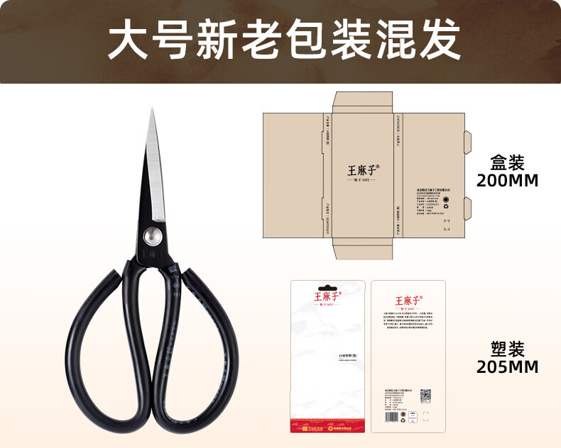 王麻子【优选】办公生活家用剪刀裁缝专用剪刀裁布线头小剪子手工剪纸刀 经典黑色-小号165mm