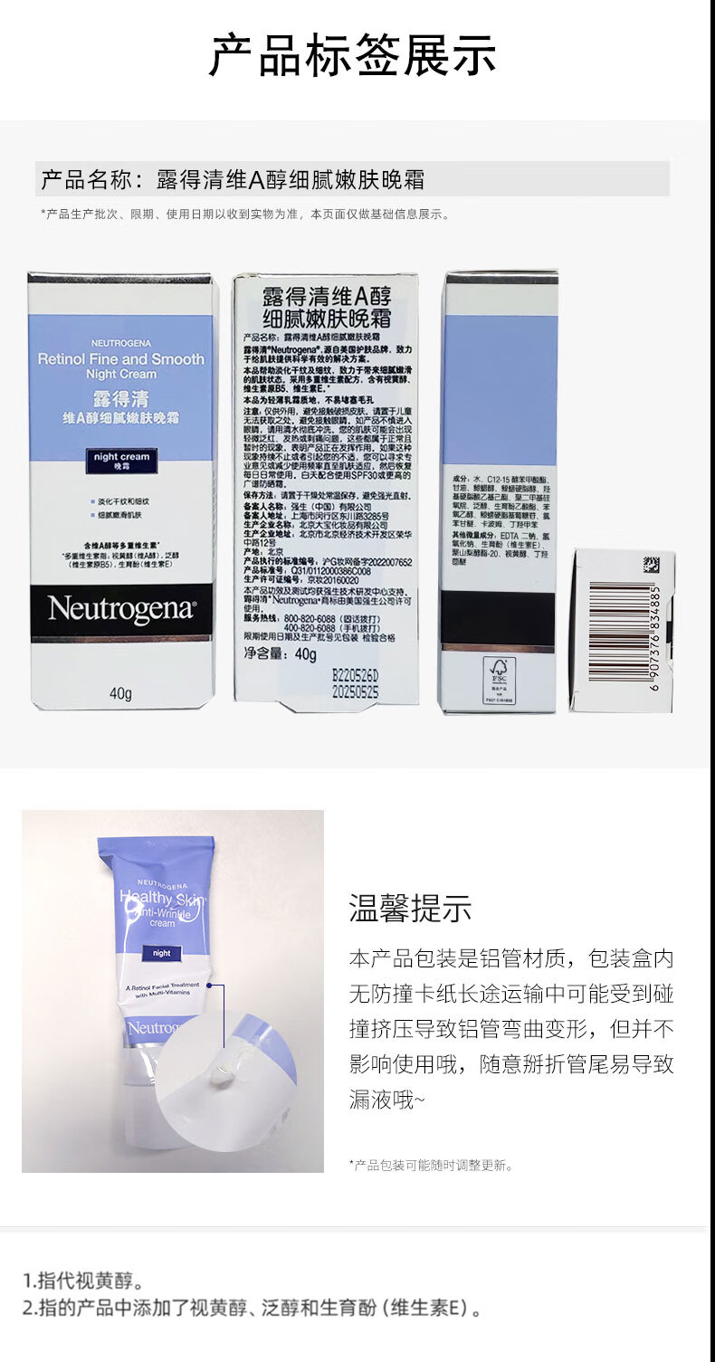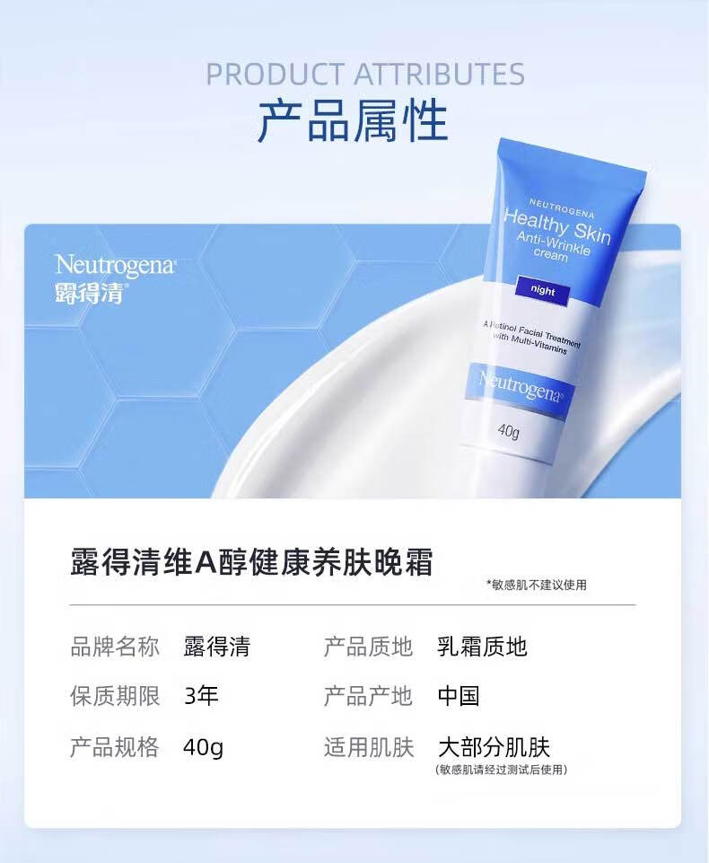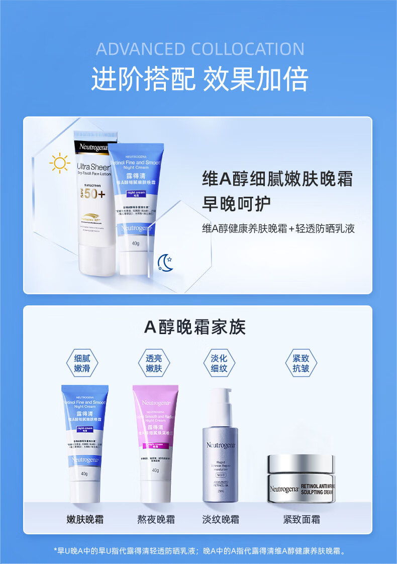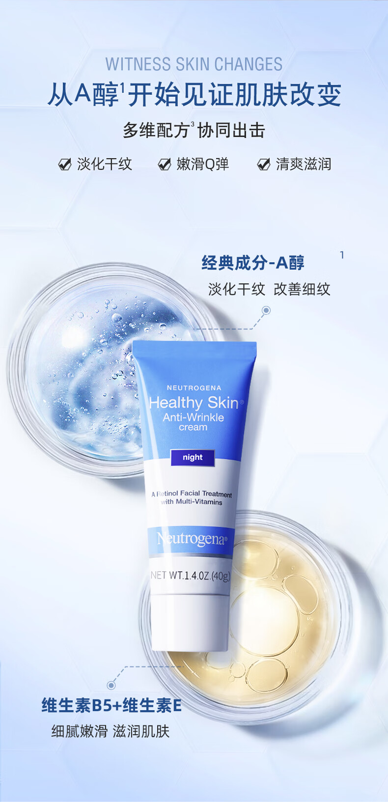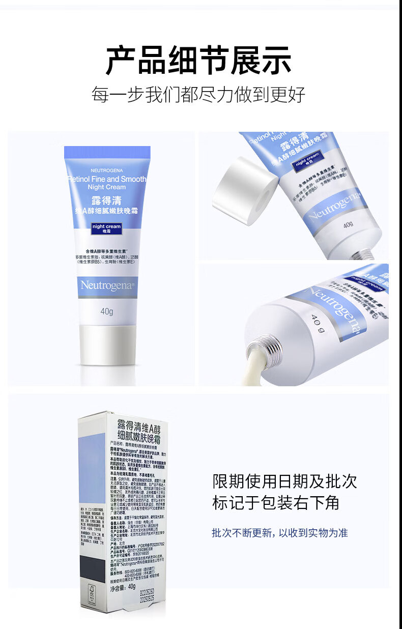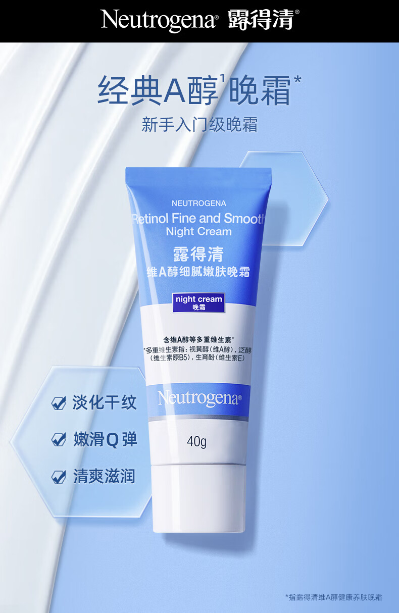 露得清小蓝管维A醇面霜40g早C晚A入门晚霜细腻嫩肤淡纹护肤生日礼物男女