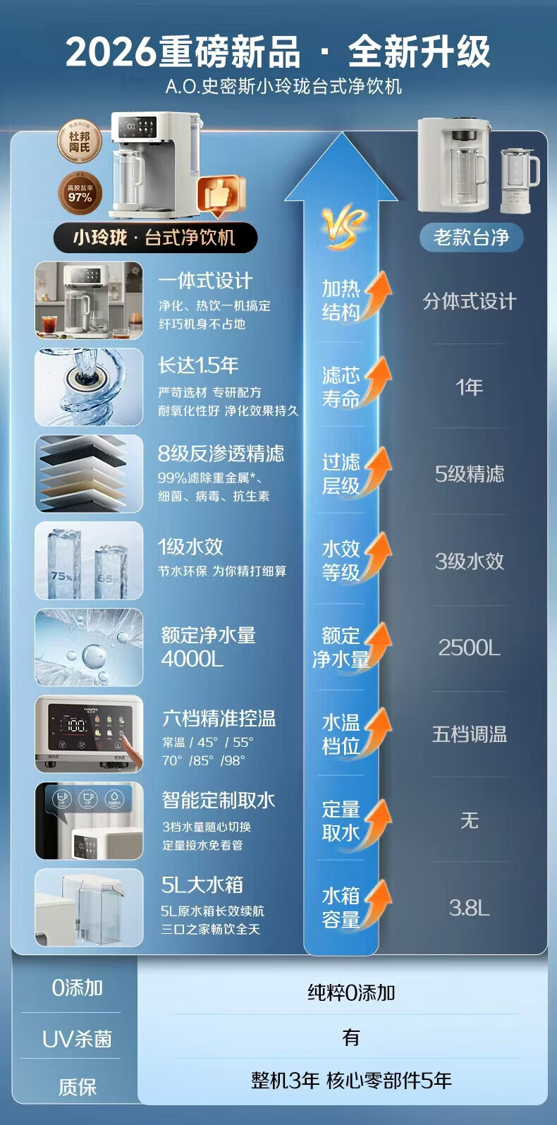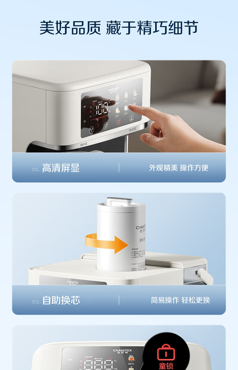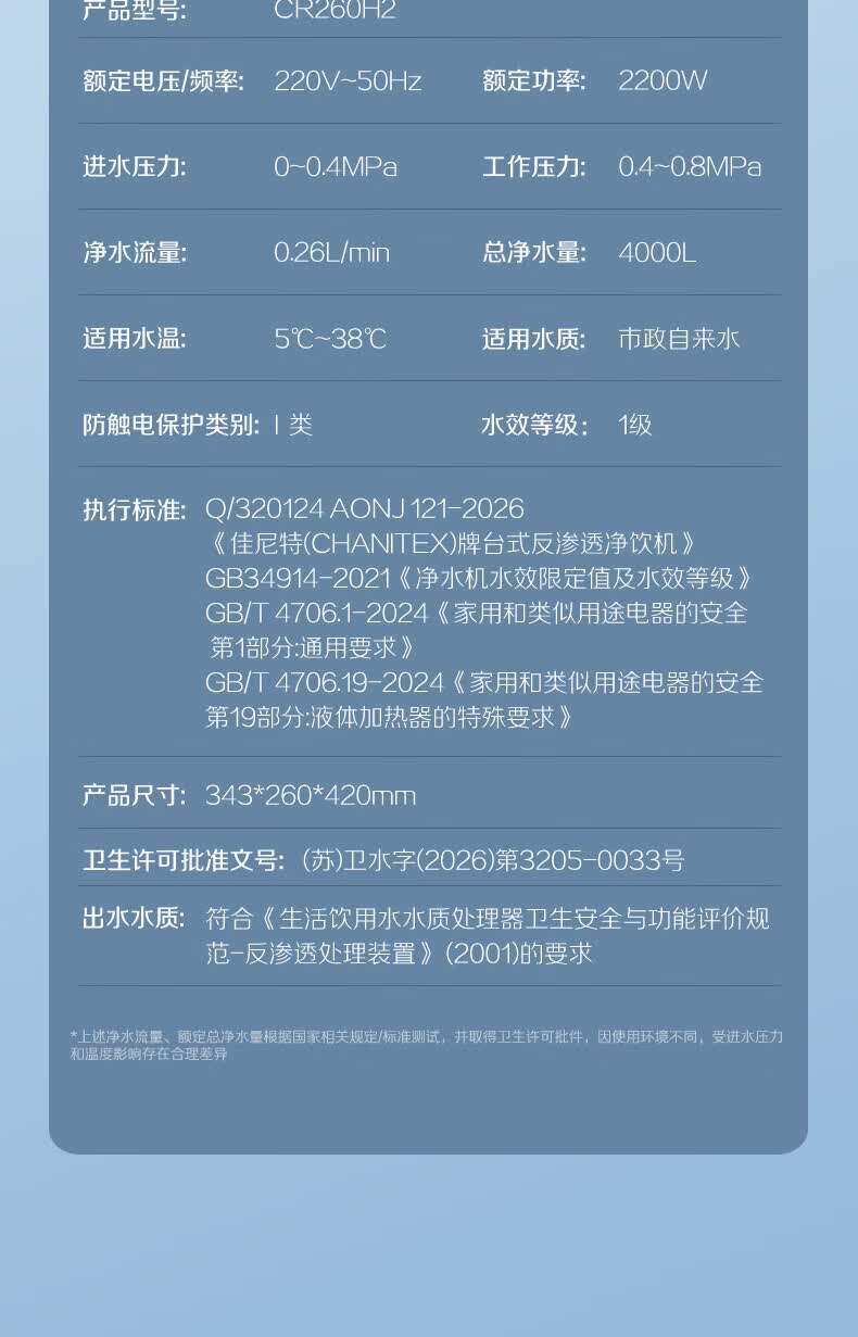 史密斯(A.O.SMITH)【上新】佳尼特小玲珑家用免安装台式净饮机RO反渗透即热净水机净水器加热直饮一体CR260H2套装版 【小玲珑套装版】可用3年 5L 6档控温8级精滤