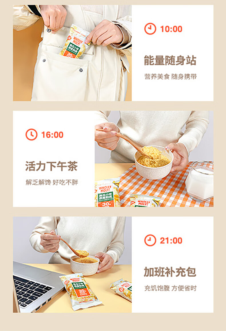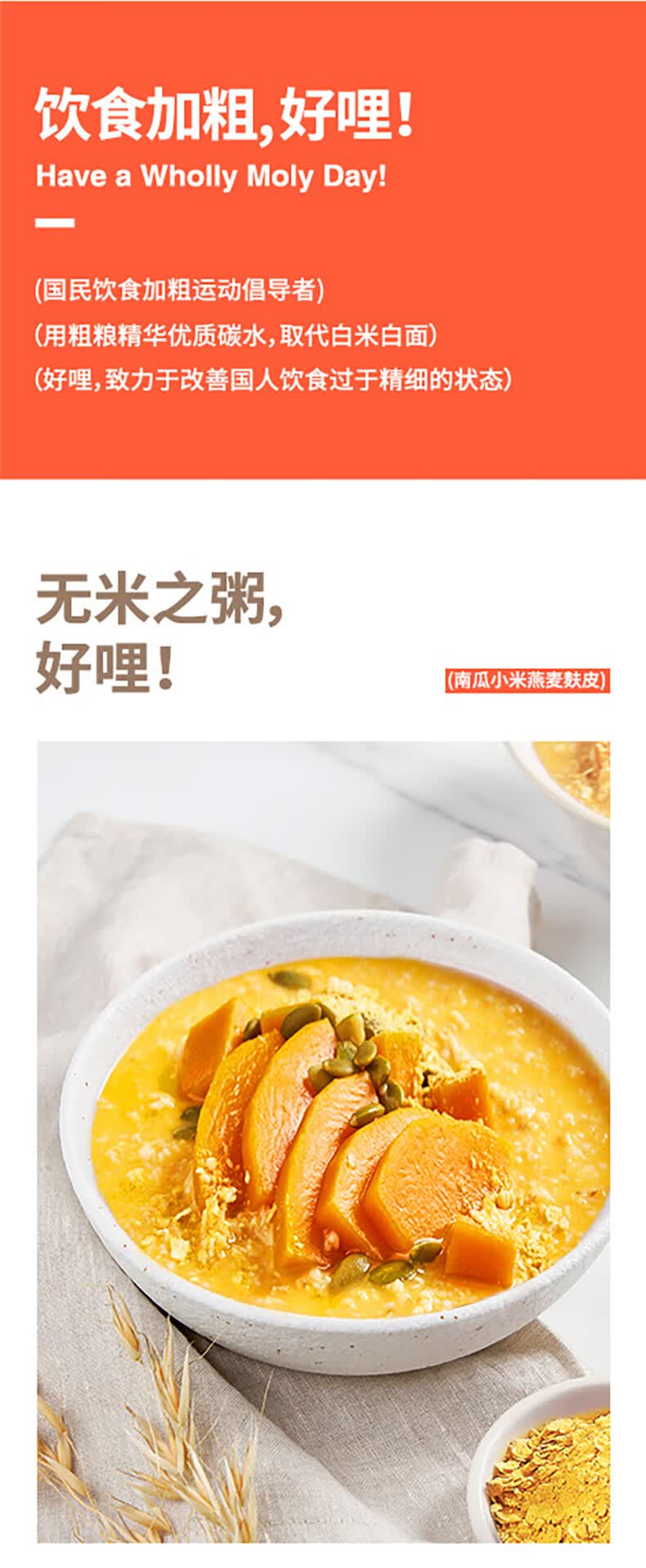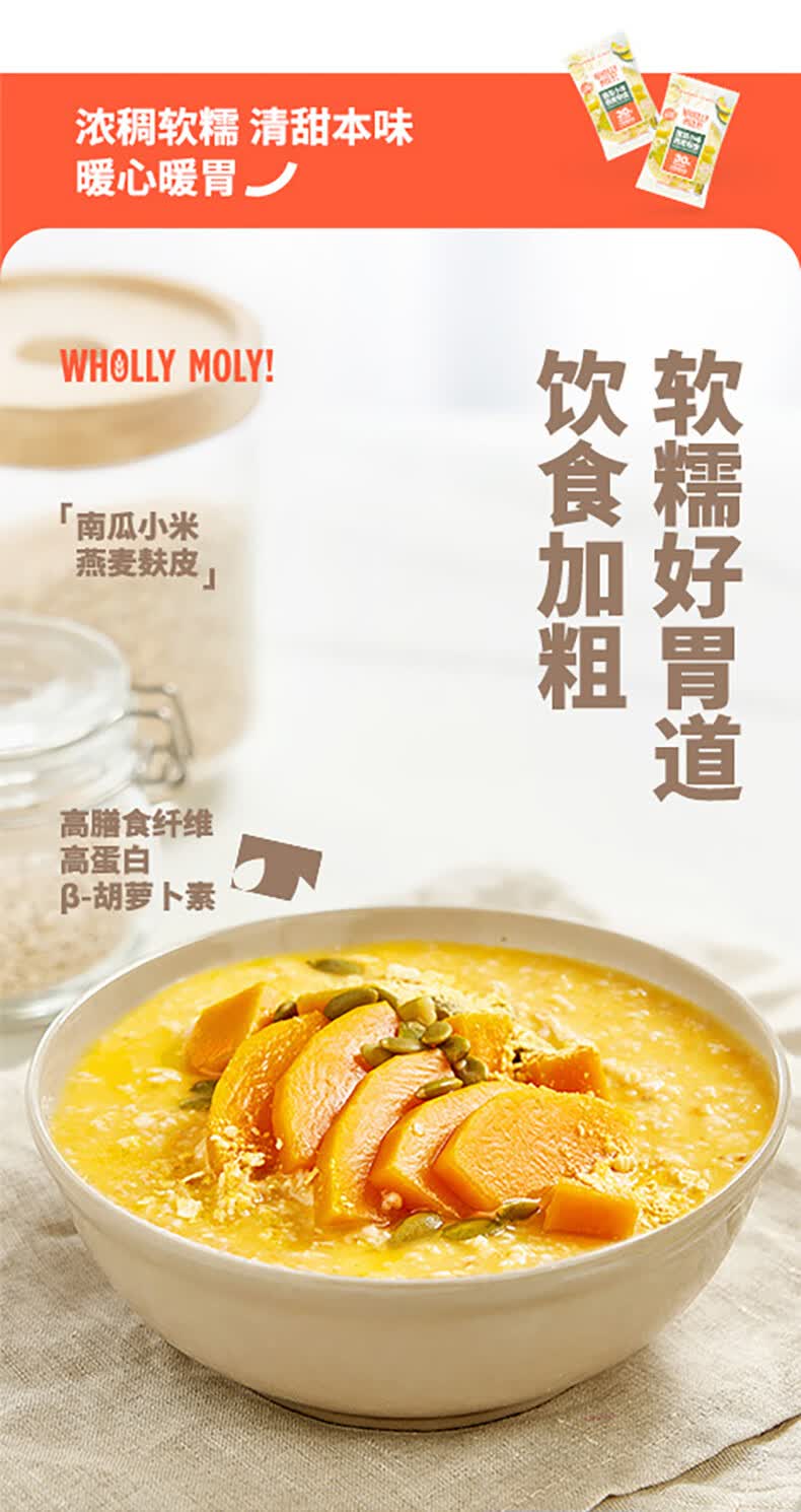 WHOLLY MOLY!好哩南瓜小米燕麦麸皮(40g*10袋)0添加蔗糖高膳食纤维冲泡即食